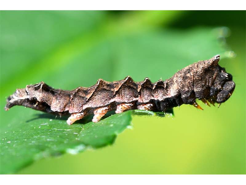 Im Verlauf eines Jahres entwickeln sich von April bis September meist zwei Faltergenerationen, die Beobachtungsmaxima liegen im Juni und Ende Juli bis Mitte August. Junglarven ähneln aufgrund ihrer Färbung und Körperhaltung an Vogelkot (Vogelkotmimese). Die beiden Hauptnahrungspflanzen der Larven sind die Brombeere (Rubus fructicosus agg.) und die Himbeere (Rubus idaeus). Ob auch andere Rubus-Arten in Frage kommen, bedarf noch der Klärung. Überwinterungsstadium ist die Puppe, die Verpuppung erfolgt in den oberen Bodenschichten.