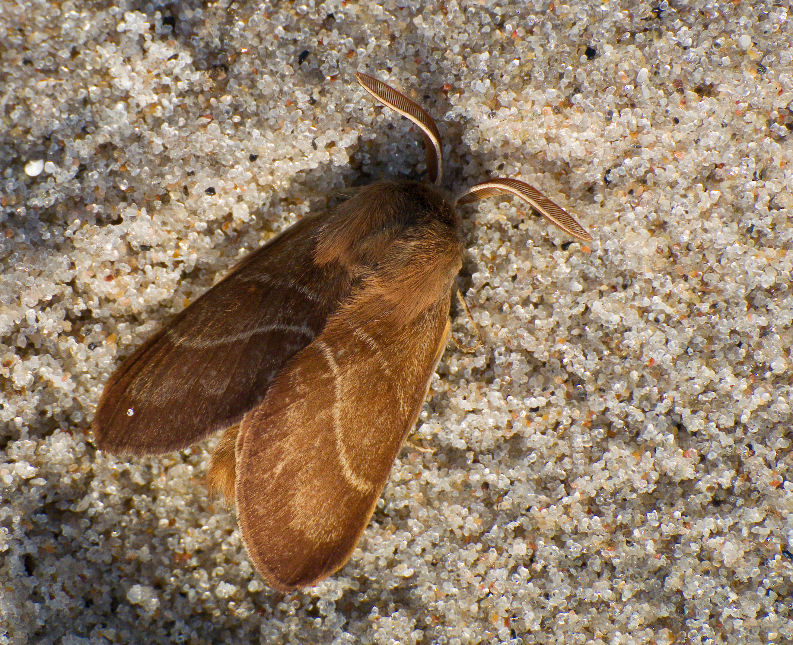 Ähnliche Arten: Der Großen Eichenspinner (Lasiocampa quercus) und der Kleespinner (Lasiocampa trifolii) mit einem weißen Punkt auf der Mitte der Vorderflügel.