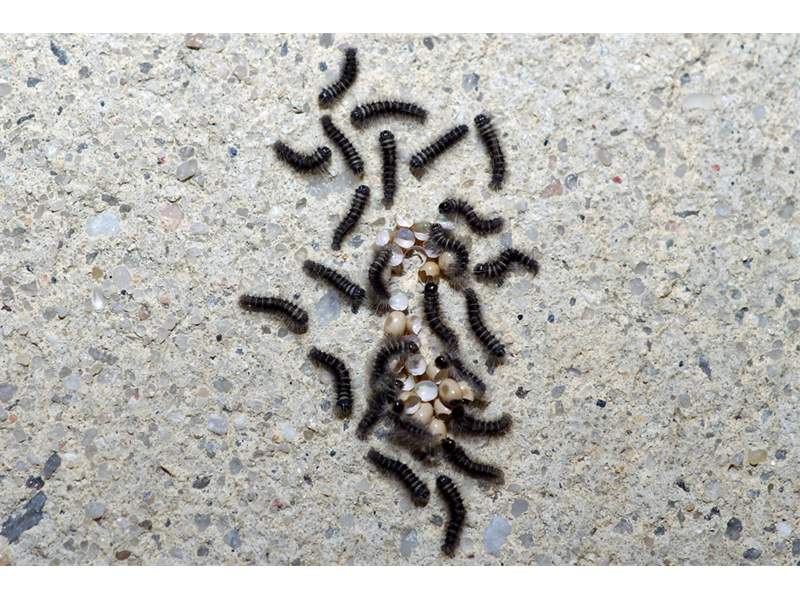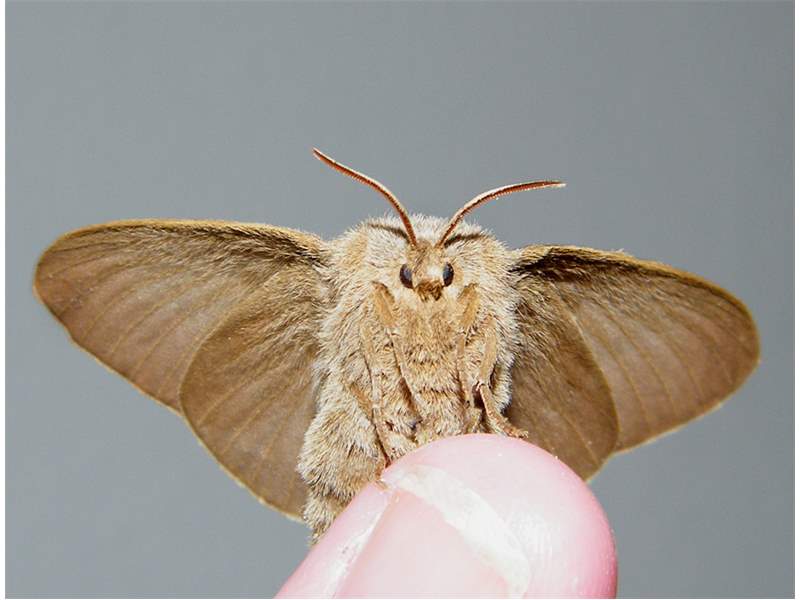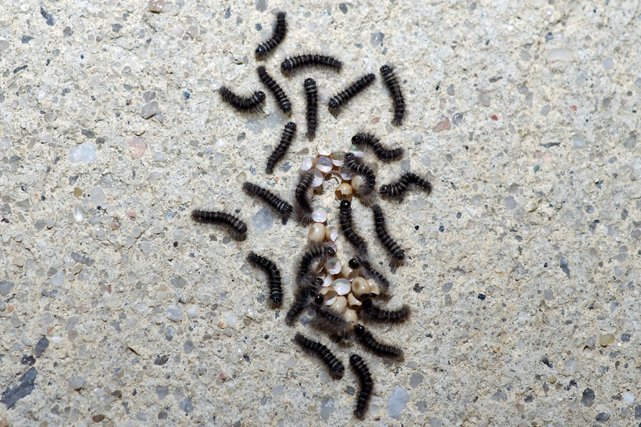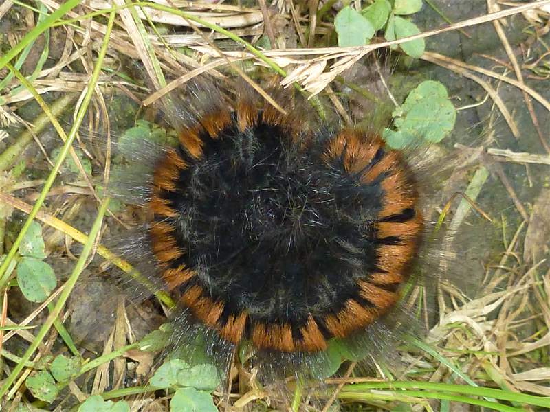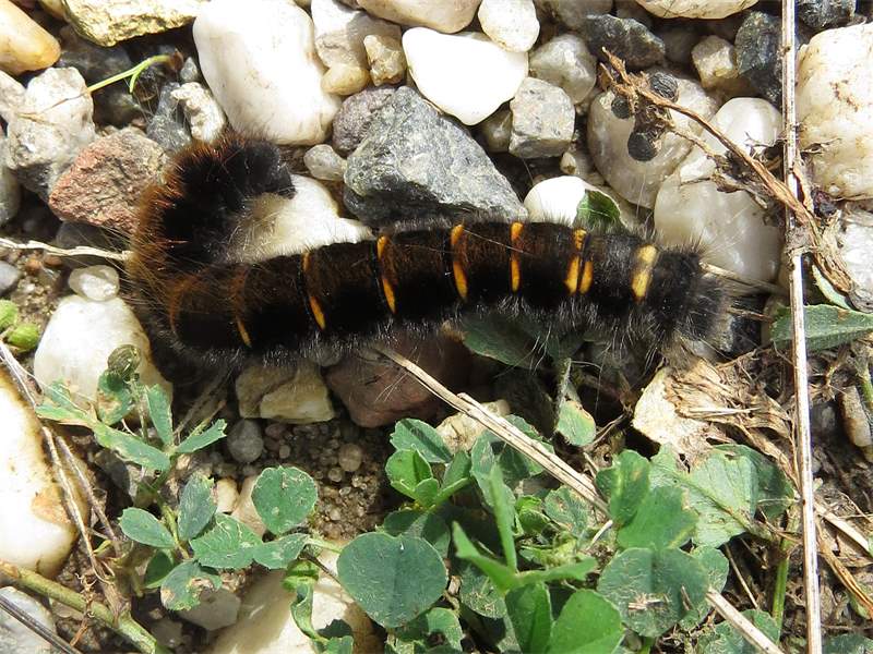 Der Brombeerspinner wird oft über die im Sommer und Herbst zu findenden, schwarz behaarten und auf dem Rücken rotbraun gefärbten Larven nachgewiesen.
