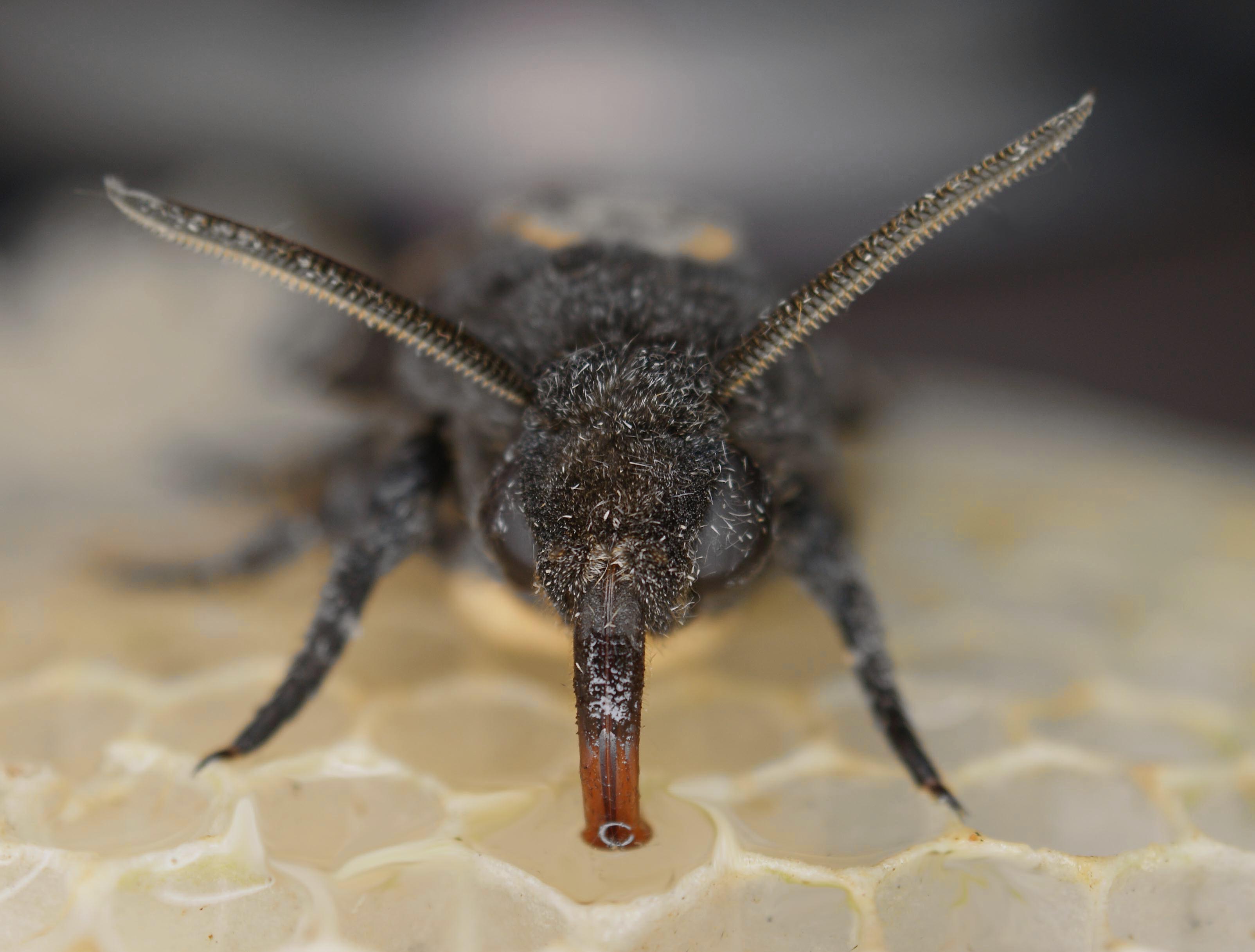 Sie nehmen mit dem kurzen Rüssel Nektar und Pflanzensäfte auf. Regelmäßig werden Bienenstöcke aufgesucht und der Honig der Westlichen Honigbiene (Apis melifera) aufgenommen. Die Bienen verhalten sich dabei nur am Eingang aggressiv. Chemische Substanzen des Totenkopfschwärmers sollen die Bienen beruhigen. Dies wird auch für die durch die Falter bei Beunruhigung ausgestoßenen Töne vermutet. Lauterzeugung bei Schmetterlingen ist selten. Beim Totenkopfschwärmer handelt es sich um verschiedene Pfeiftöne, die deutlich hörbar sind.