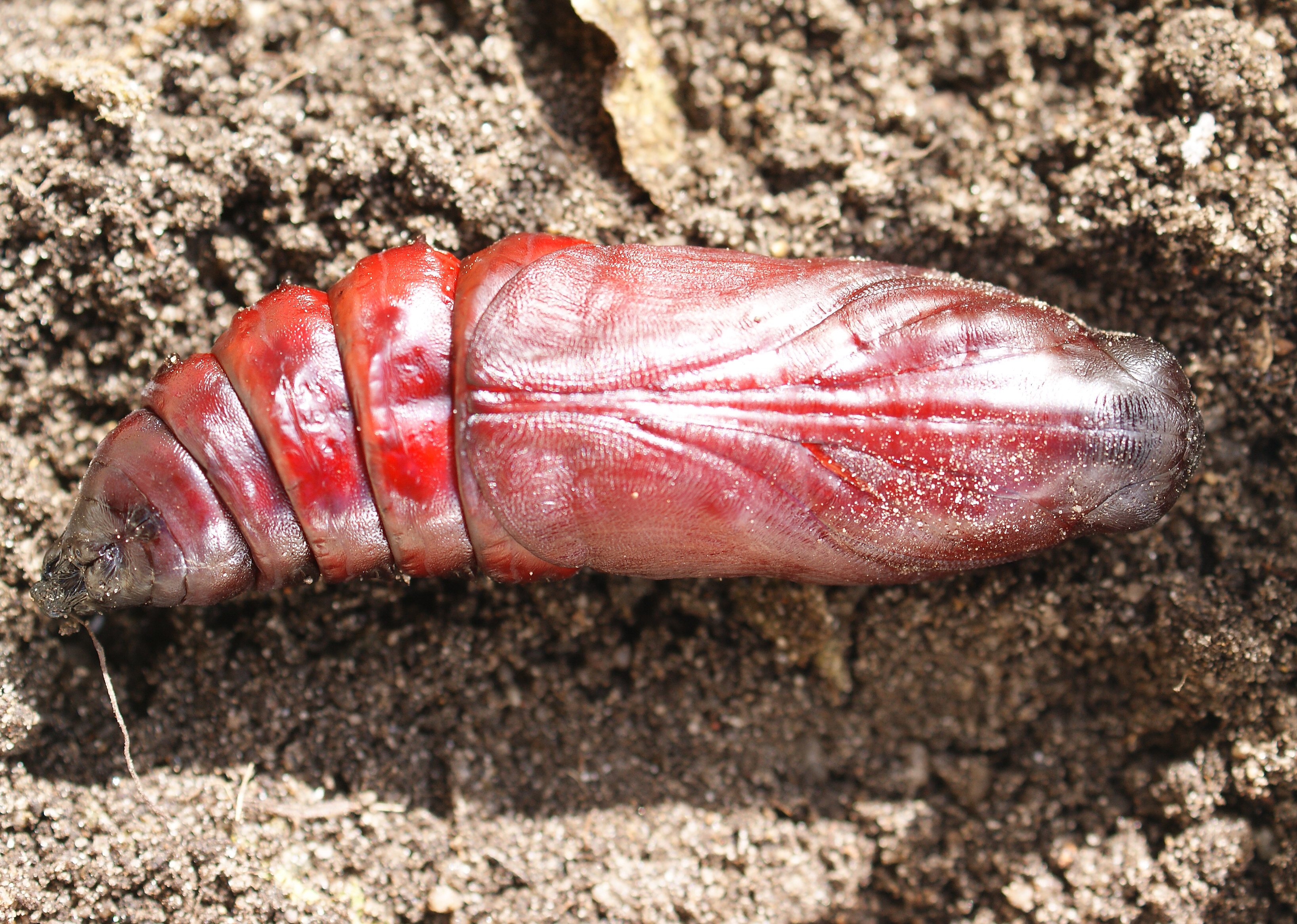 Körperlänge etwa 60 mm, Durchmesser fast 20 mm, Gewicht 3–8 g. Flügelspannweite Männchen 90–120 mm, Weibchen bis 130 mm.