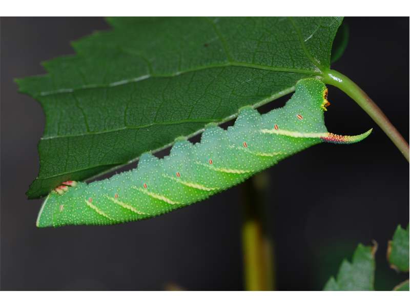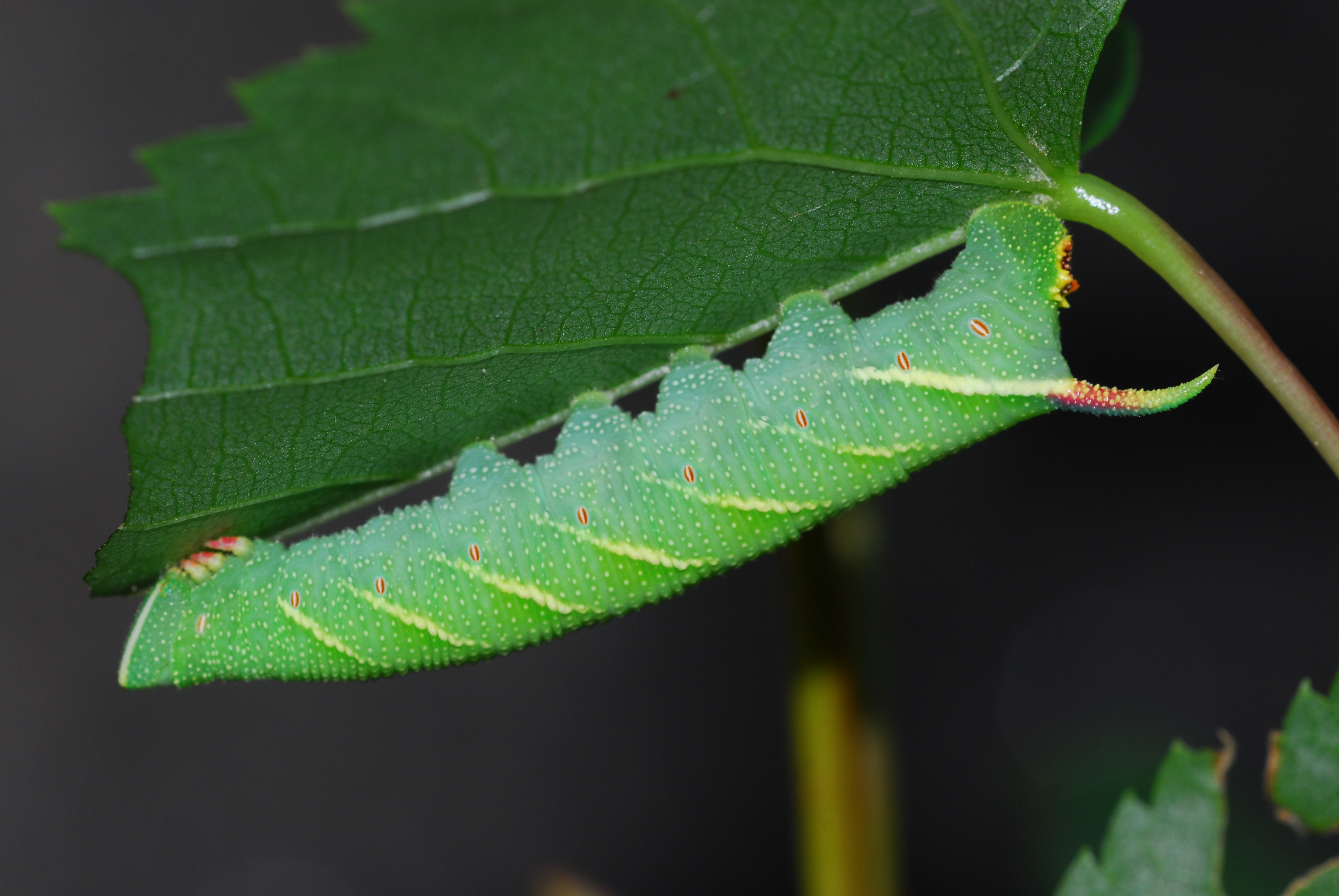 Zur Artunterscheidung der Larven zwischen dieser Art, dem Abendpfauenauge (Smerinthus ocellata) und dem Pappelschwärmer (Laothoe populi) wird ein Foto der Afterregion benötigt.