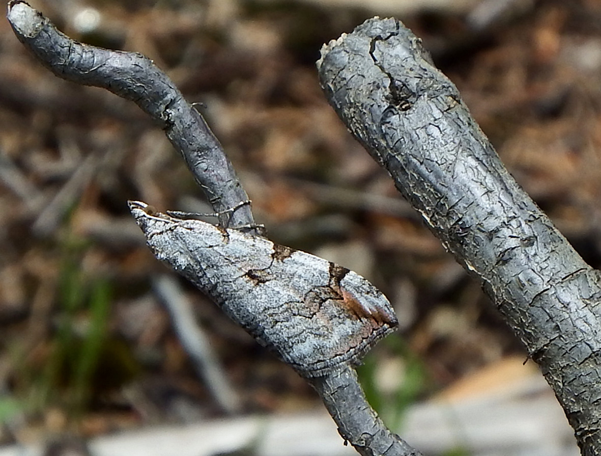 Hinterleib: Männchen mit langgestreckten Valven, die beim sitzenden Falter manchmal unter den Flügeln hervorragen können; das Weibchen mit einem abgesetzt dünnerem Hinterleibsende.
