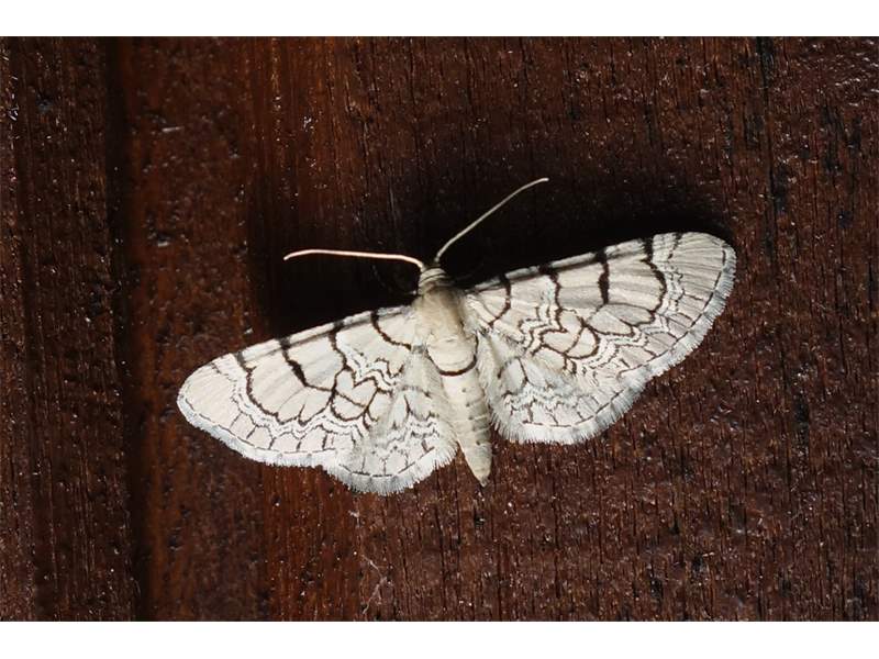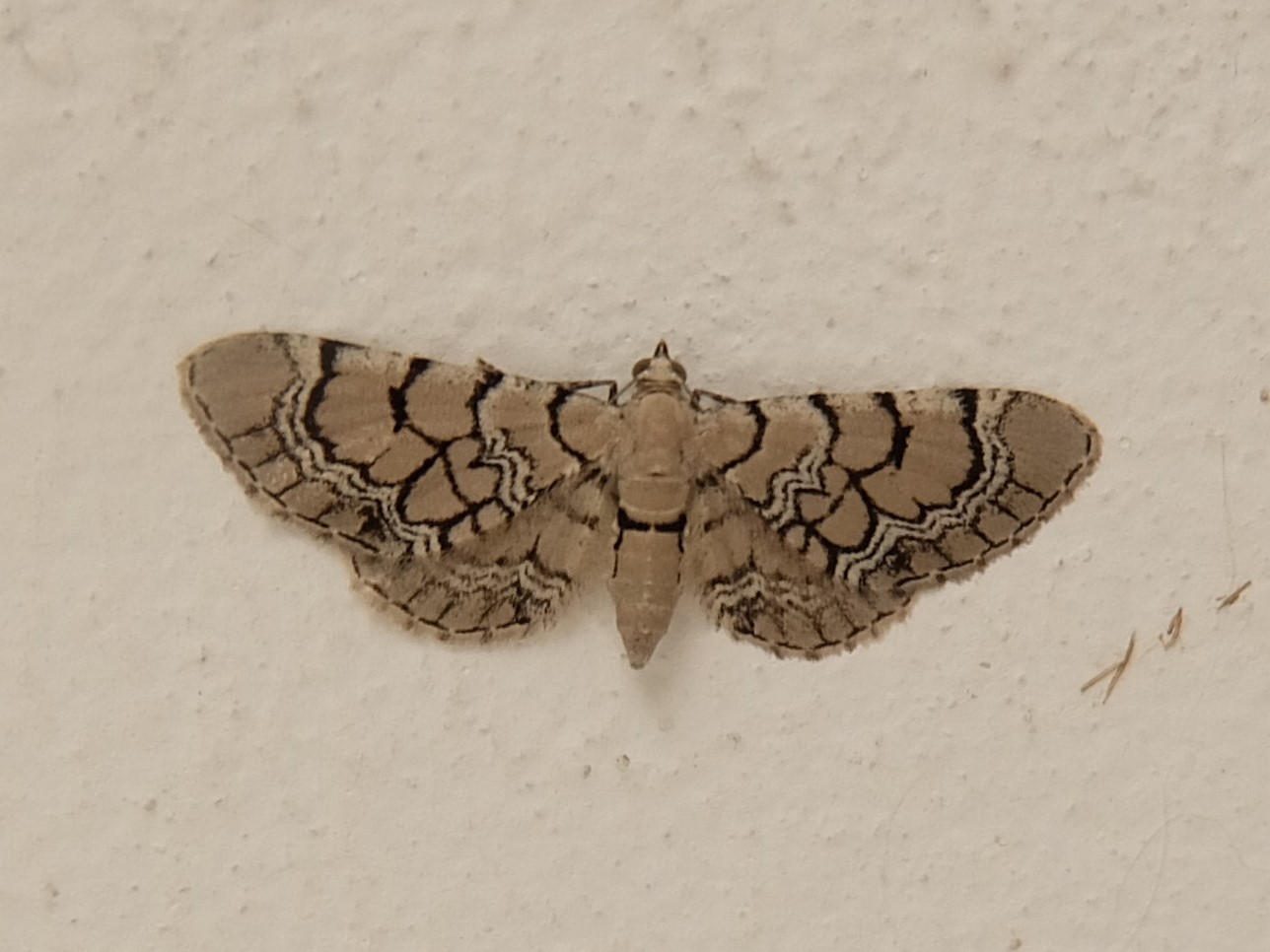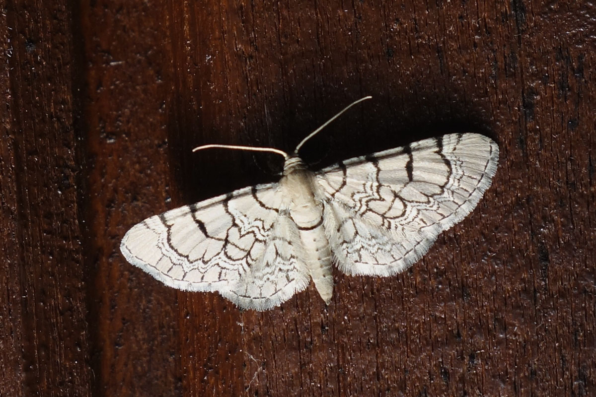 Flügeloberseiten: Grundfarbe variiert von creme- und isabellfarben bis zu hellen Grau- und Brauntönen, darauf ein Muster aus schwarzen Linien und teilweise dunklen Flügeladern.