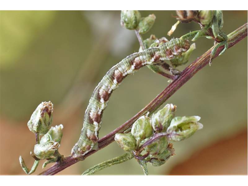 Nach äußeren Merkmalen schwer vom Verkannten Feldbeifuß-Blütenspanner (Eupithecia ochridata) zu unterscheiden.
