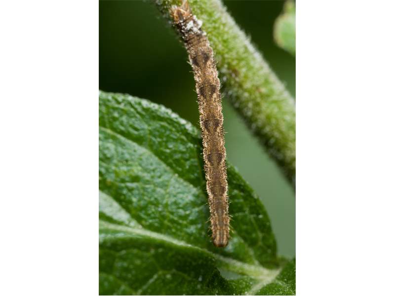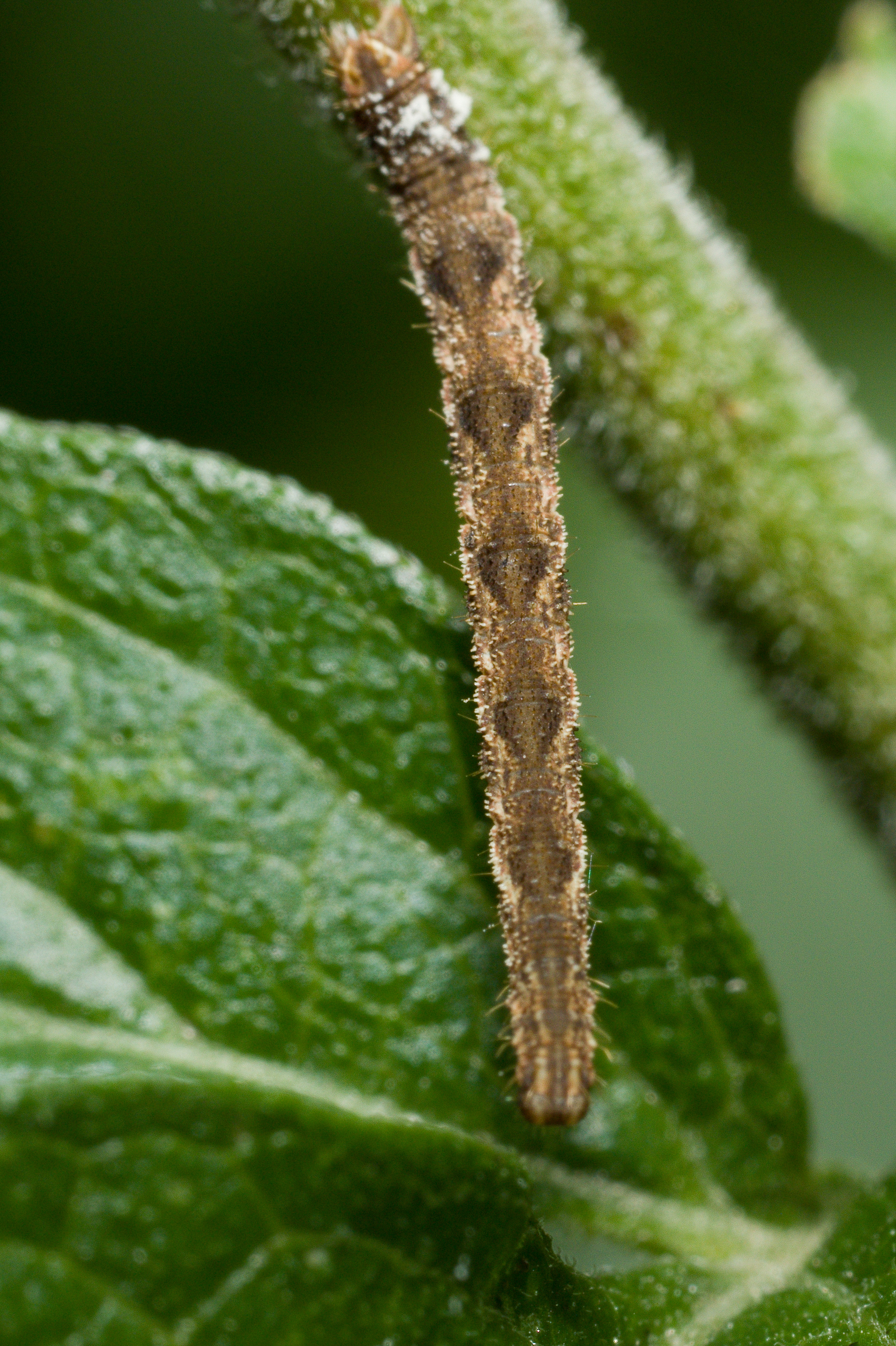 Raupe von Eupithecia subfuscata an Wasserdost (Eupatorium cannabinum), Nähe Neuendorf-Heide (Vorpommern-Rügen), 16.08.2019