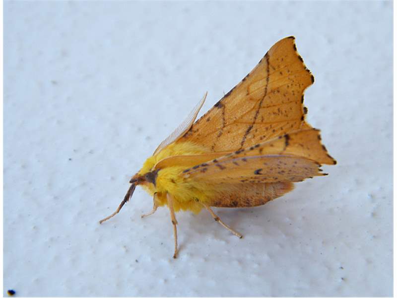 Von den fünf heimischen Ennomos-Arten durch die zitronengelbe Färbung der Kopfbeschuppung eindeutig zu unterscheiden.
