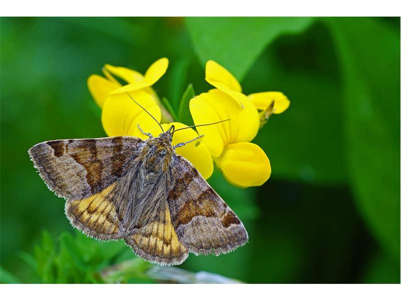 Alle bisher nachgewiesenen Larvenfutterpflanzen gehören zu den Schmetterlingsblütengewächsen, so z. B. Luzerne (Medicago sp.), Hornklee (Lotus sp.) und verschieden Wickenarten (Vicia sp.). Es überwintert die Puppe.
