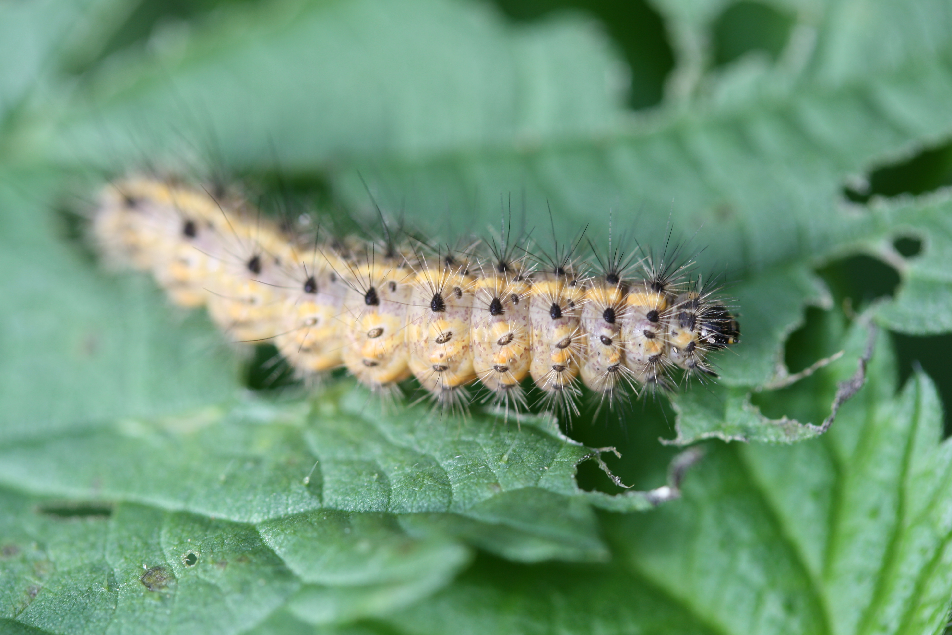 Oft wird die Art über die durch die zweite Generation erzeugten Larven nachgewiesen. Diese Larven sind an milden Tagen bis in den November hinein aktiv und können bei der Suche nach einem Überwinterungsversteck auf Wegen und Straßen beobachtet werden. Der gesamten Körper der erwachsenen Larven ist dicht mit braunen bis schwarzen Borsten besetzt, auf dem Rücken ist in der Mitte eine helle Linie zu erkennen.
