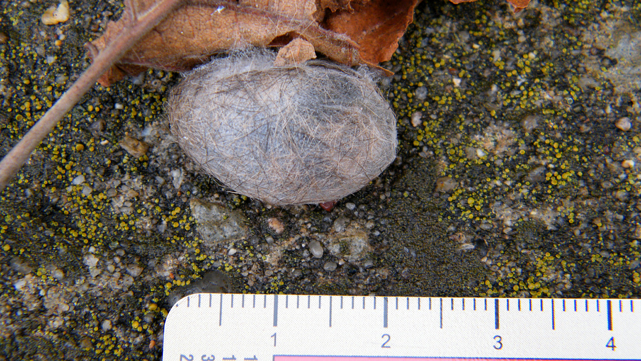 Kokon mit Puppe des Zimtbären, gefunden am 25.03.2014