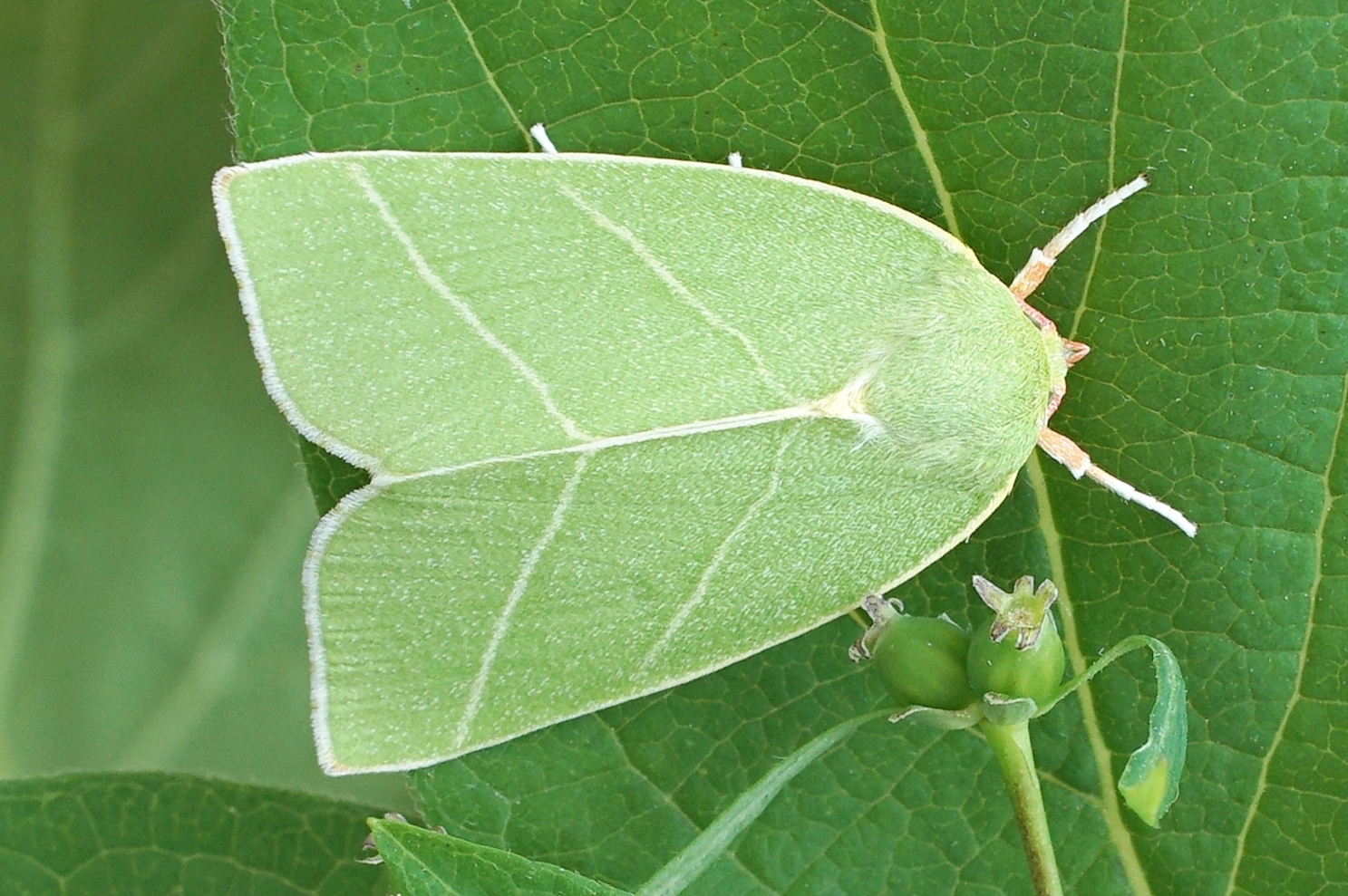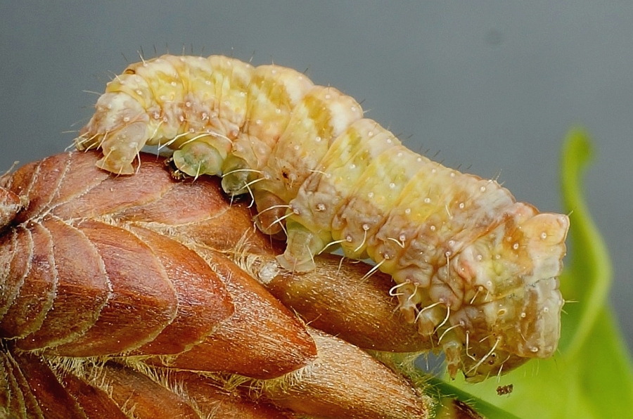 Eichenkahnspinner (Bena bicolorana (Fuessly, 1775)), Larven Anfang April 2019 aus der Umgebung von Gröditz unbewusst mit Echenzweigen eingetragen. Weiterzucht bei Zimmertemperatur bis zum Falter.