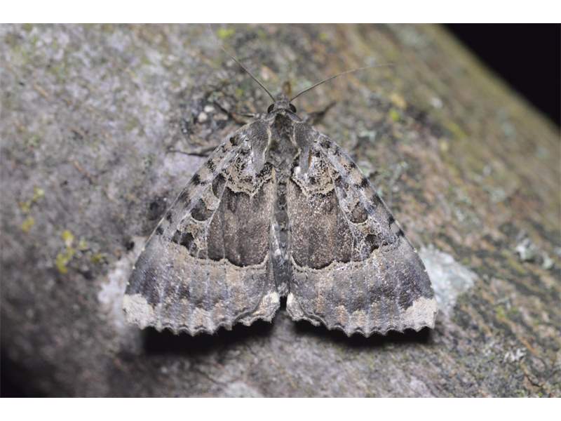 Vorderflügeloberseite: Mittelfeld dunkler als Umgebung, die darin liegenden Nieren- Ringmakel hell gerandet, Zapfenmakel fehlt. Innere und äußere Querlinie sowie die Wellenlinie heben sich hell vom Untergrund ab. Am Vorderrand befinden sich von der Flügelbasis bis zur äußeren Querlinie eine Reihe schwarzer Strichflecke, Richtung Wellenlinie sind dann meist drei helle Punkte zu erkennen. Flügelspitze oft etwas aufgehellt.