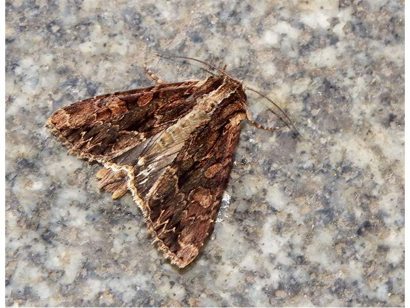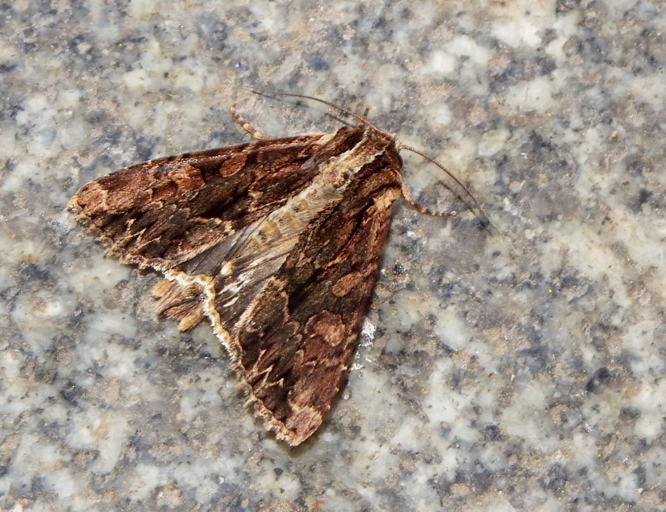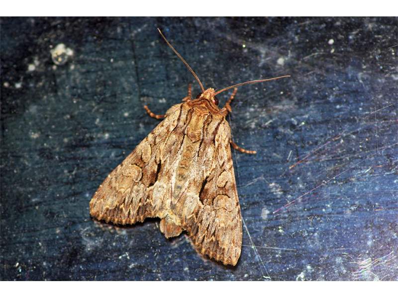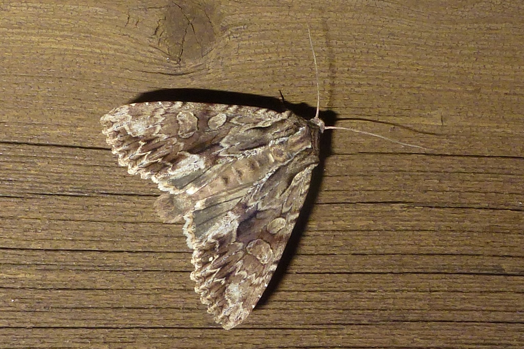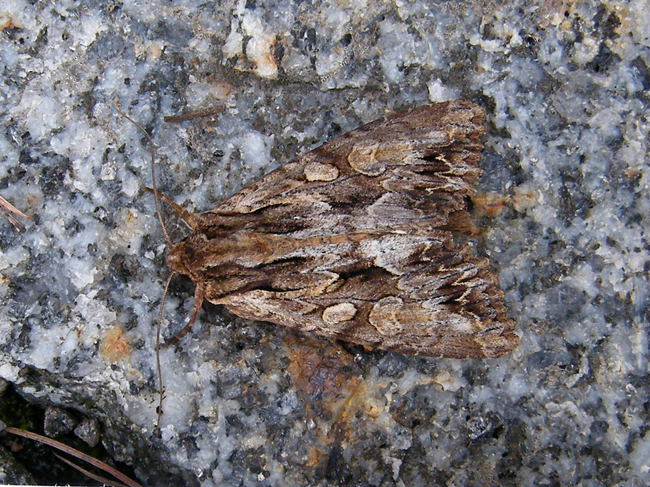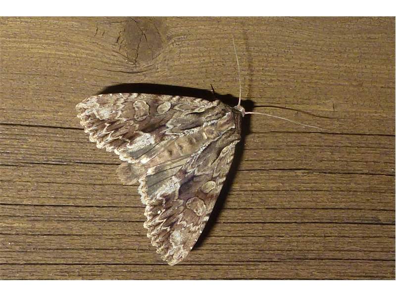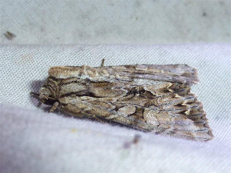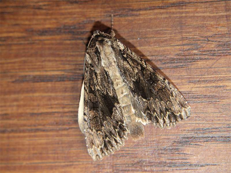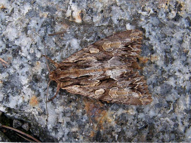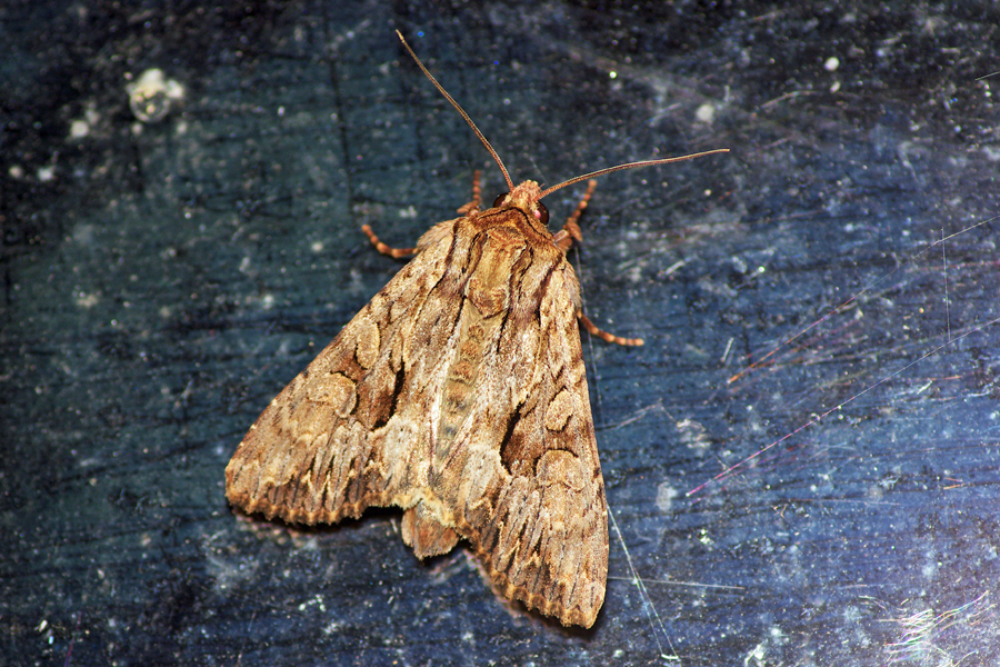 Vorderflügel: die Färbung variiert von ocker über graubraun und braun bis fast schwarz; in der Mitte vor dem Vorderrand mit einem schräg verlaufenden, länglich ovalem Makel und einem U-förmig gebogenem Makel; auf gleicher Höhe, aber vor dem Hinterrand, ein deutlicher schwarzer Längsstrich, der die beiden Querlinien vor und hinter den Makeln verbindet; vor dem Außenrand eine dritte, deutlich gezackte Querlinie, mit schwarzen Pfeilflecken, die zwischen die Spitzen der davor liegenden Querlinie reichen.