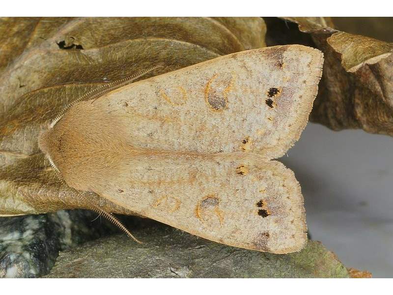 Ähnliche Art: Orthosia populeti, unterschieden werden die Arten vor allem durch den Verlauf und die innere Begrenzung der jeweils hellen Wellenlinie.