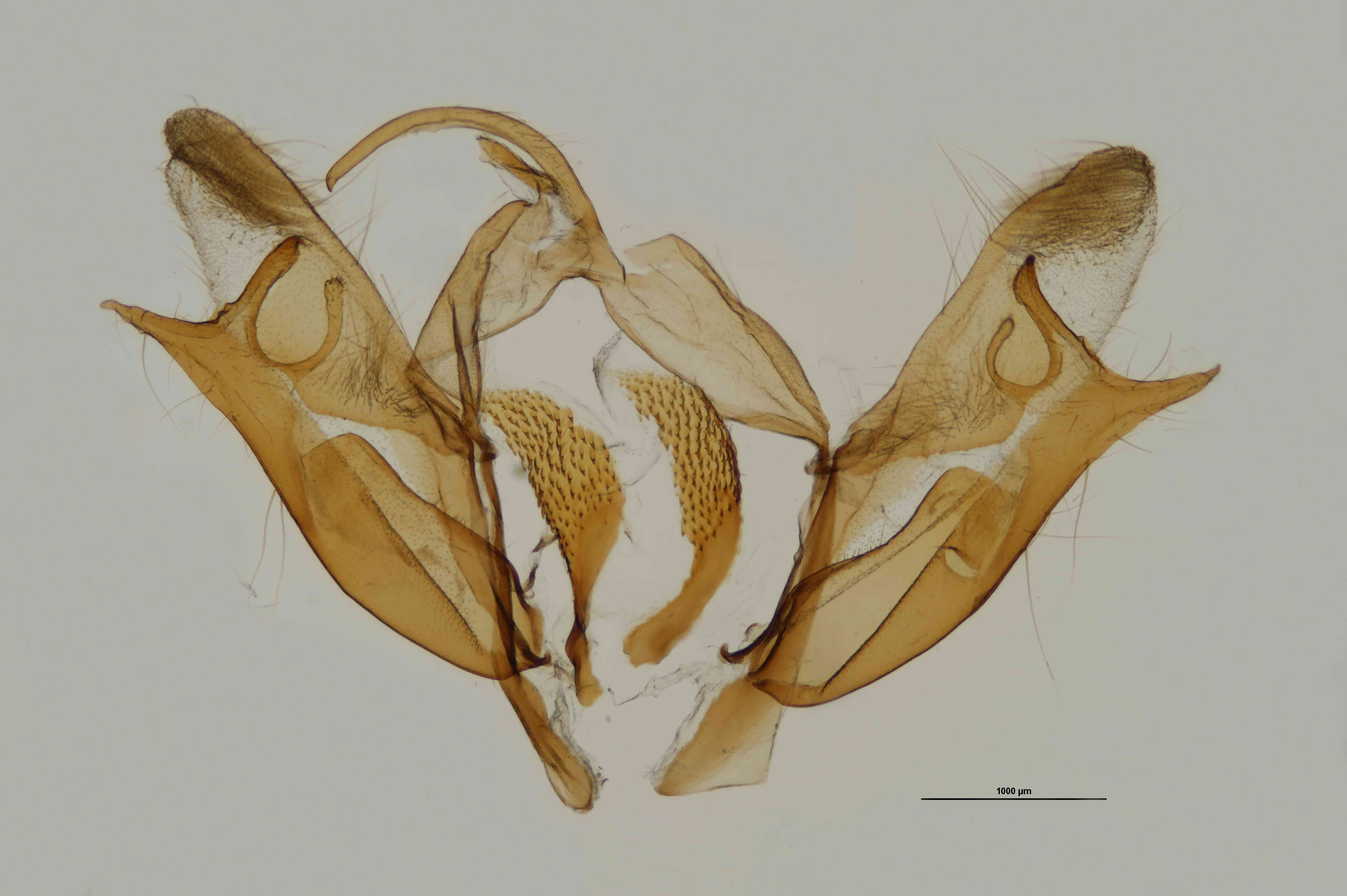 Männliches Genital von Acronicta cuspis. Annaberg/Erzgeb., e. l. 06.1936, coll. Staudinger & Bang-Haas, coll. Senckenberg Museum für Tierkunde Dresden. prep. Emily Kittel
