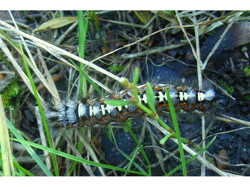 Es entwickelt sich eine Generation pro Jahr, deren Flugzeit sich von Mai bis August erstreckt. Die Larven ernähren sich von den Nadeln von Fichten (Picea spp.), Weiß-Tanne (Abies alba), Kiefern (Pinus spp.) und Lärchen (Larix spp.). Überwintert wird im Puppenstadium.