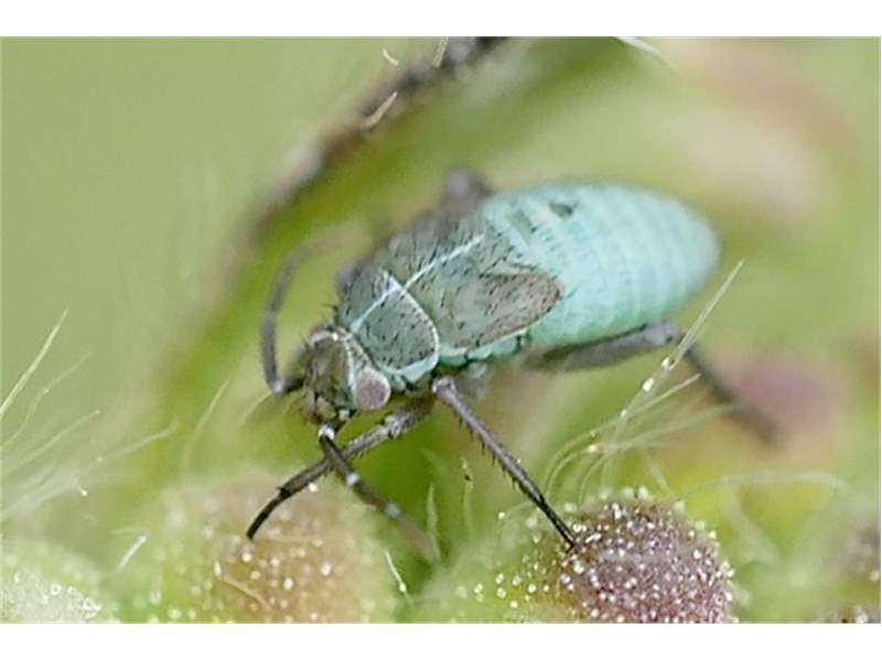Unter den einheimischen Weichwanzen ist die Art durch ihre bläulichgrüne helle Färbung, die braungraue Membran mit hellen Adern und auffällige schwarze Behaarung leicht kenntlich. Im Gegensatz zur manchmal ähnlich gefärbten Plagiognathus chrysanthemi ist die Art größer als 4mm und die schwarzen Dornen der Schienen entspringen nicht aus schwarzen Punkten. Die Schienen sind am Ansatz am Oberschenkel nicht schwarz geringelt.