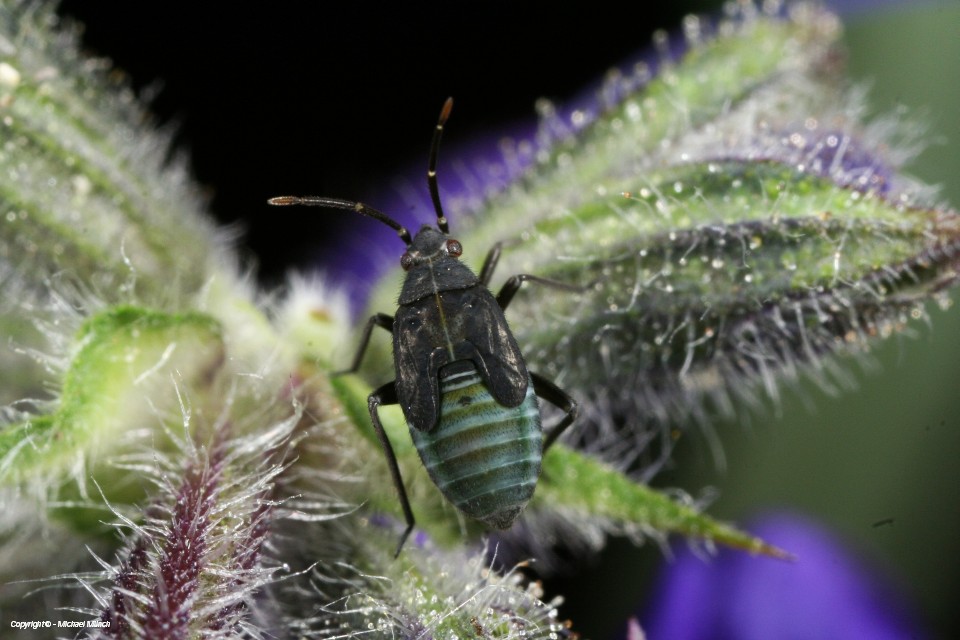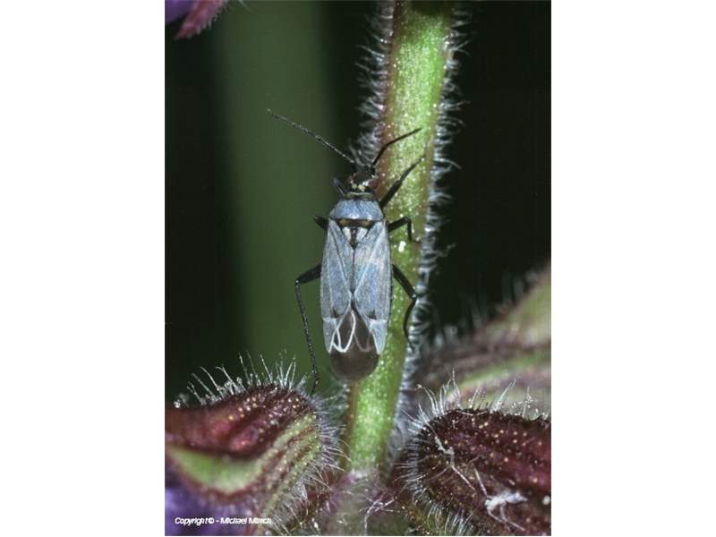Die Art ist durch ihre blau-graue Grundfärbung, die unter den Weichwanzen ziemlich einzigartig ist, leicht zu identifizieren. In Kombination mit der schwarz-gelblich-weisen Kopfzeichnung ist die 3,5 bis 5 mm große Art kaum zu verkennen.