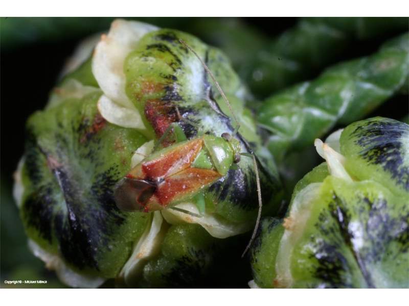 Die Art kommt in Sachsen auf angepflanzen Zypressengewächsen vor. Die Art befindet sich sicher noch in aktiver Ausbreitung und wird durch den Trend zum massenhaften Anpflanzen von Lebensbaum-, Scheinzypressen- und Wacholderarten sehr stark begünstigt.