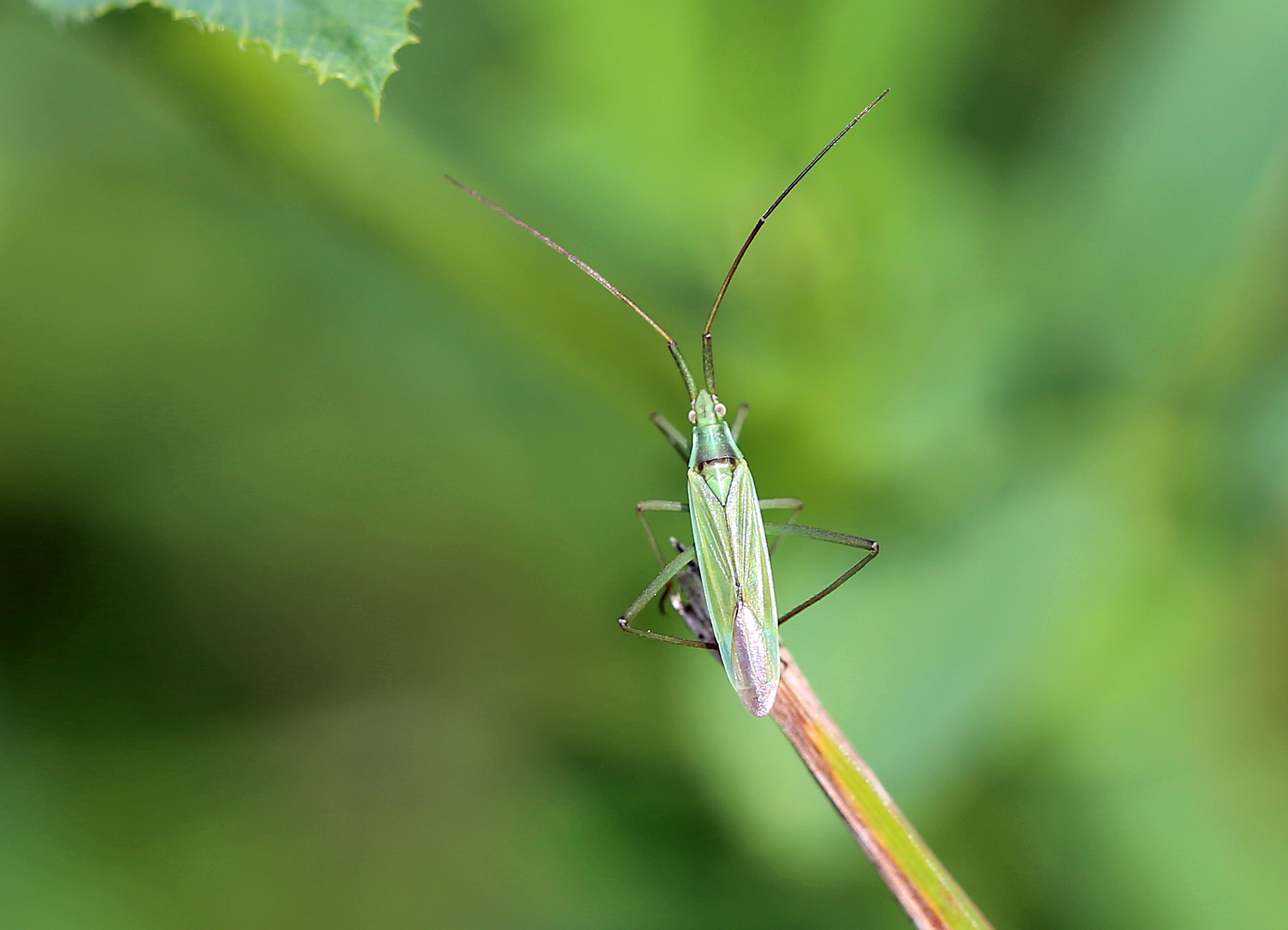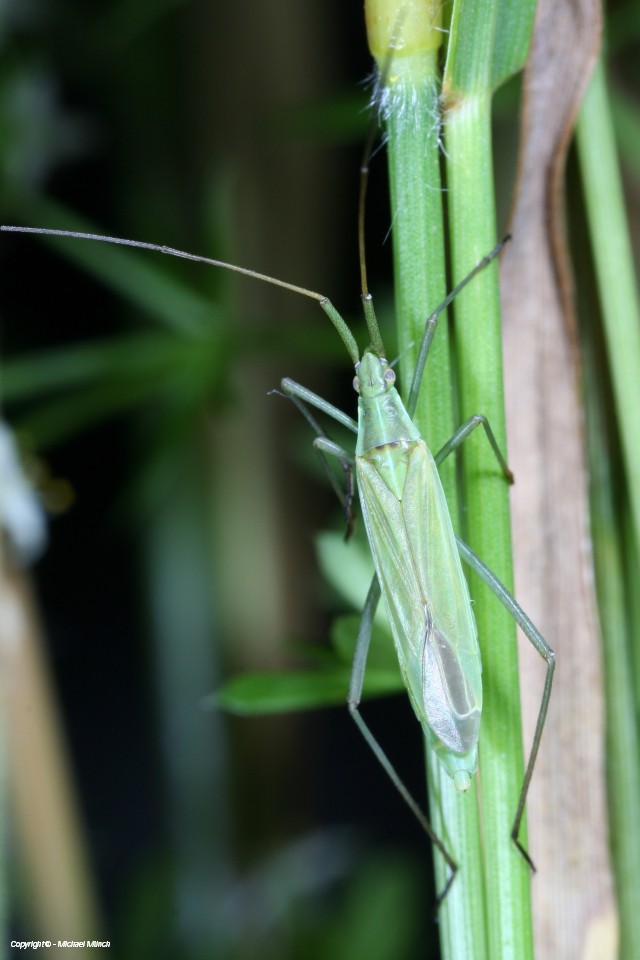 Ähnliche Arten: Stenodema-Arten mit kräftigeren Hinterschenkeln und kompakterer Form. Notostira-Arten mit lang behaarten Unterschenkeln (Schienen) und ebenfalls kompakterer Form. Trigonotylus-Arten ähnlich schlank, aber deutlich kleiner, mit rötlichen Fühlern.