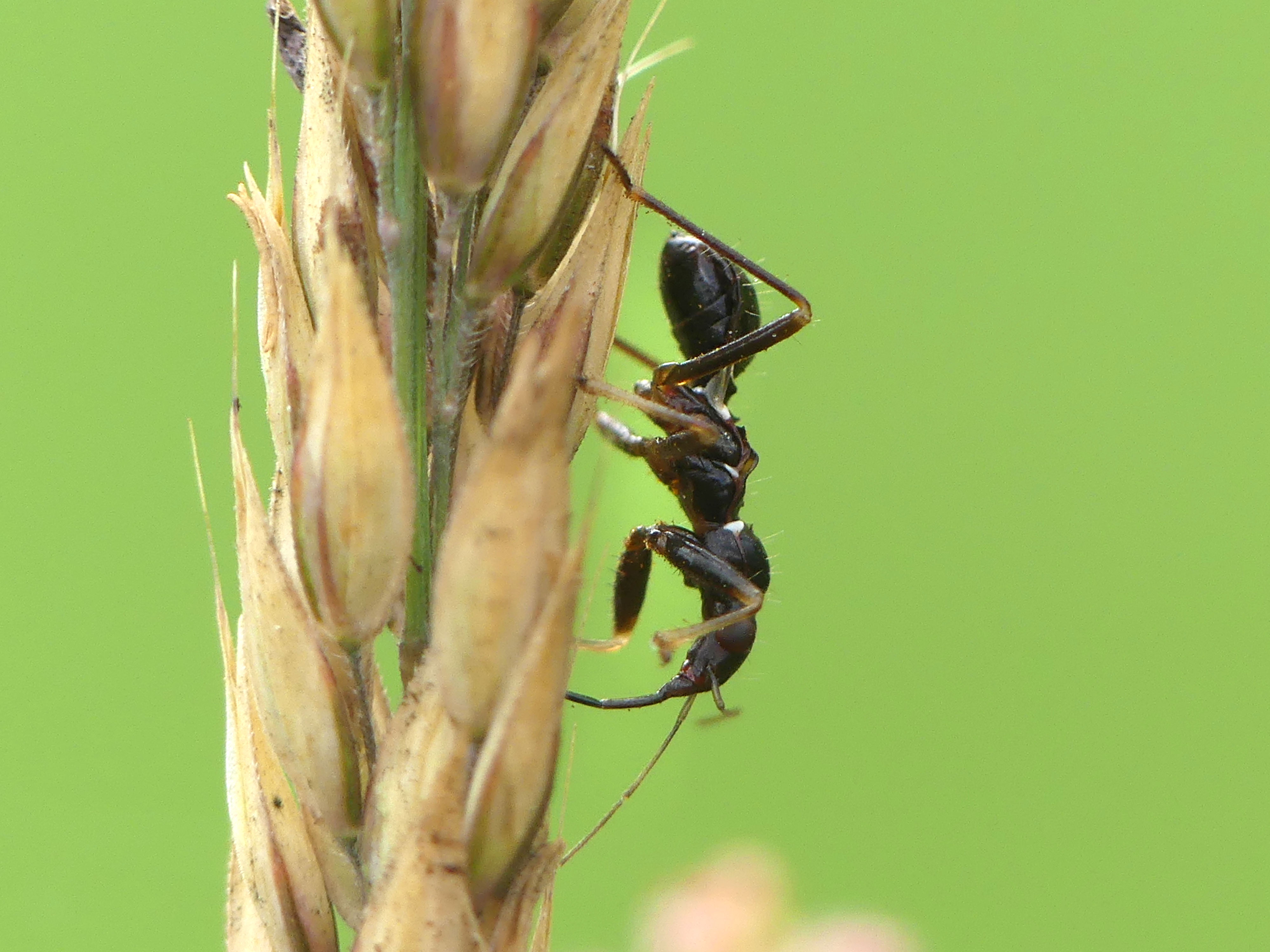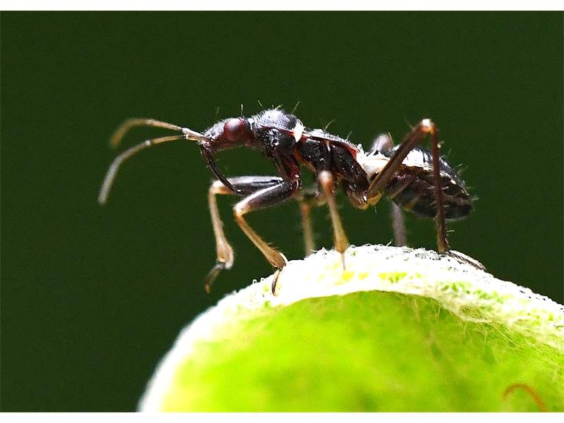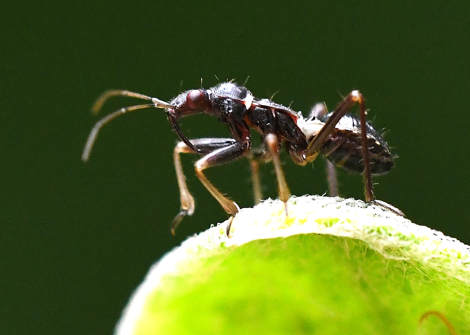 Im Gegensatz zu Ihrer ähnlichen Schwesterart AS_Himaderusapterus bevorzugt die Ameisensichelwanze die Krautschicht. Es können aber auch Tiere in höheren Straten angetroffen werden. Auch am Boden unter Pflanzenrosetten lauernd, wurden adulte Tiere angetroffen.