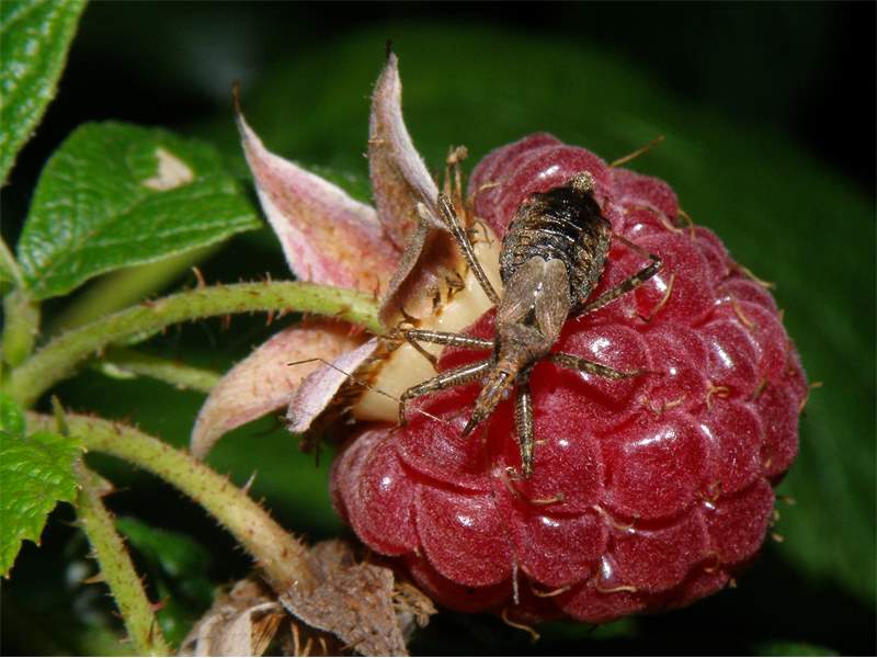 Weibchen von Himacerus apterus an einer Himbeere im Garten; September 2012