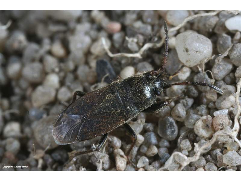 Männchen von Megalonotus chiragra, Krumhermersdorf, Gansbachtal (Deutschland, Sachsen, Erzgebirgskreis), 26.04.2008