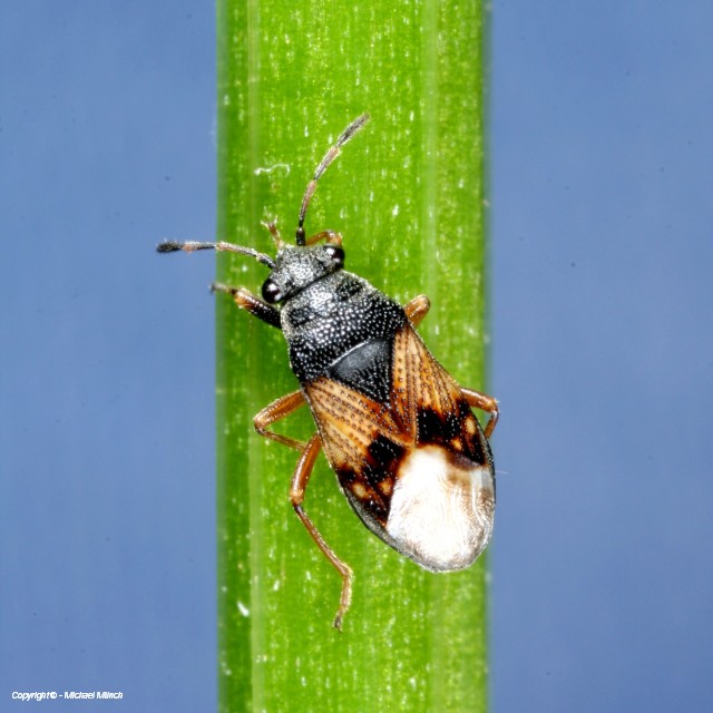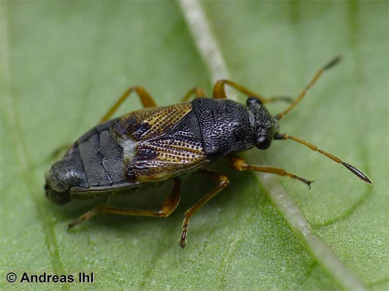Thorax: Halsschild und Schildchen schwarz, leicht glänzend, auf ganzer Fläche fein gleichmäßig punktiert. Halbdecken braun mit Reihen dunkler Punktgruben und schwarzer Zeichnung, stark glänzend. Flügel oft verkürzt. Schenkel oft angedunkelt und nur an der Spitze wie die Schienen und Tarsen orangebraun.