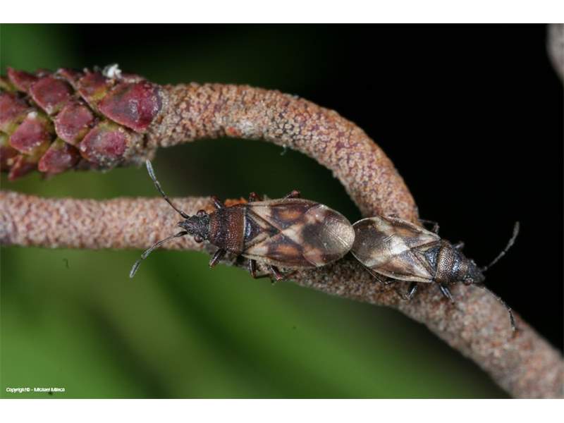 Oxycarenus modestus bewohnt Bach- und Flußauen sowie Teichränder mit gewässerbegleitenden Gehölzsäumen mit Schwarz-Erlen (Alnus glutinosa).