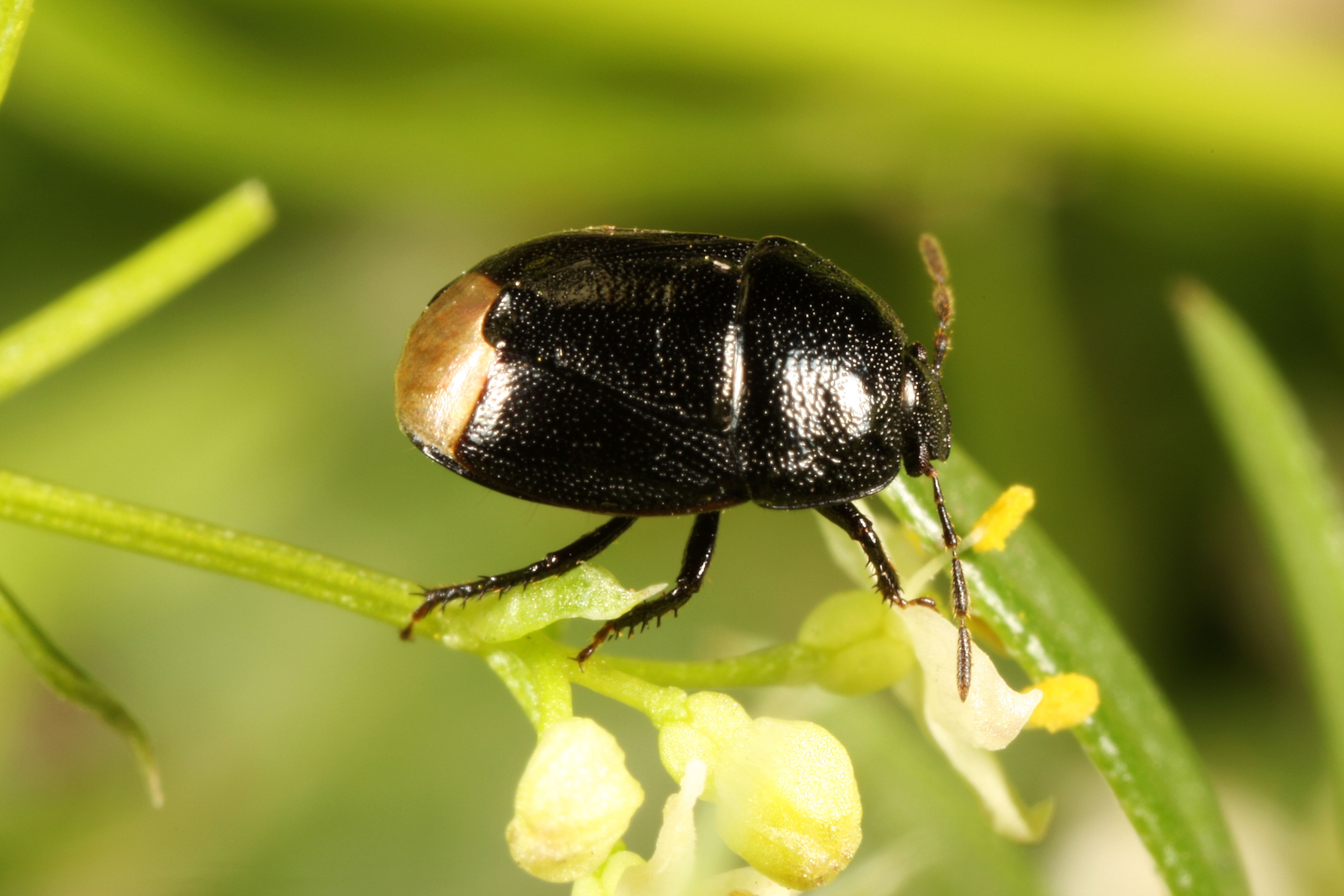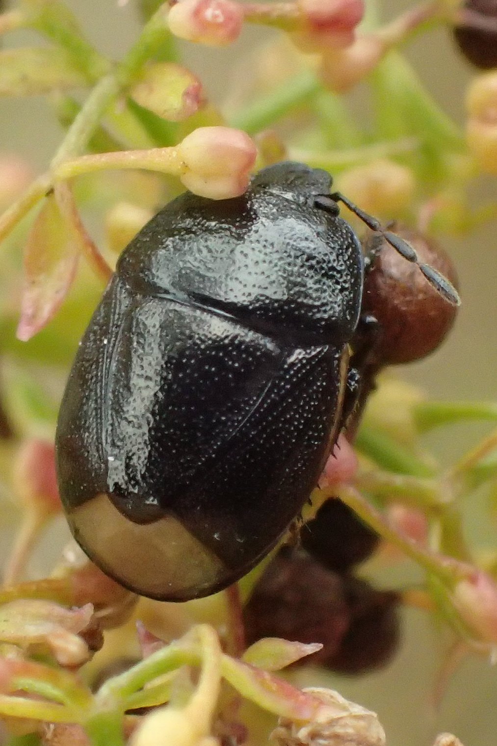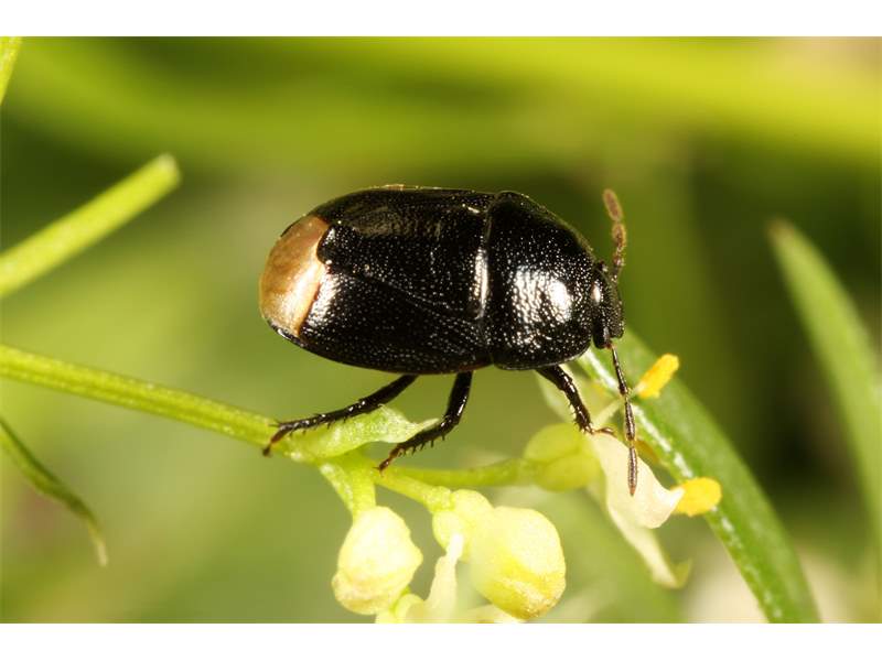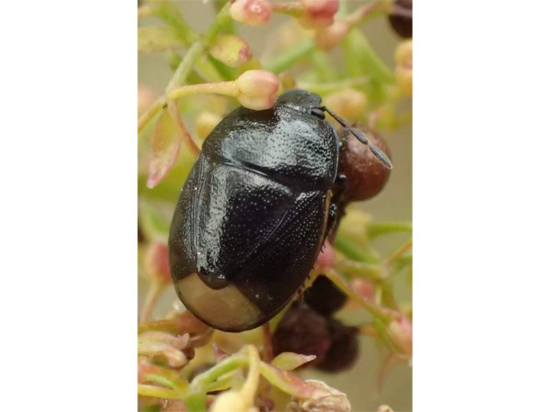 Thorax: Halsschild und Halbdecken schwarzbraun bis schwarz, schmaler gelber oder brauner Seitenrand der Halbdecken reicht nicht über die erste Punktreihe, heller Rand selten fehlend.