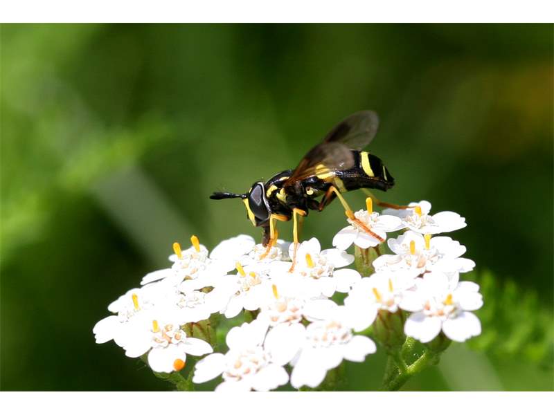 Abdomen: Tergit zwei und vier mit breiten gelben Binden; Tergit drei schwarz und mit sehr dünnen, gelben Flecken.
