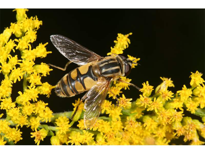Thorax: Dorsal gelbe Streifen mindestens ein Viertel so breit wie die schwarzen Streifen. Gelbe Färbung der Hintertibia schmal, etwa ein Drittel der Tibialänge, ohne schwarze, borstige Haare.