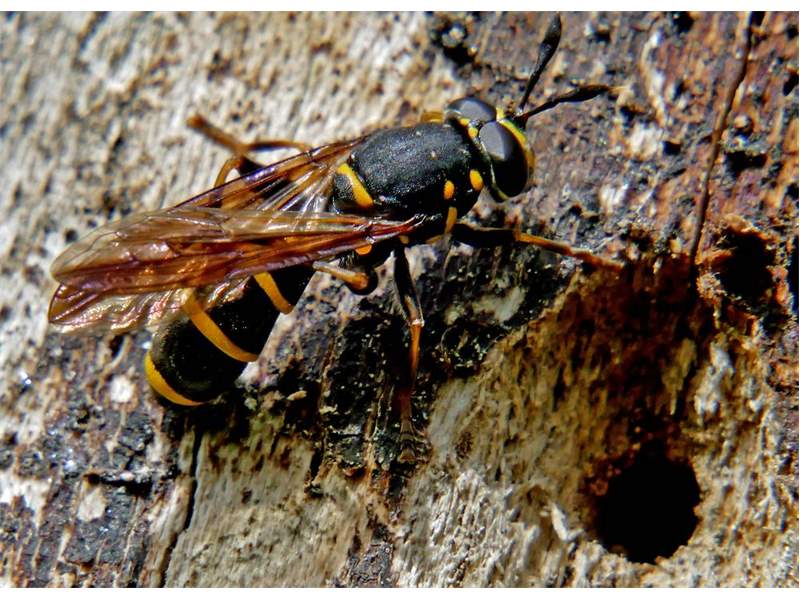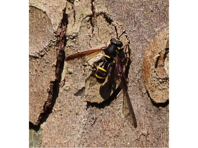 Abdomen: Schwarz; Tergite zwei, drei und vier mit gelber Binde am Hinterrand.