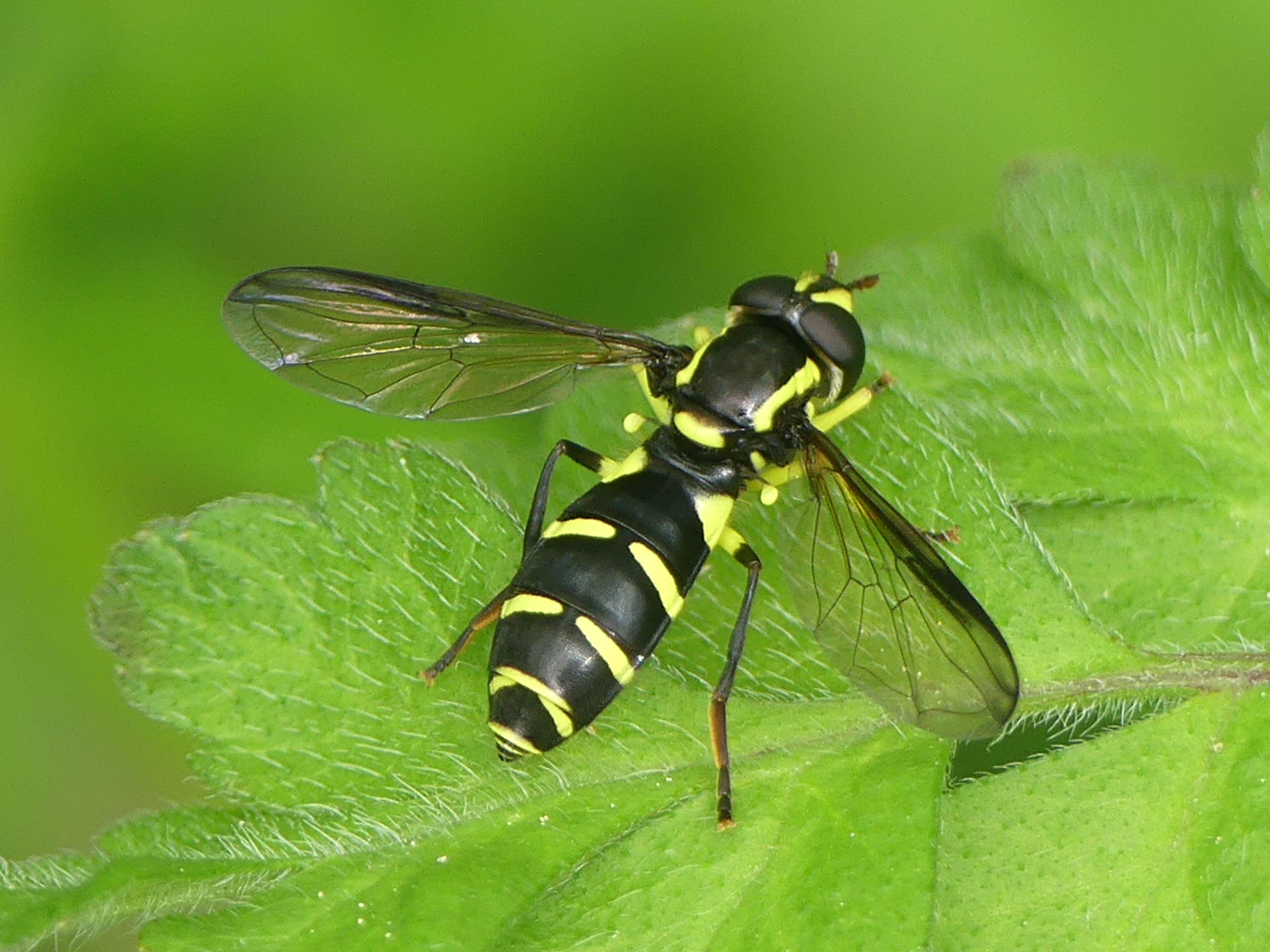 Ähnliche Arten: Xanthogramma pedissequum, Xanthogramma stackelbergi und Xanthogramma citrofasciatum mit gelber Membran zwischen Tergit und Sternit drei und vier. Hinterbeine von Xanthogramma citrofasciatum gelborange gefärbt.