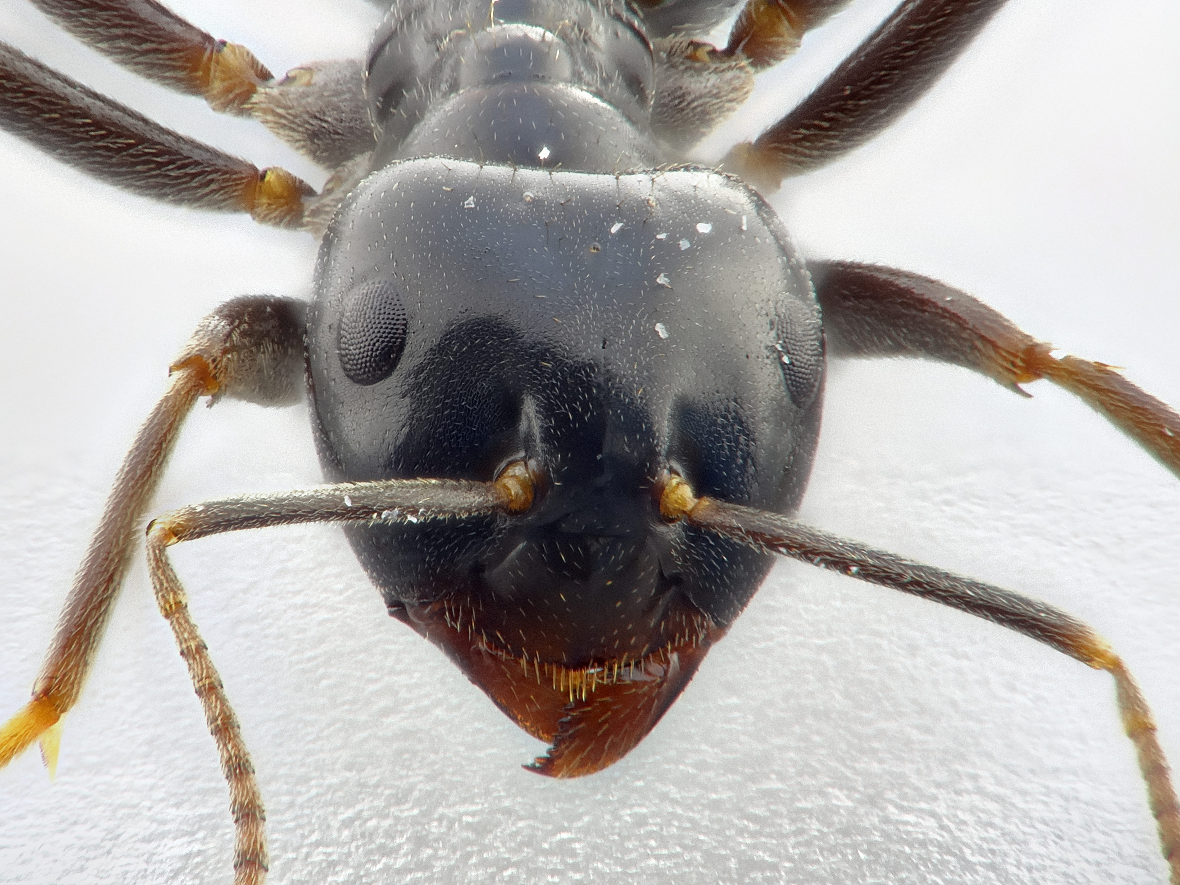 Kopf der Arbeiterin im Verhältnis zum Mesosoma sehr breit; Fühlerschaft (Scapus) schwarz, Fühlergeißel (Funiculus) gelblich.