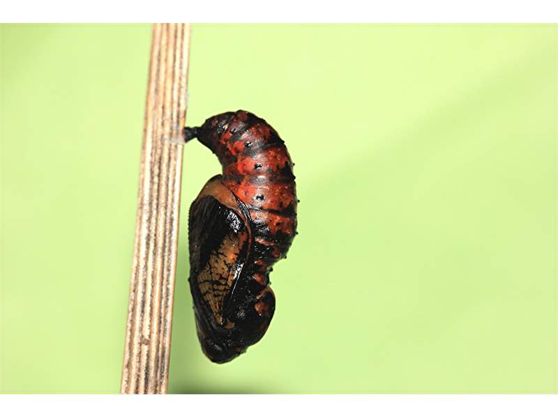 Puppe des Großen Perlmutterfalters. Studioaufnahme vom 24.3.2015. (ex ovo Zucht, Ei vom 8.8.2014). (© Matthias Hartung)( Bild vergrößern)