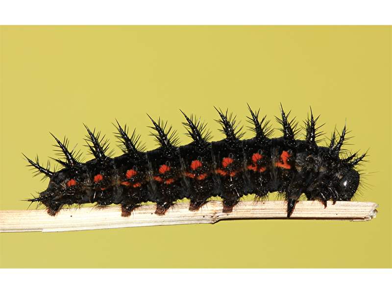 Erwachsene Raupe des Großen Perlmutterfalters. Studioaufnahme vom 11.3.2015. (ex ovo Zucht, Ei vom 8.8.2014) (© Matthias Hartung)( Bild vergrößern)