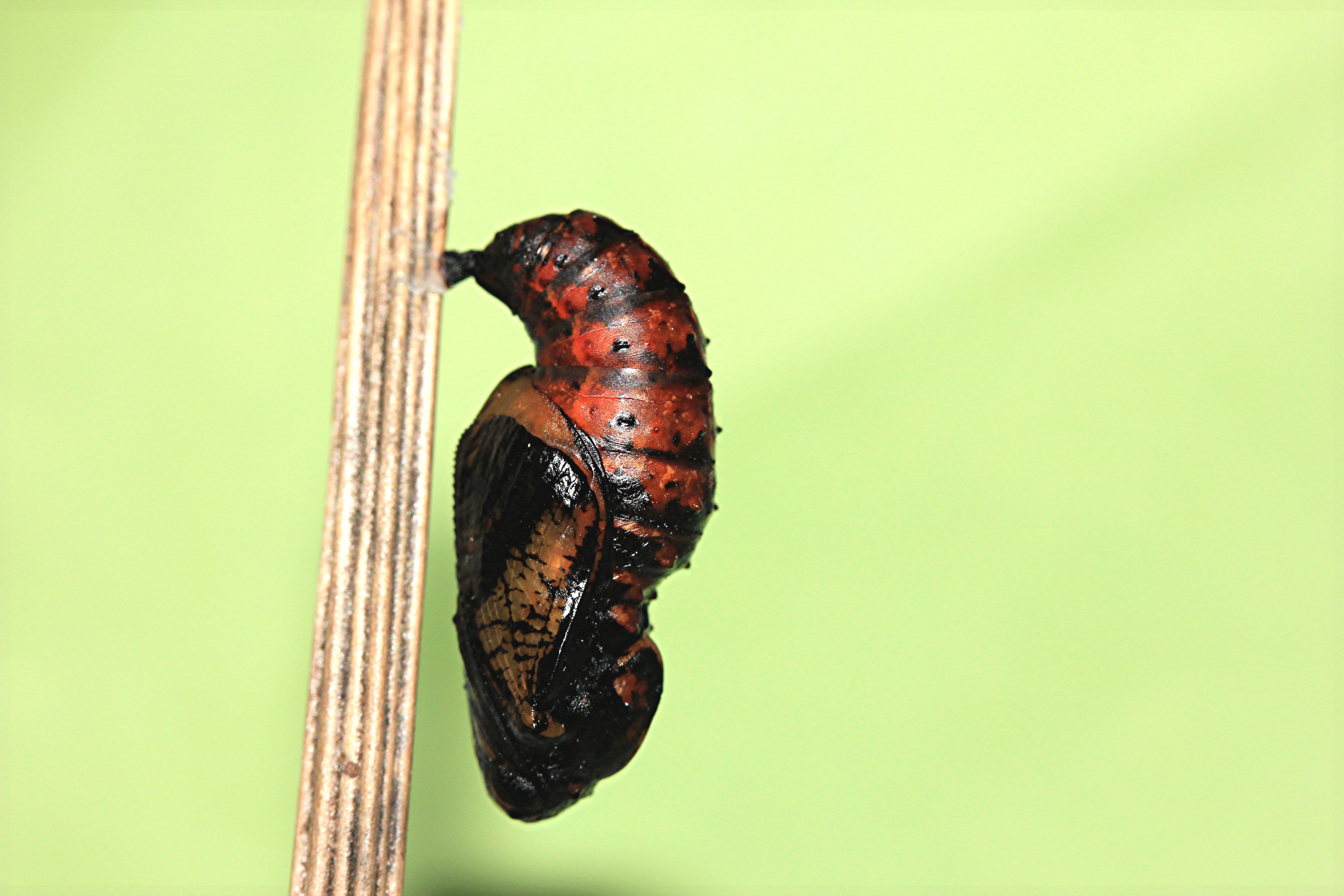 Puppe des Großen Perlmutterfalters. Studioaufnahme vom 24.3.2015. (ex ovo Zucht, Ei vom 8.8.2014).