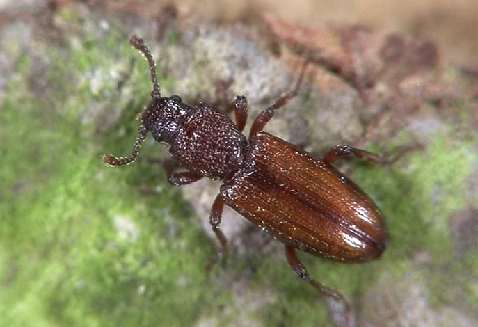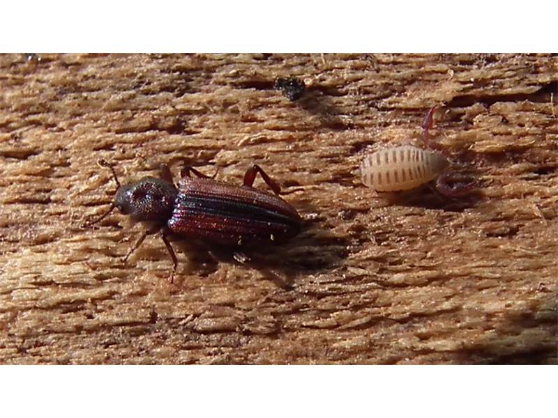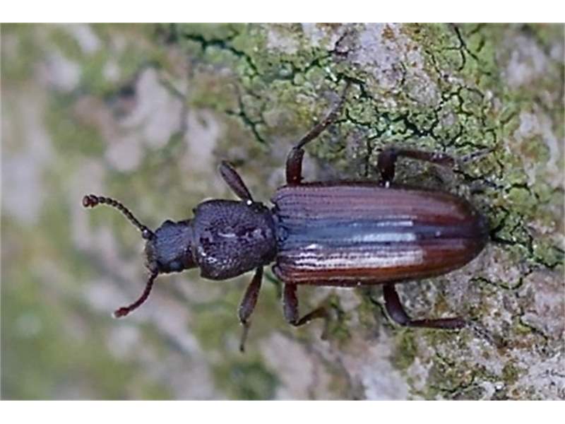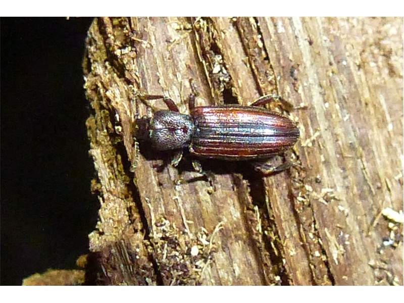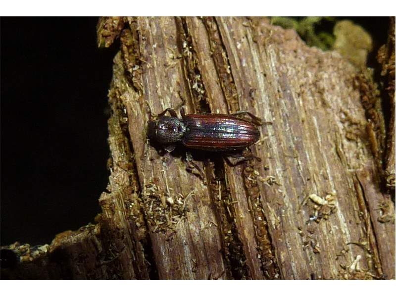 Bothrideres bipunctatus (Gmelin, 1790) unter loser Rinde eines am Boden liegenden, abgestorbenen Ahorn im Zschonergund Dresden, März 2022 (© Katrin Ritter)( Bild vergrößern)