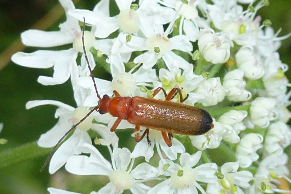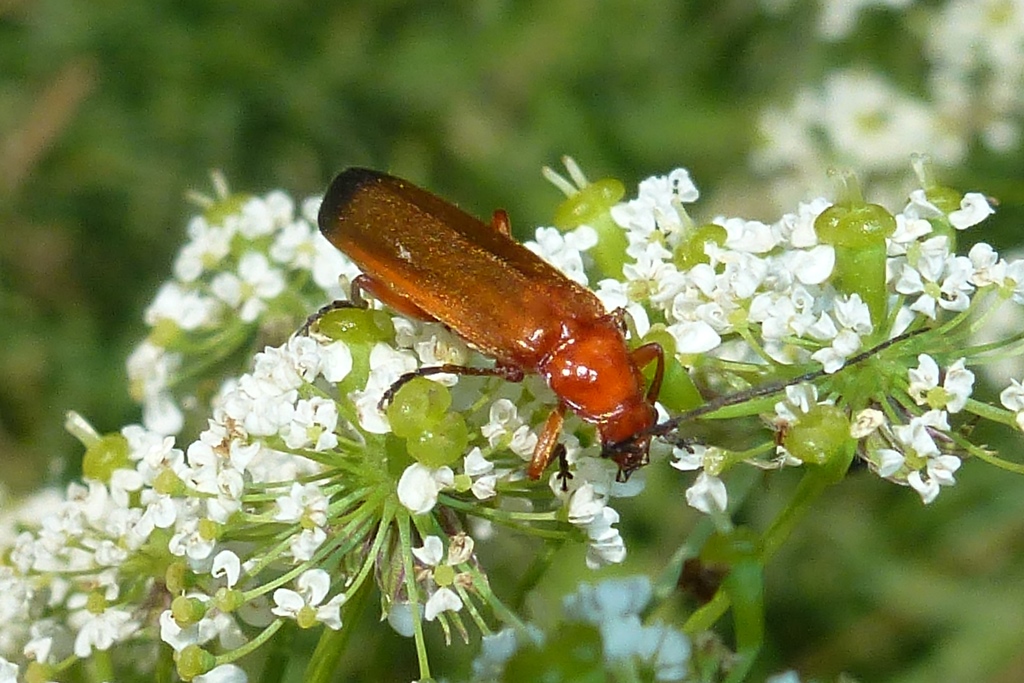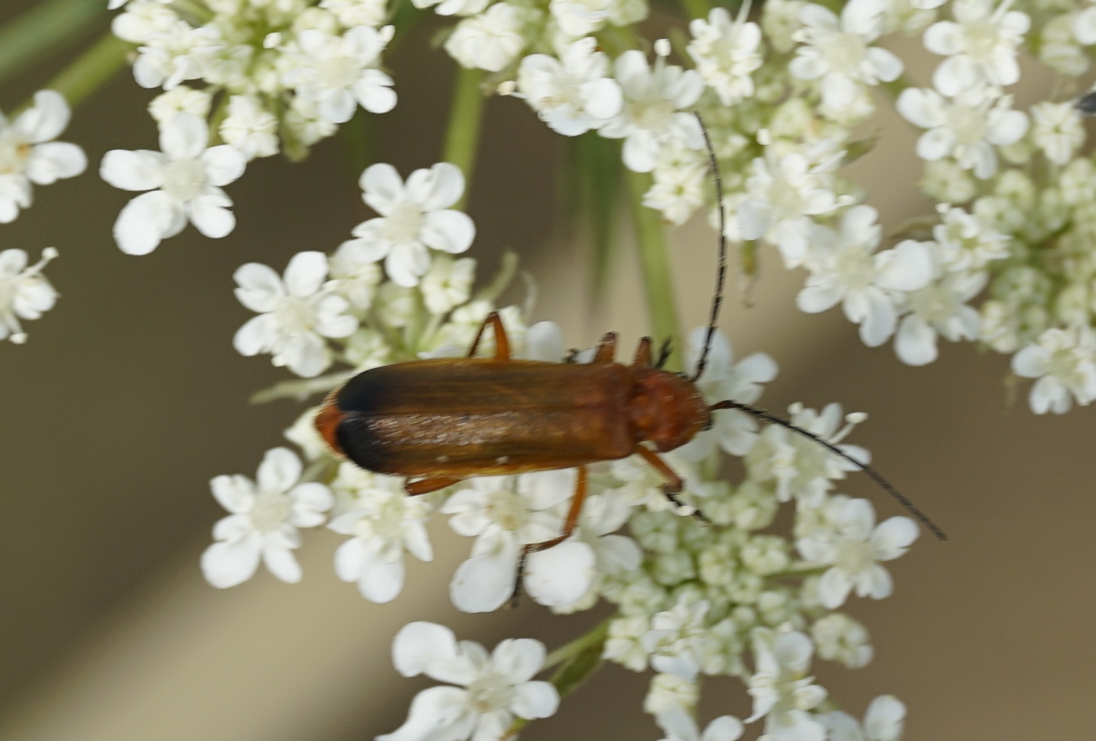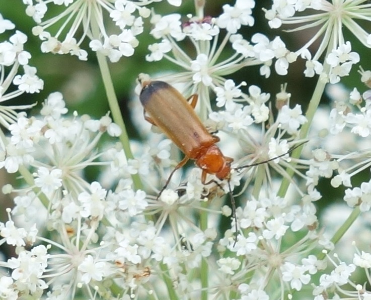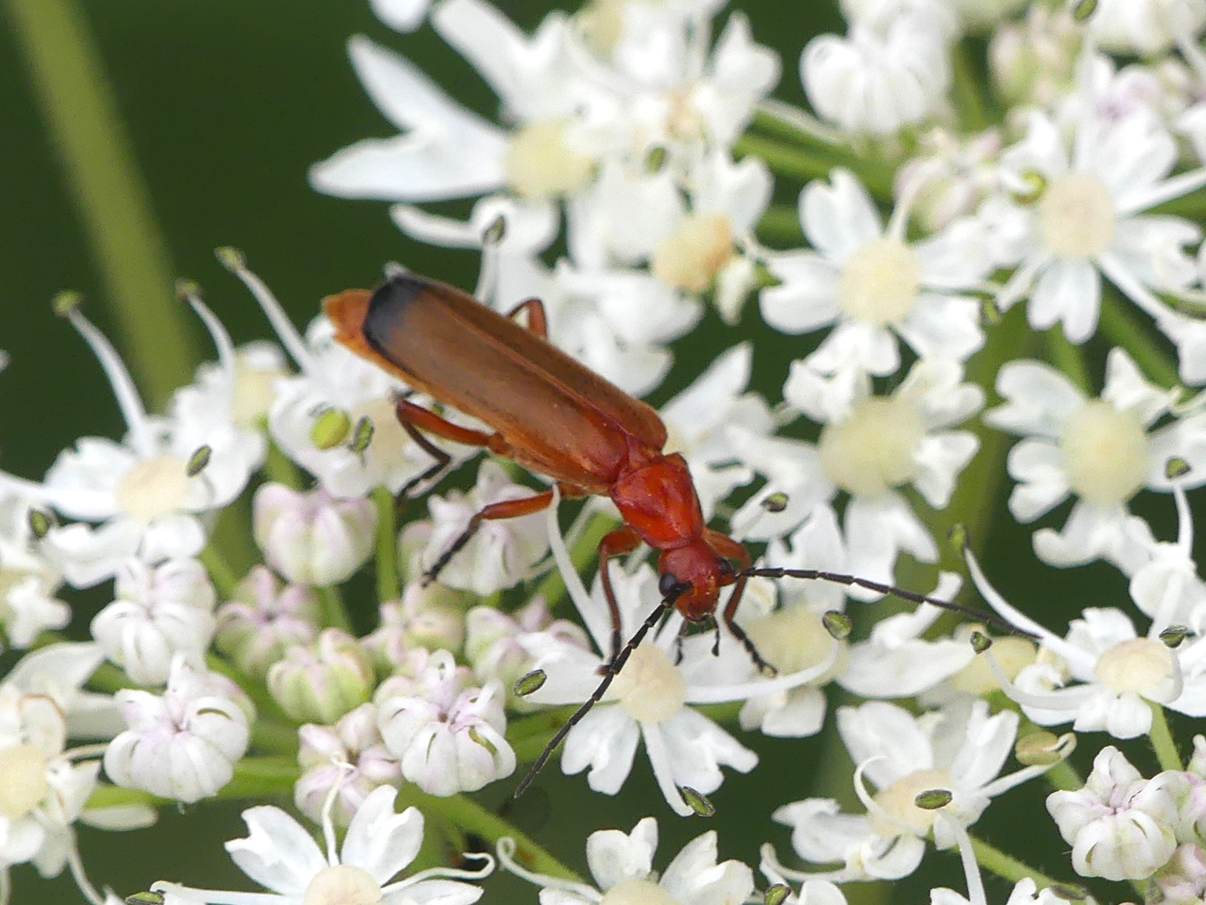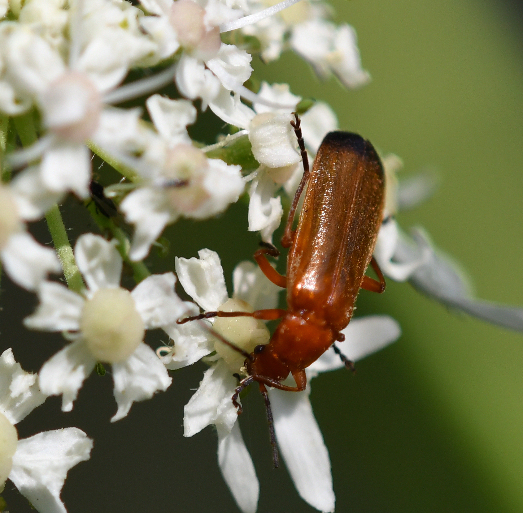 vier Exemplare mit Oxythyrea funesta (Poda, 1761) - Trauer-Rosenkäfer auf Wilder Möhre, Westlausitz, Nordhang Hutberg, Kamenz, 19.07.2020