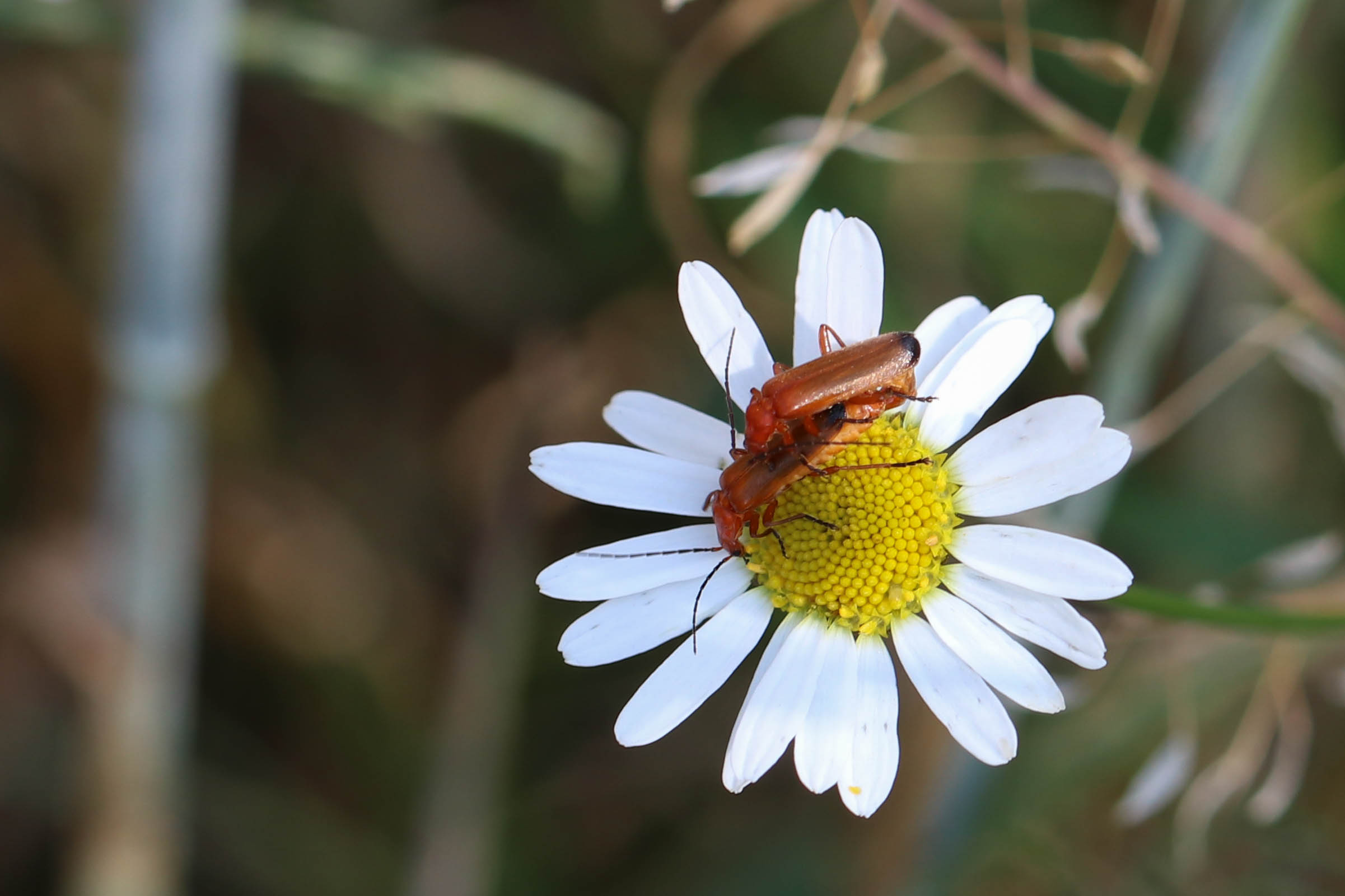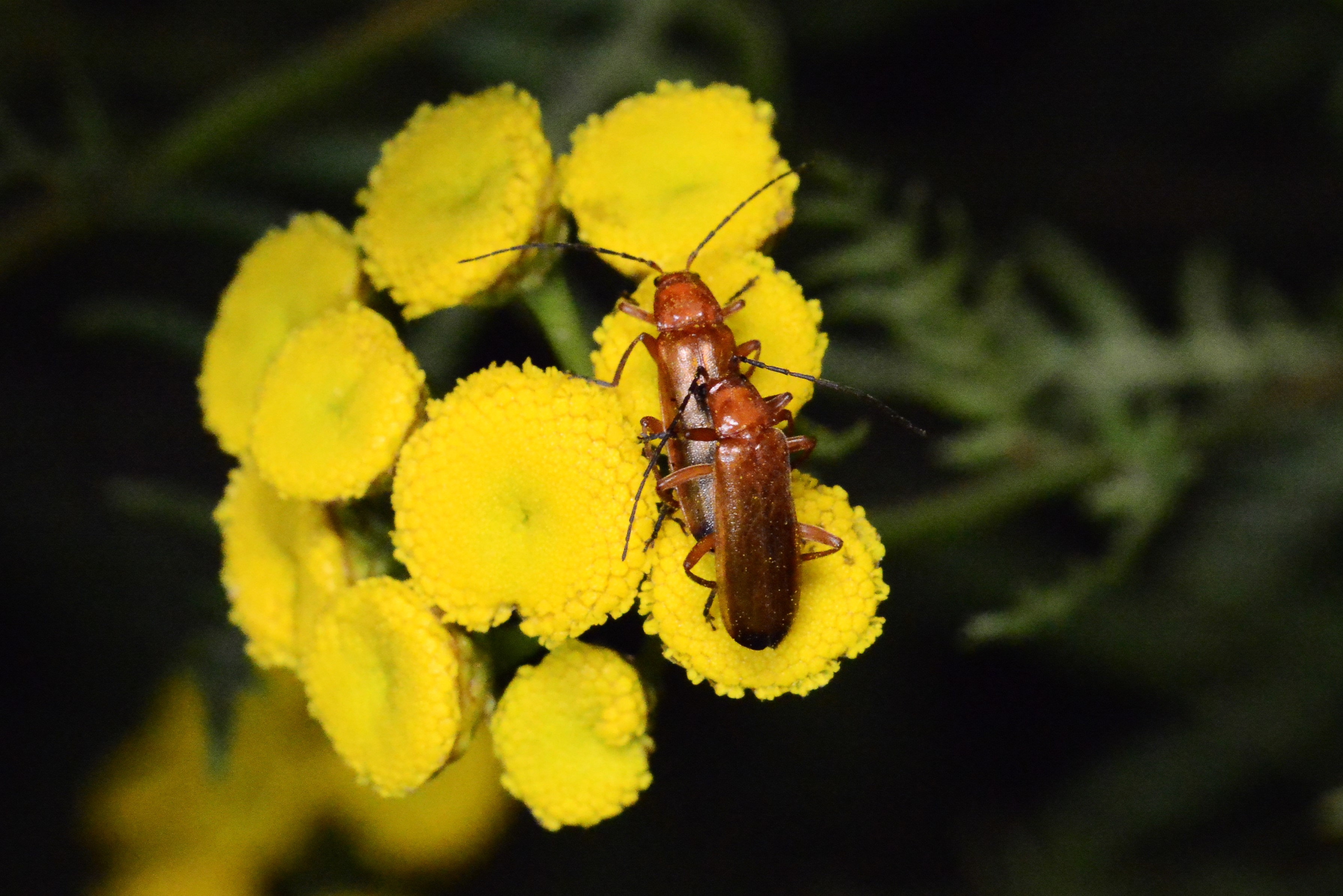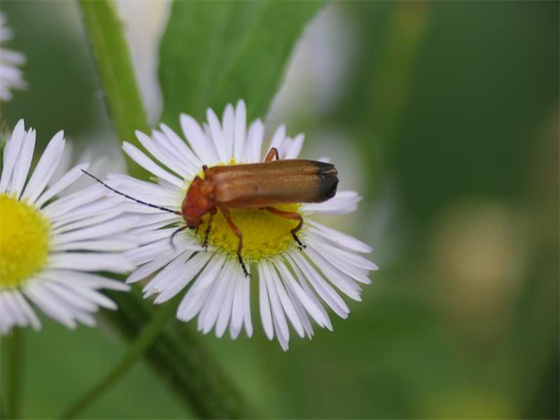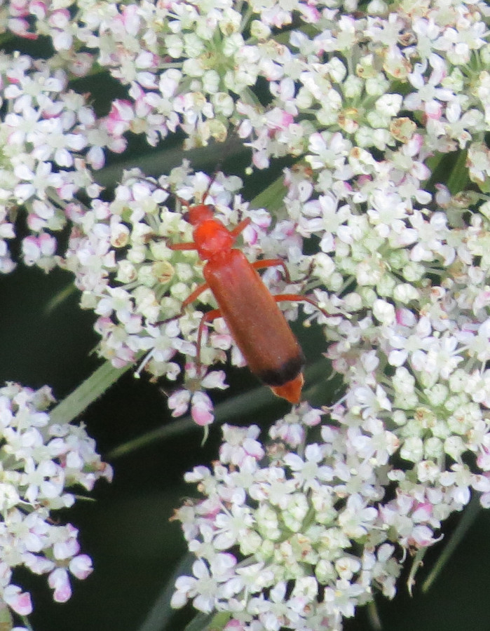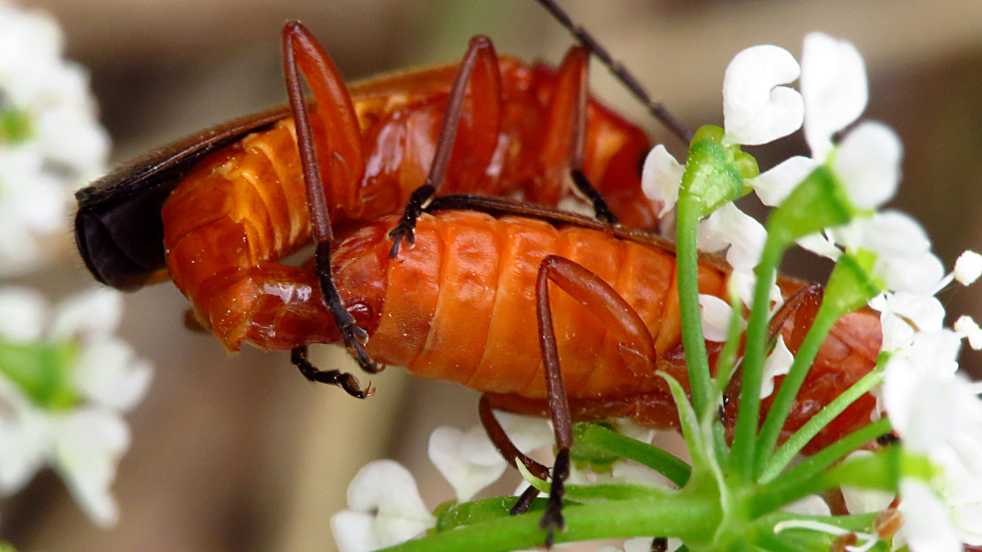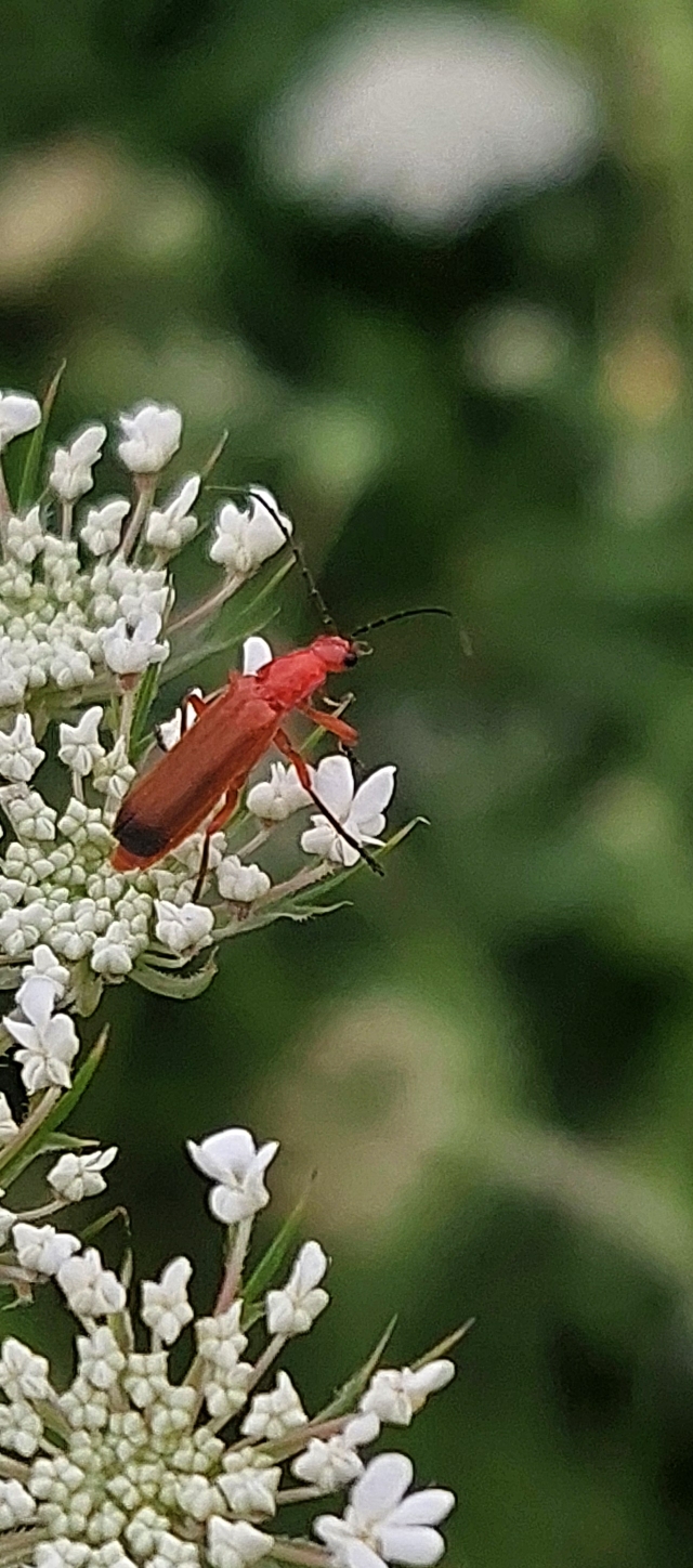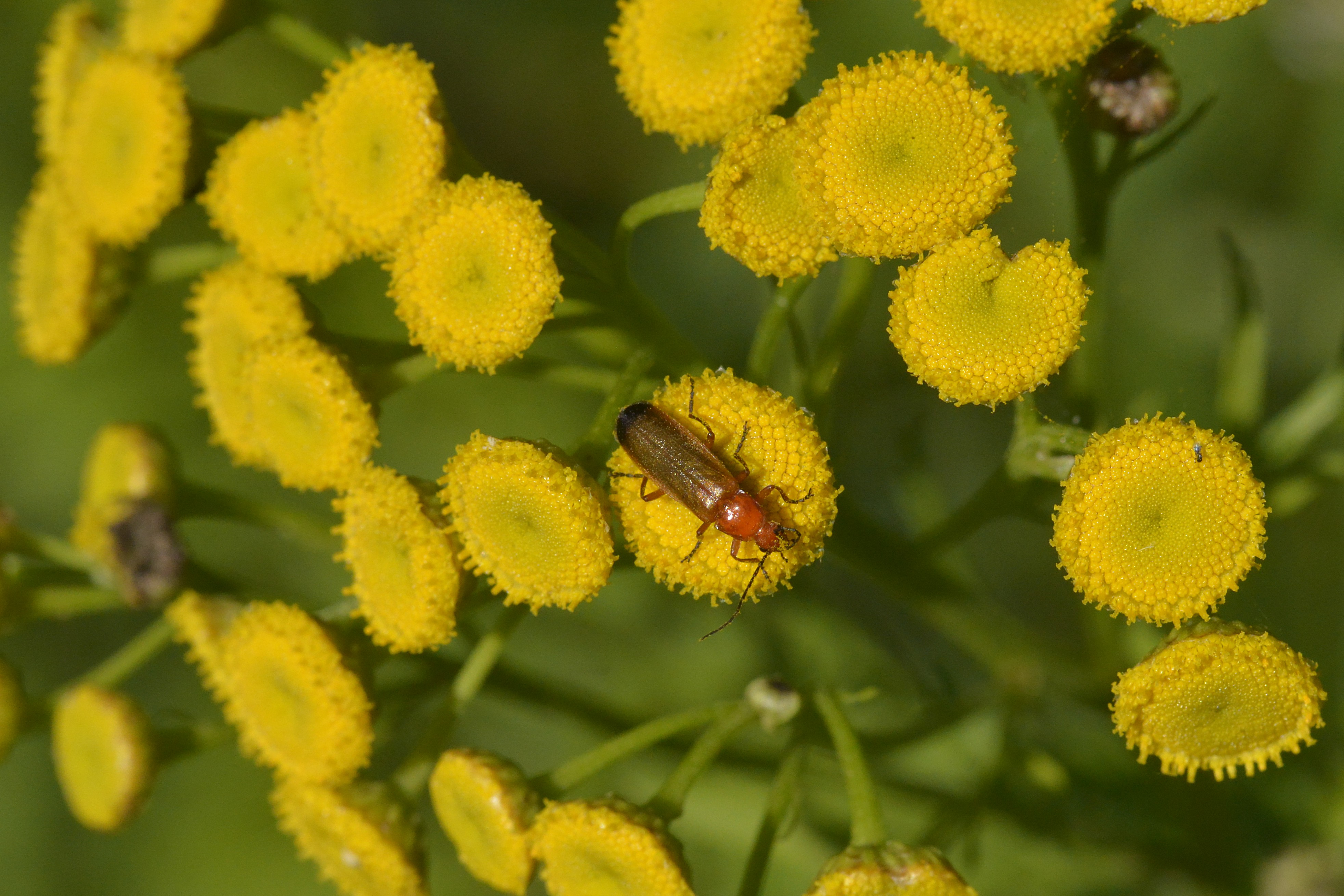 vier Exemplare mit Oxythyrea funesta (Poda, 1761) - Trauer-Rosenkäfer auf Wilder Möhre, Westlausitz, Nordhang Hutberg, Kamenz, 19.07.2020