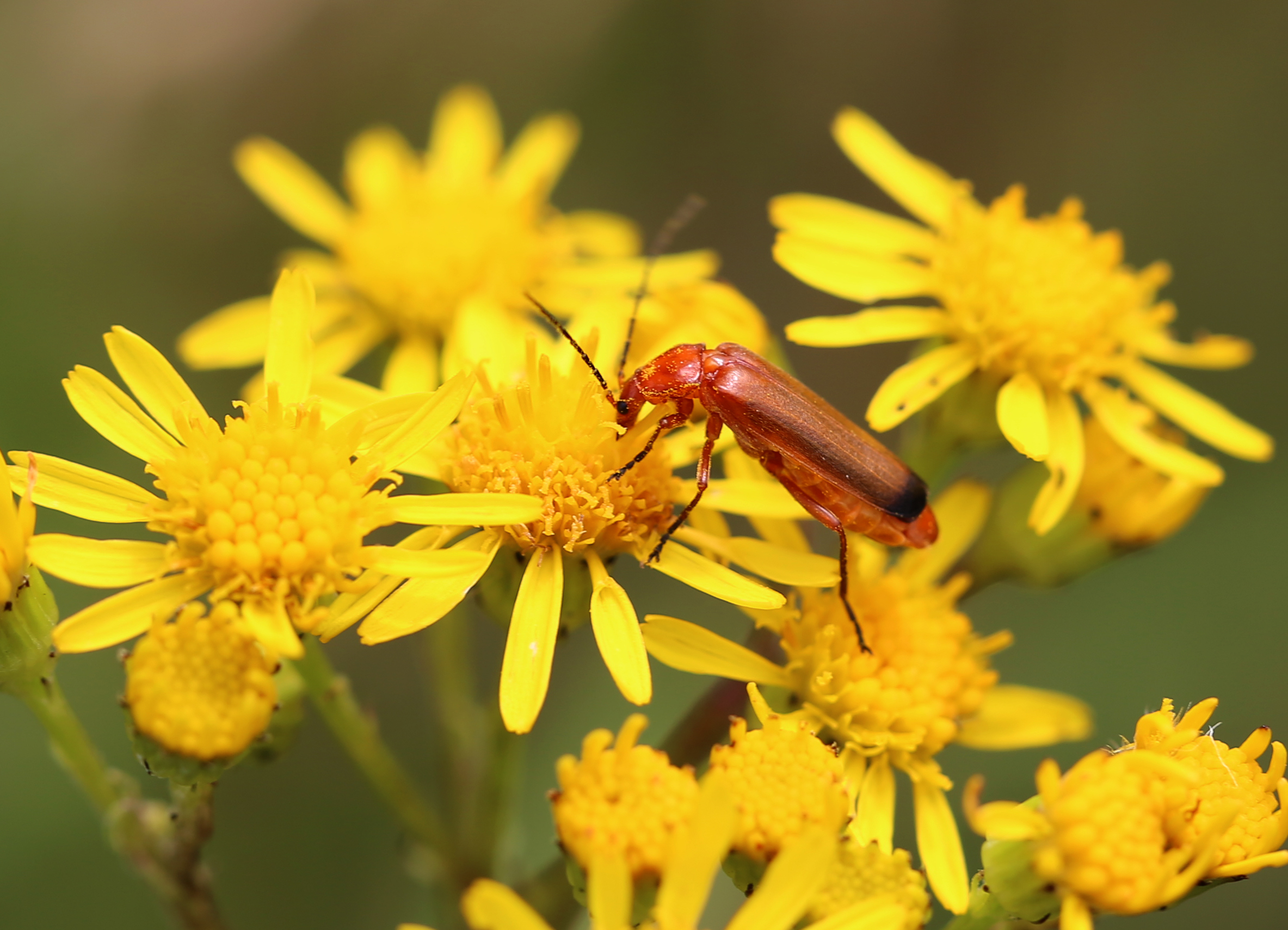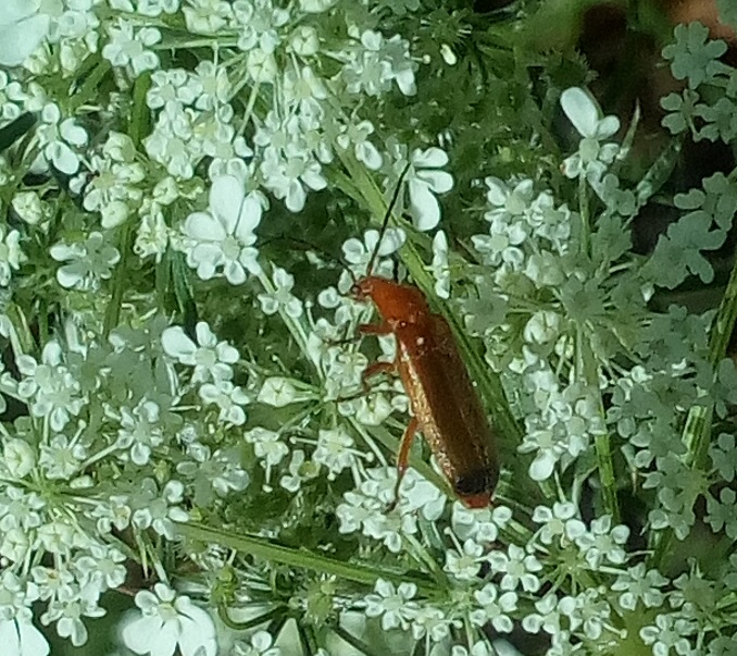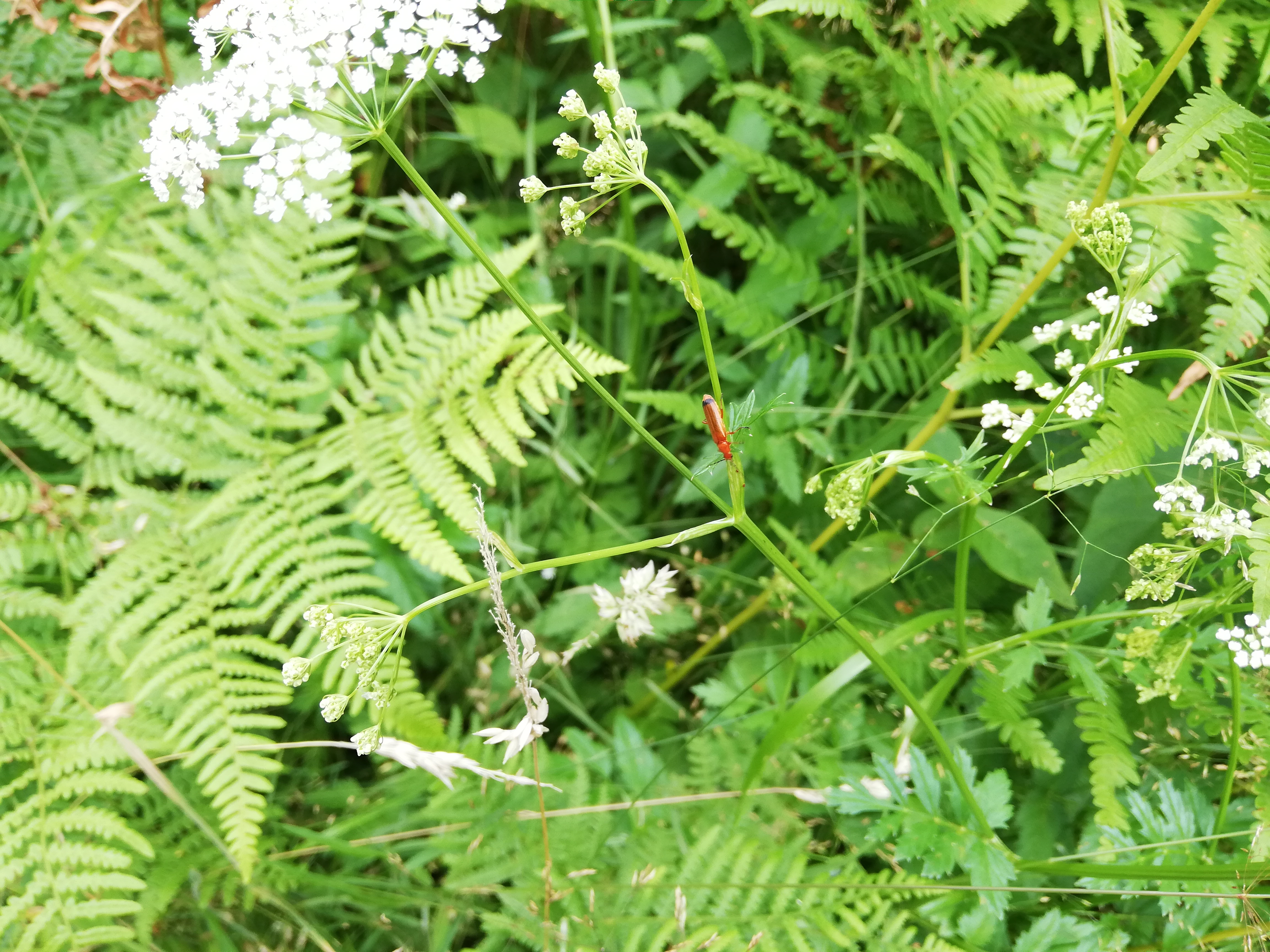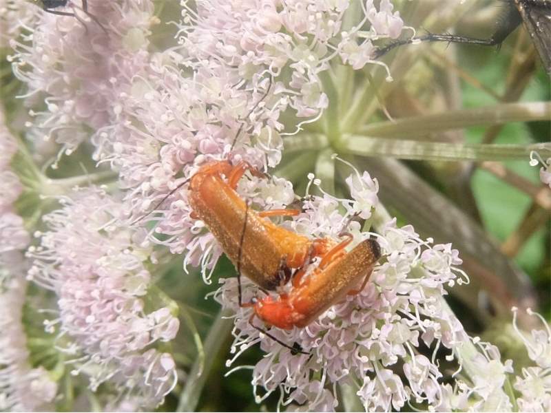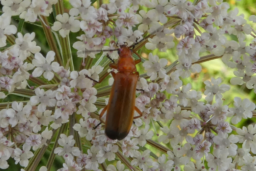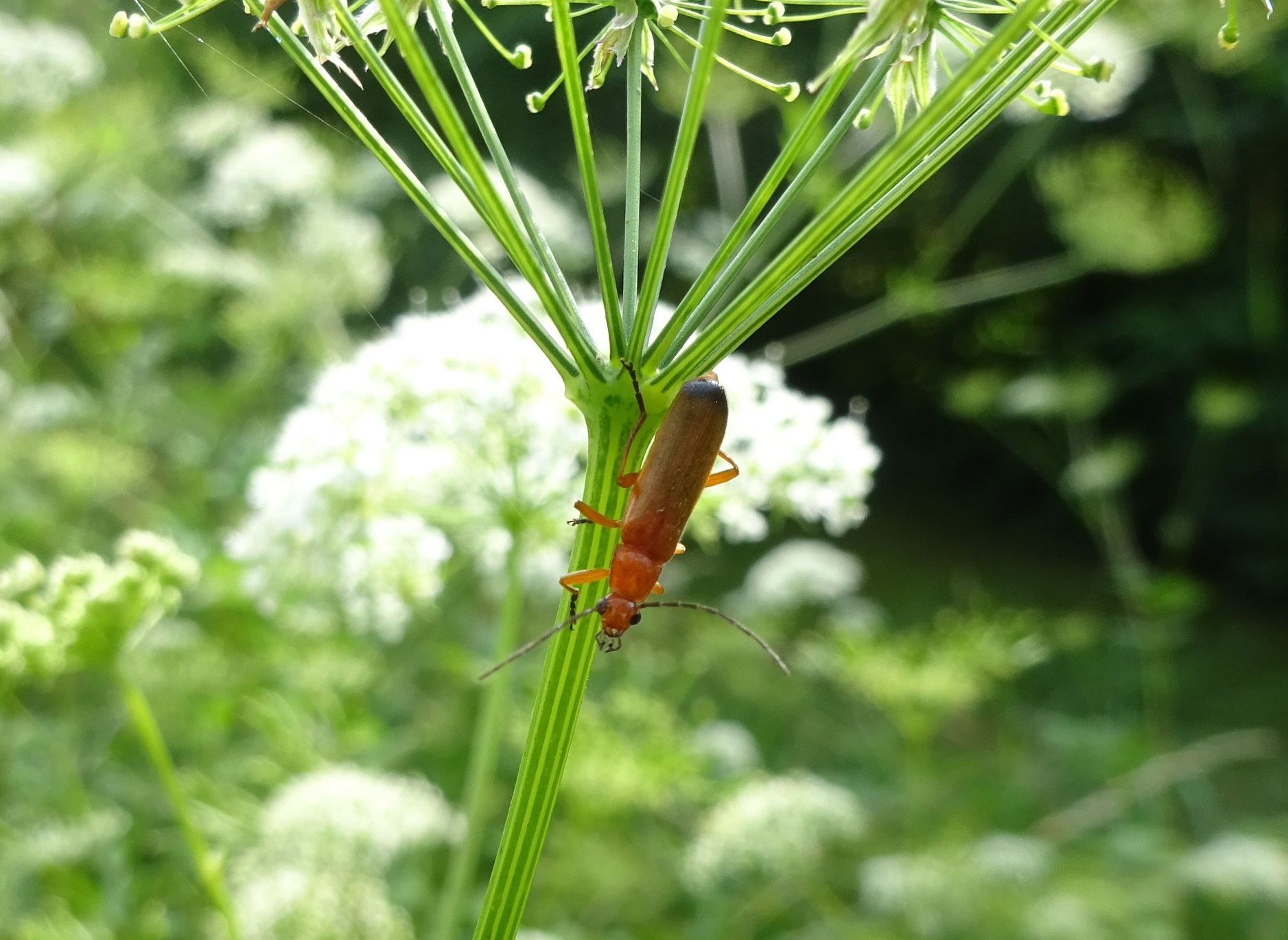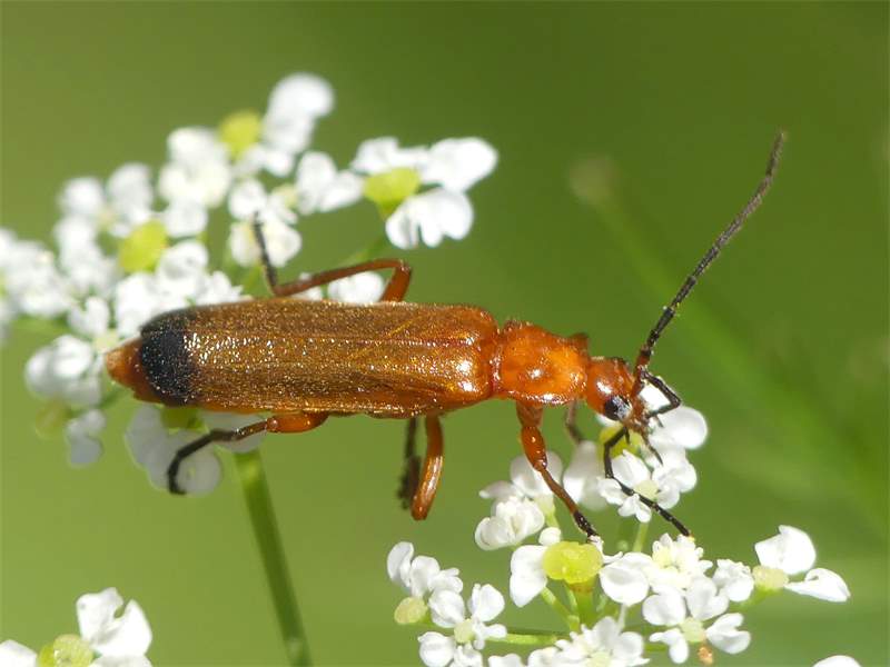 vier Exemplare mit Oxythyrea funesta (Poda, 1761) - Trauer-Rosenkäfer auf Wilder Möhre, Westlausitz, Nordhang Hutberg, Kamenz, 19.07.2020