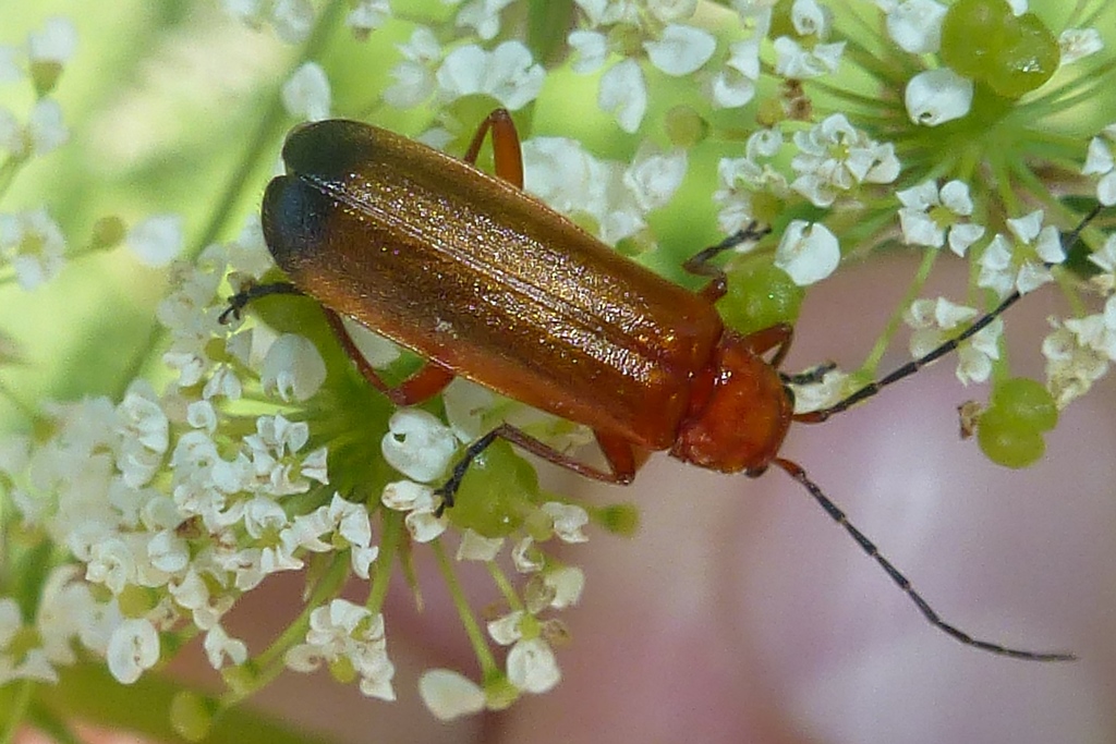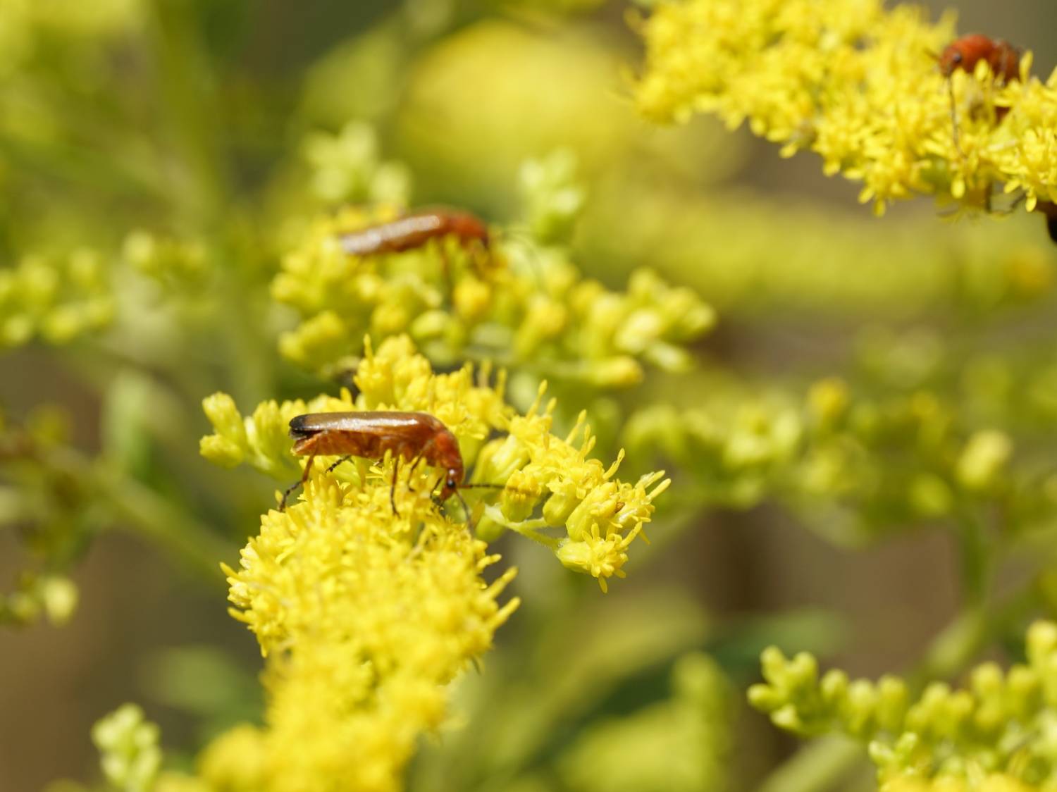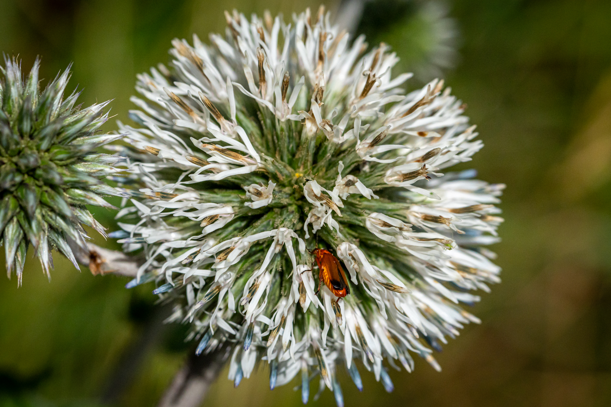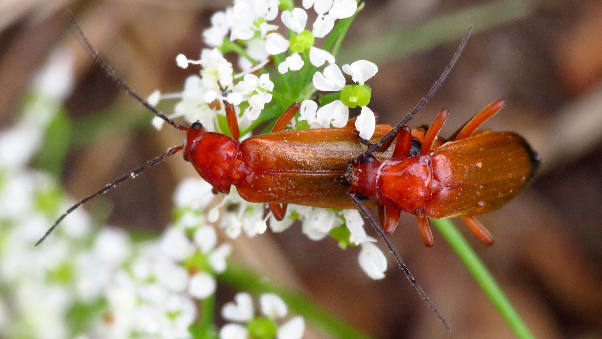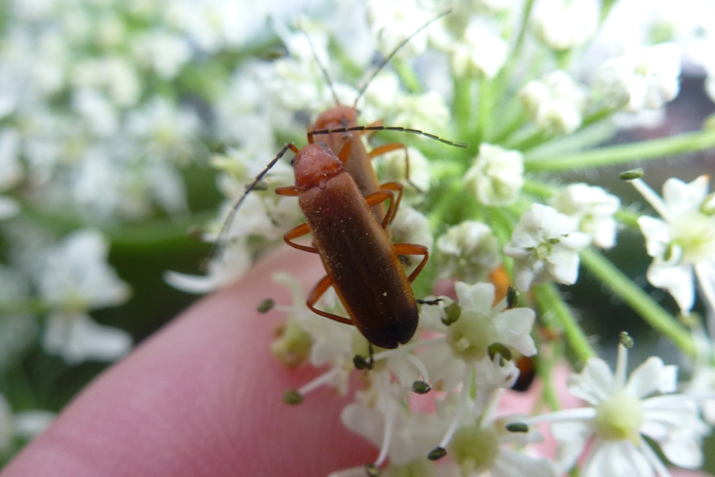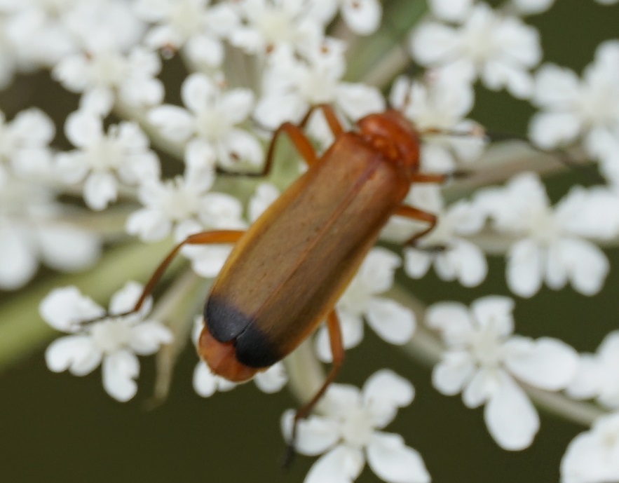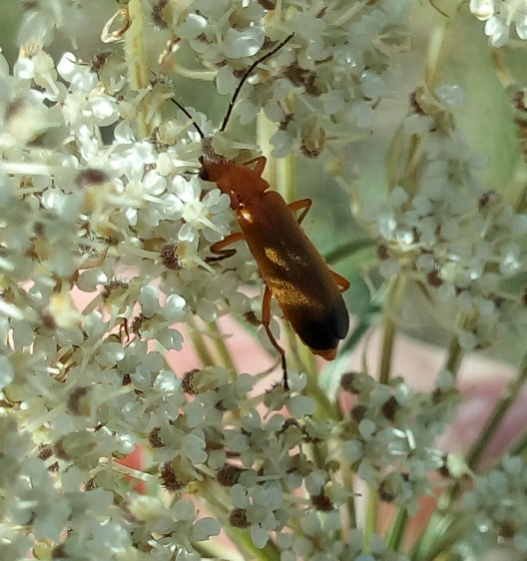 vier Exemplare mit Oxythyrea funesta (Poda, 1761) - Trauer-Rosenkäfer auf Wilder Möhre, Westlausitz, Nordhang Hutberg, Kamenz, 19.07.2020