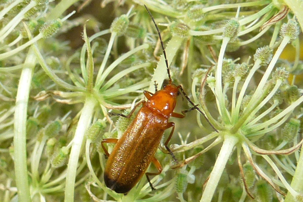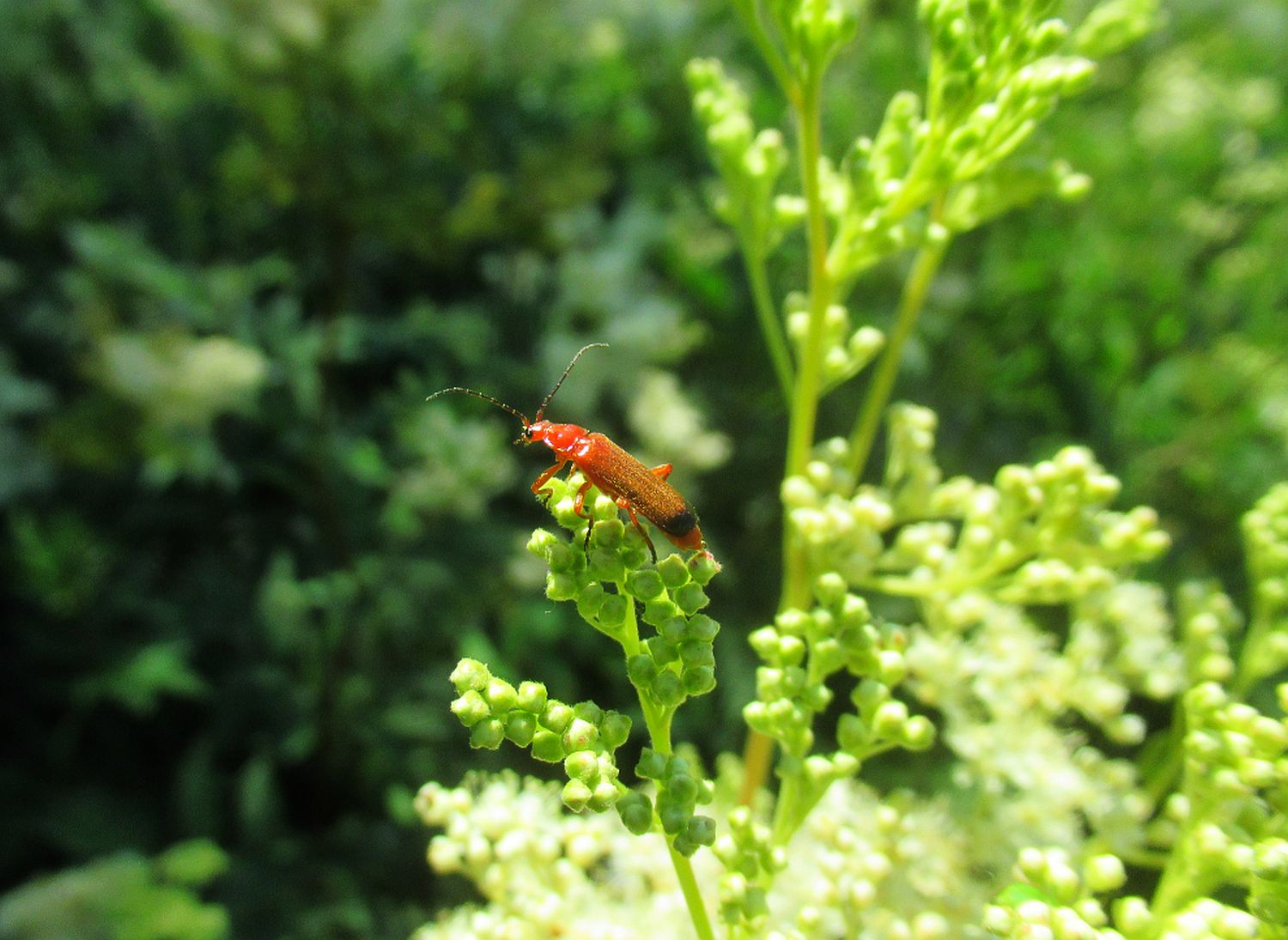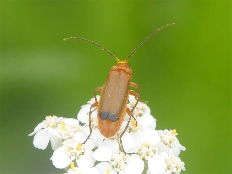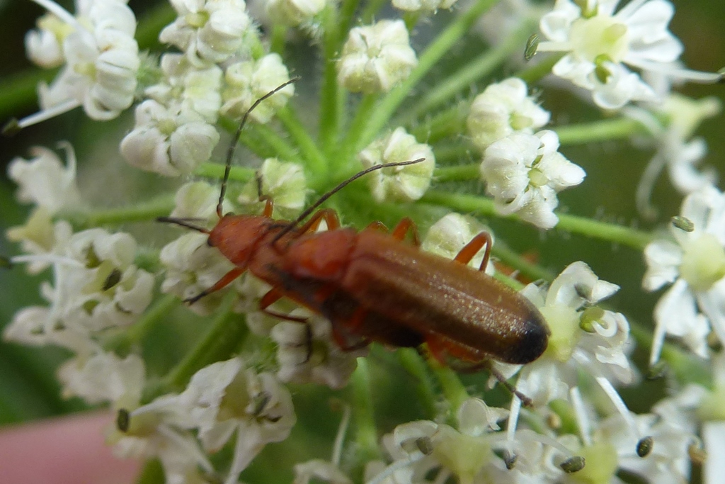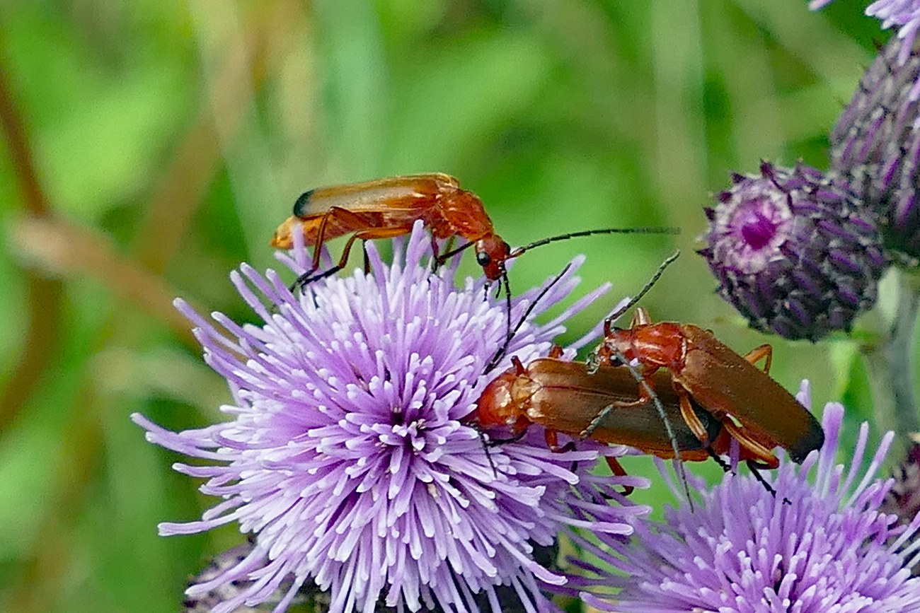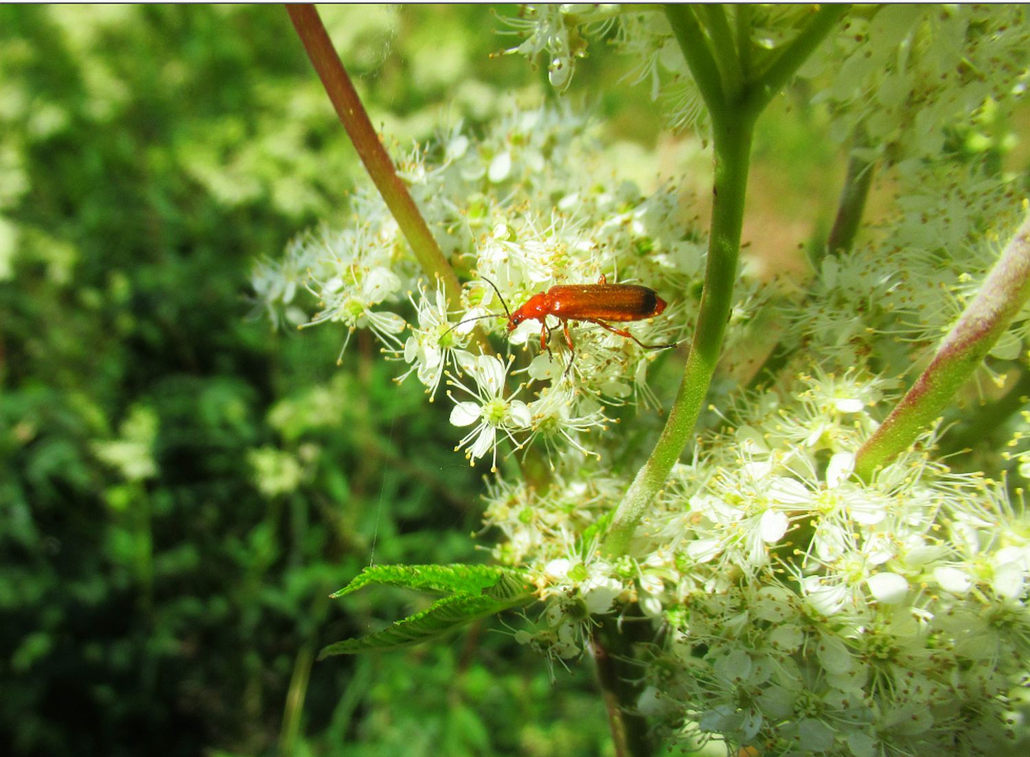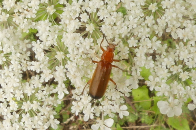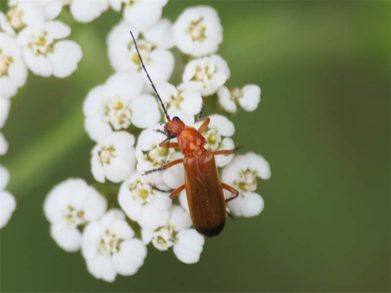 vier Exemplare mit Oxythyrea funesta (Poda, 1761) - Trauer-Rosenkäfer auf Wilder Möhre, Westlausitz, Nordhang Hutberg, Kamenz, 19.07.2020