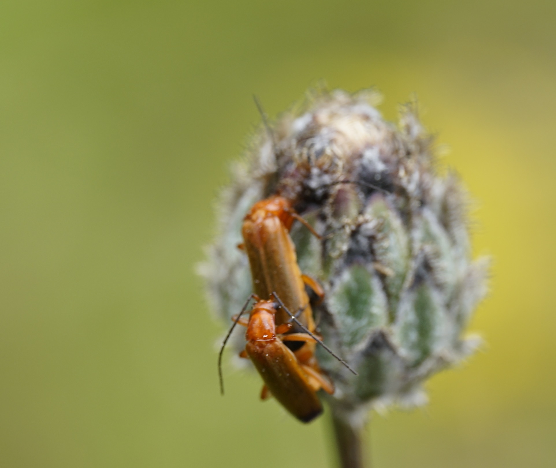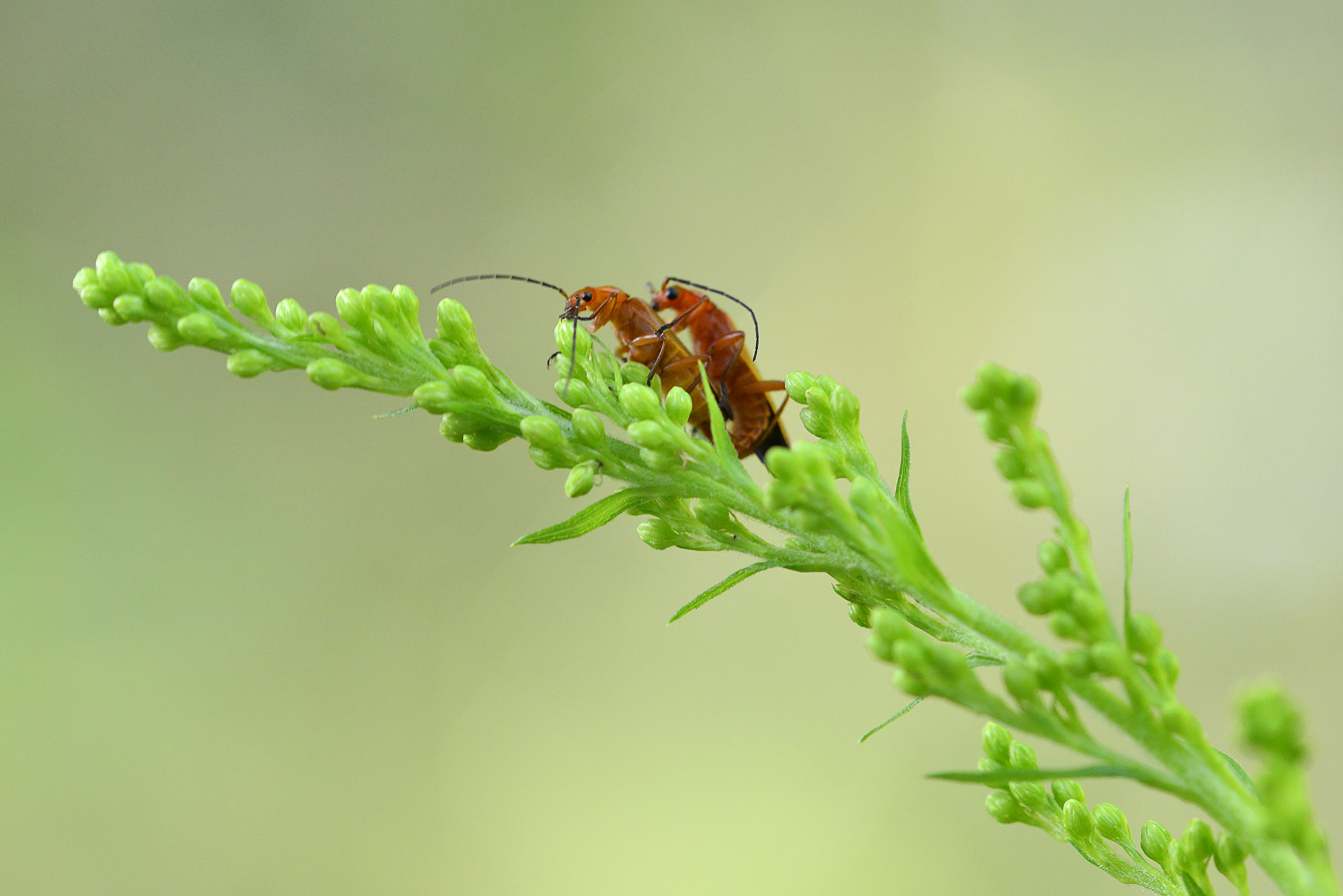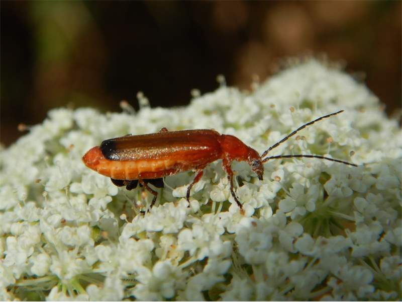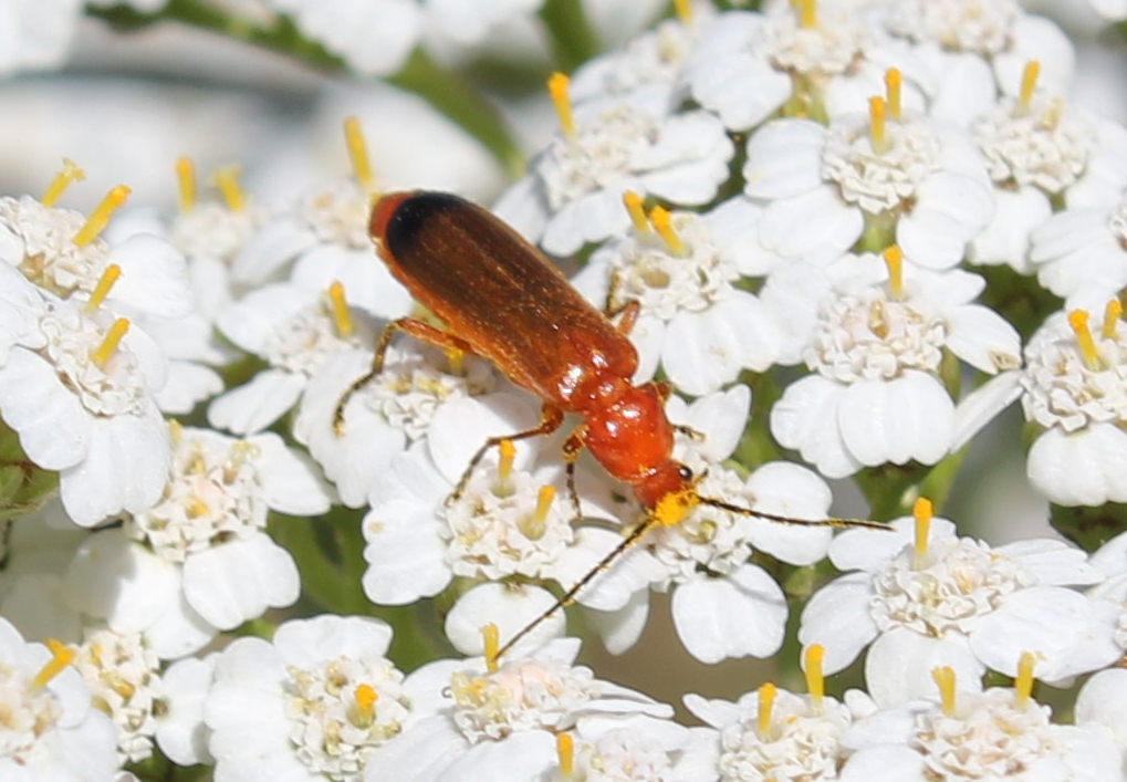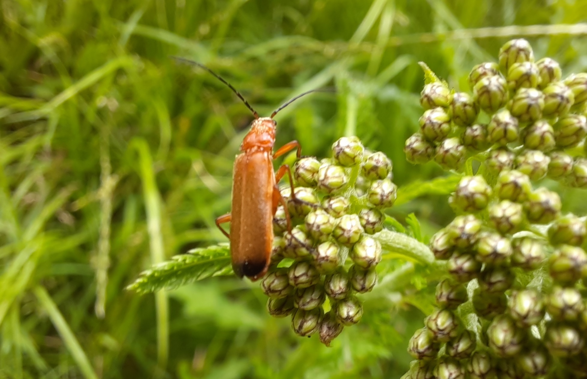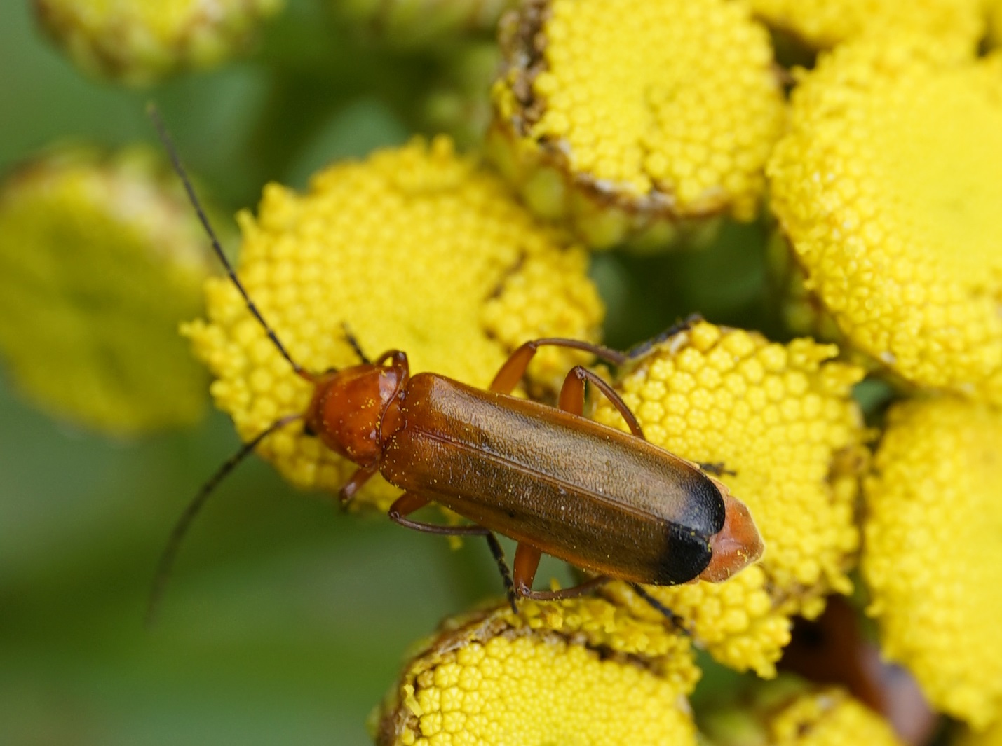vier Exemplare mit Oxythyrea funesta (Poda, 1761) - Trauer-Rosenkäfer auf Wilder Möhre, Westlausitz, Nordhang Hutberg, Kamenz, 19.07.2020