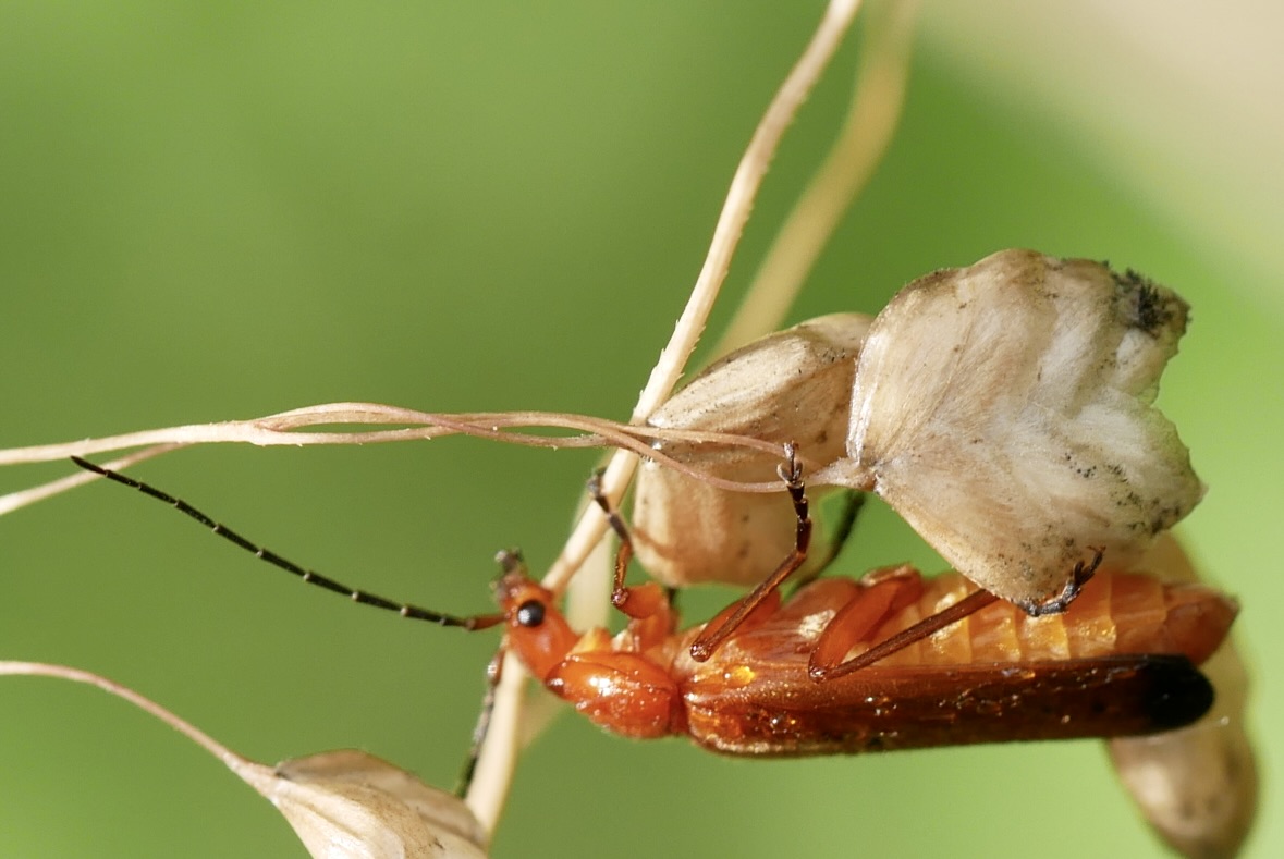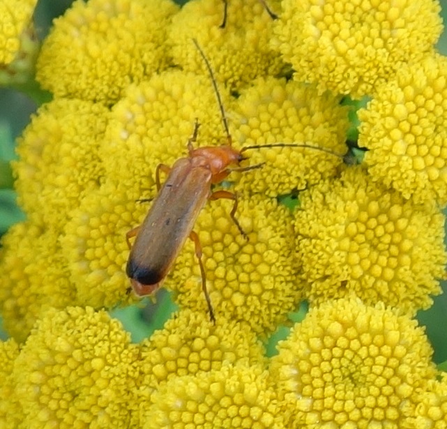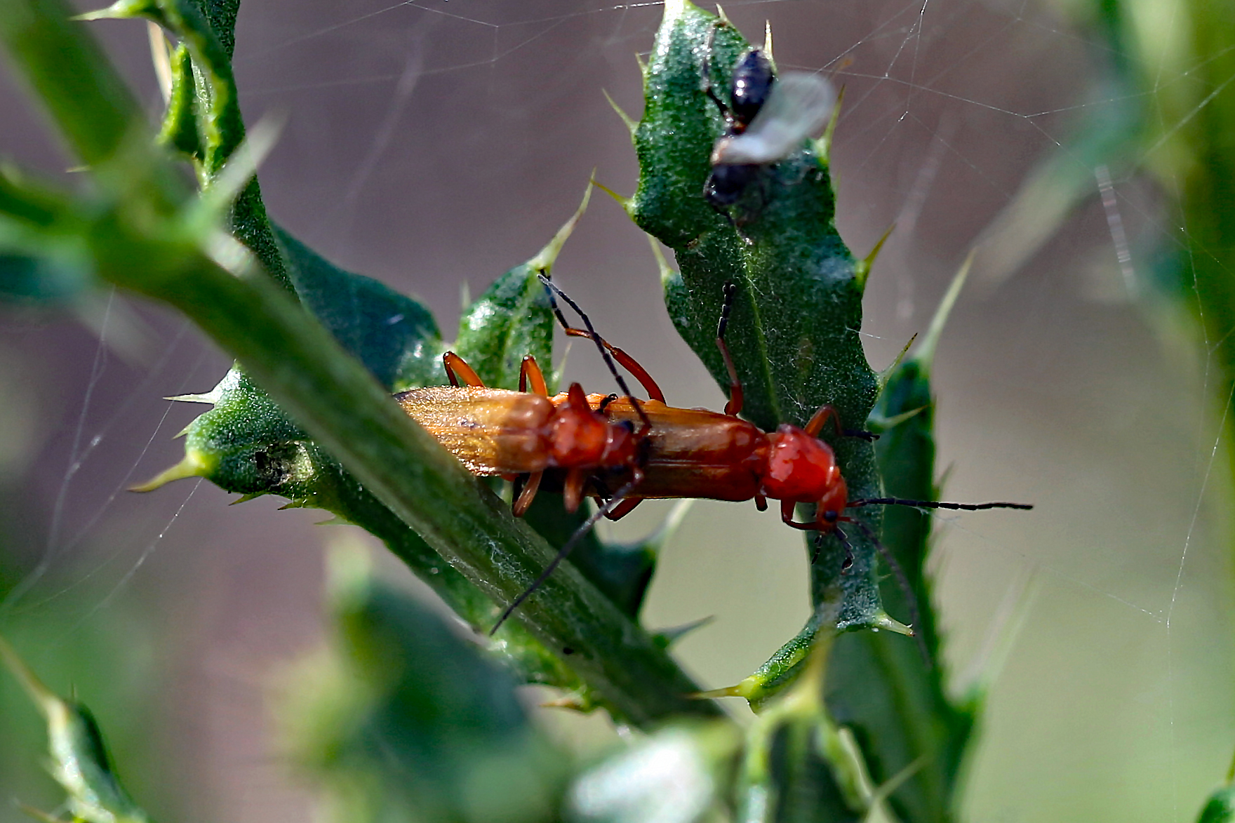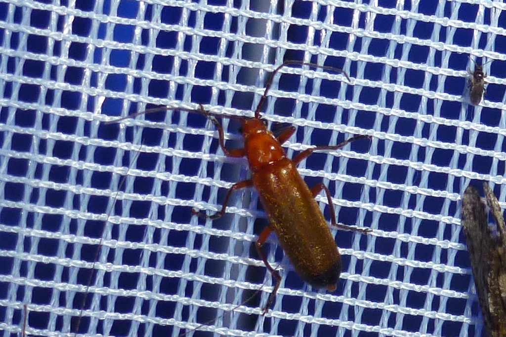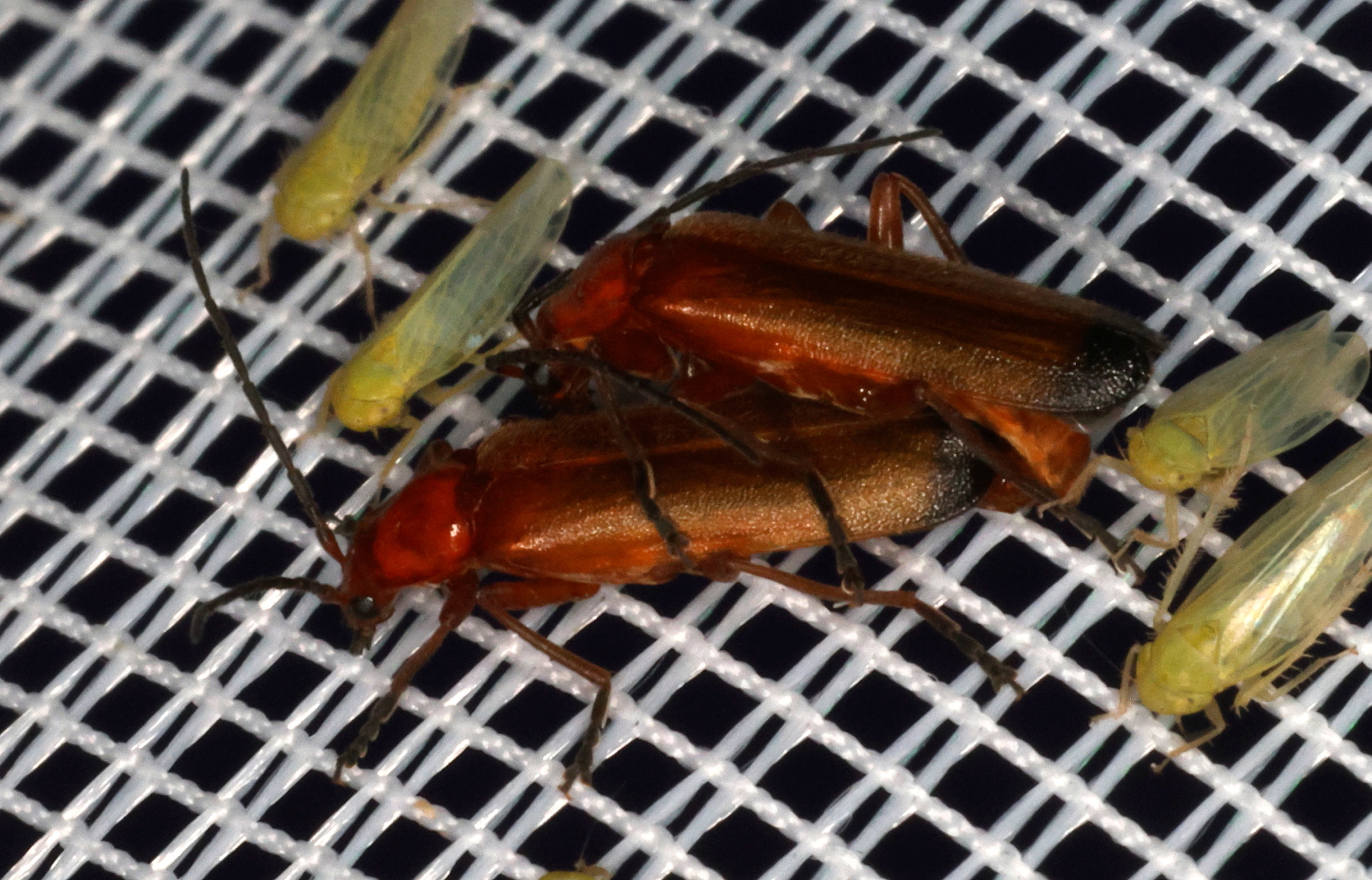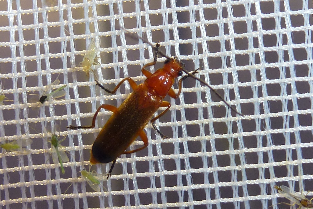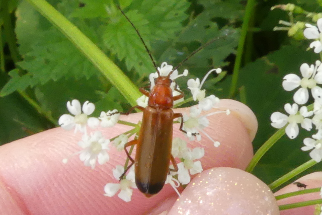 vier Exemplare mit Oxythyrea funesta (Poda, 1761) - Trauer-Rosenkäfer auf Wilder Möhre, Westlausitz, Nordhang Hutberg, Kamenz, 19.07.2020