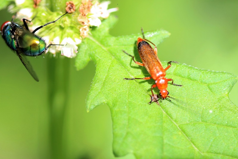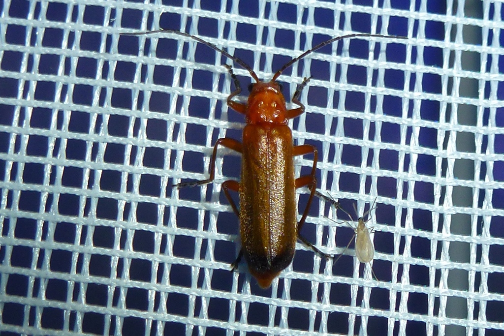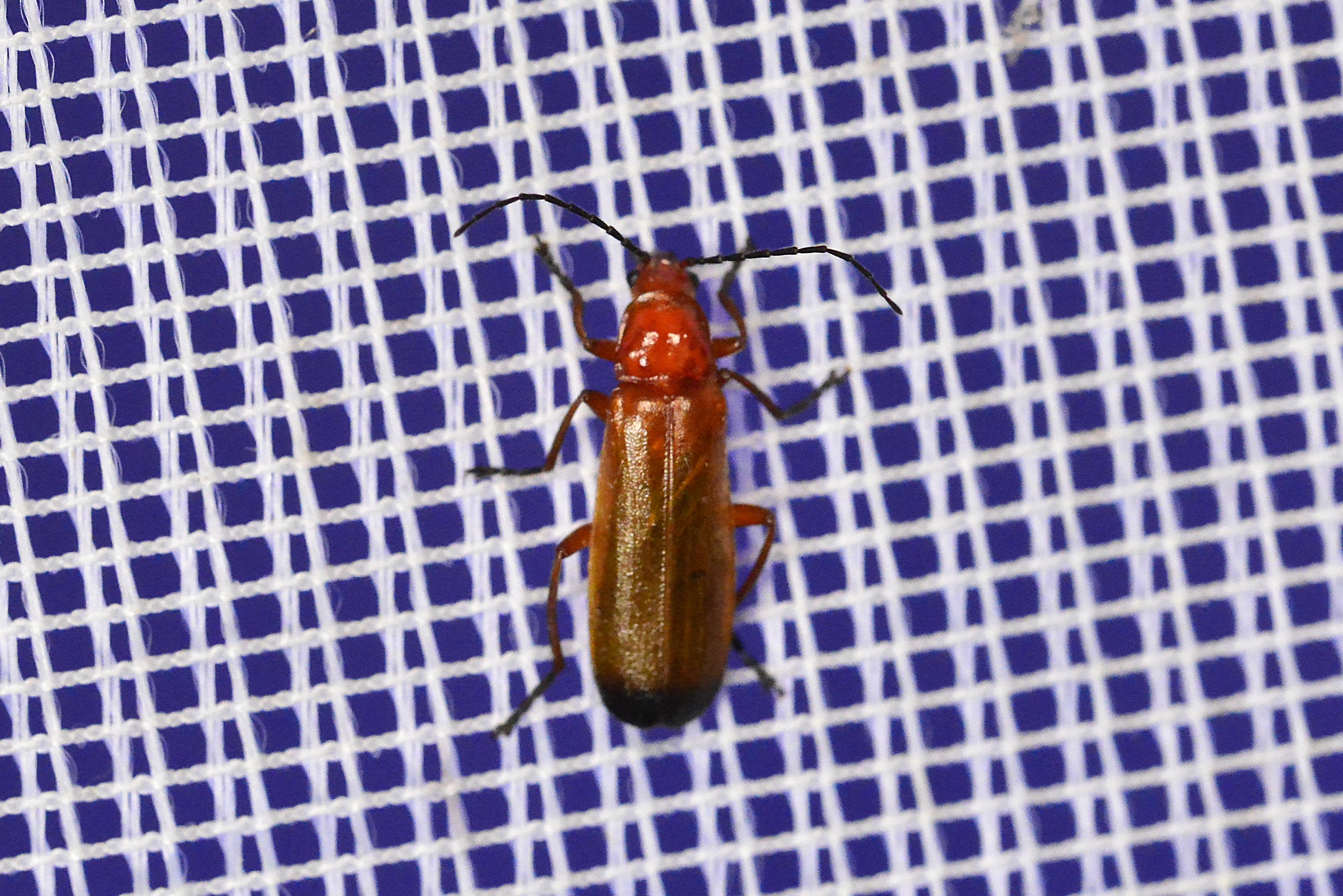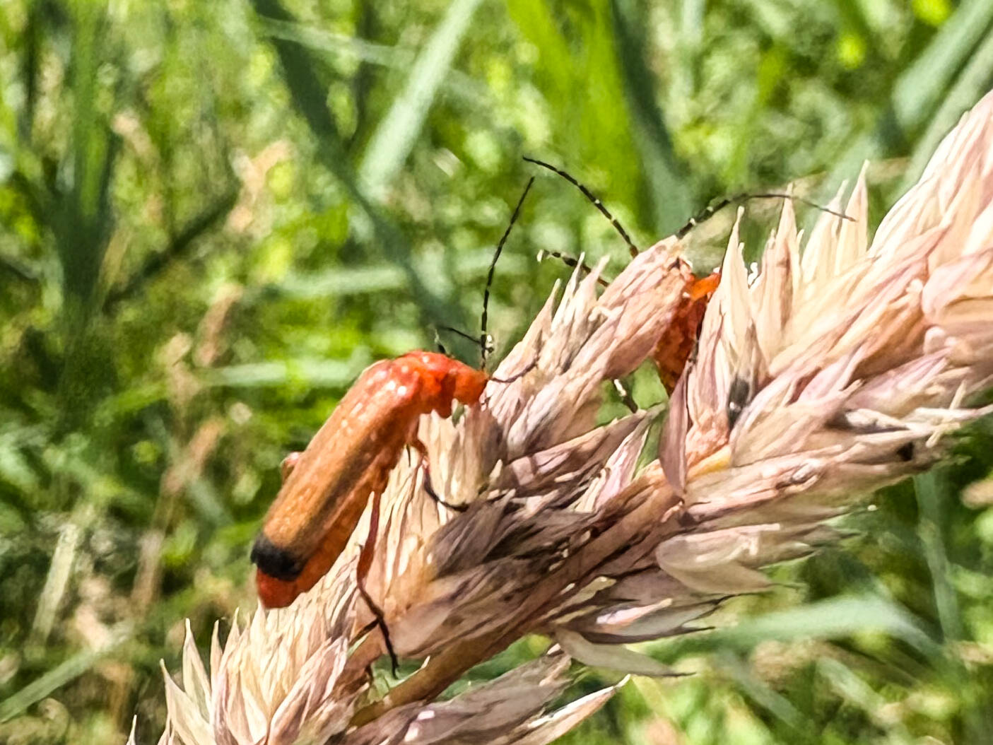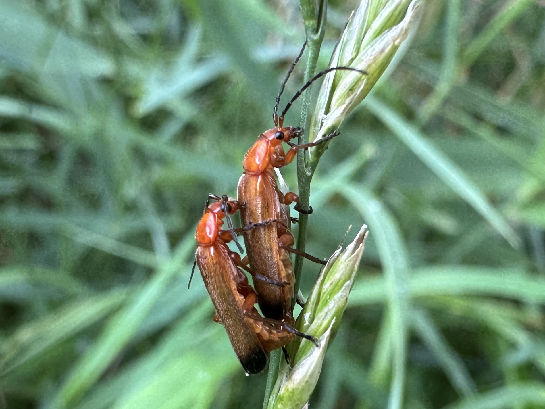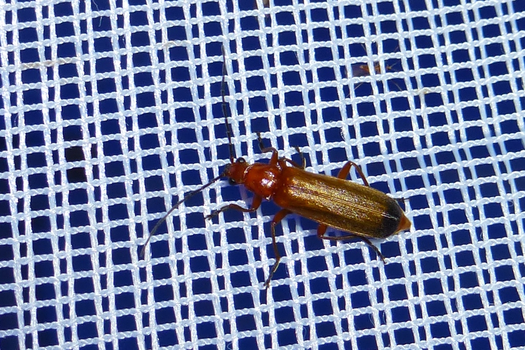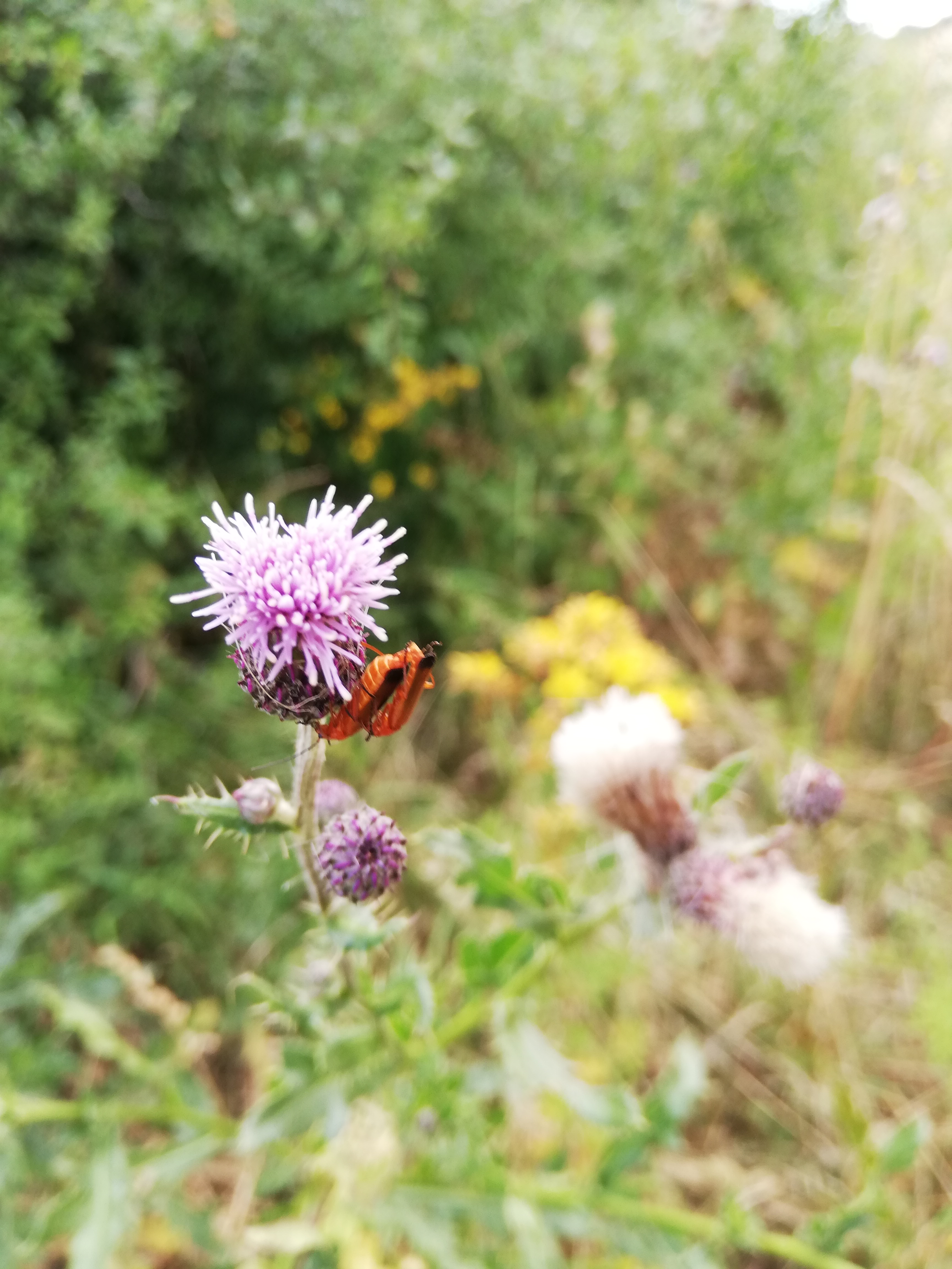 vier Exemplare mit Oxythyrea funesta (Poda, 1761) - Trauer-Rosenkäfer auf Wilder Möhre, Westlausitz, Nordhang Hutberg, Kamenz, 19.07.2020