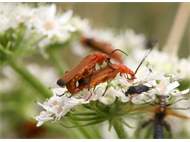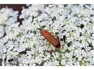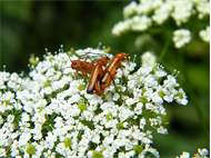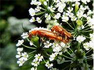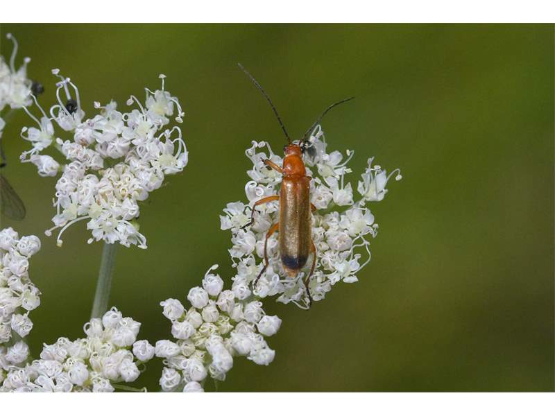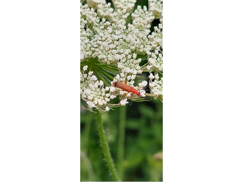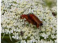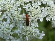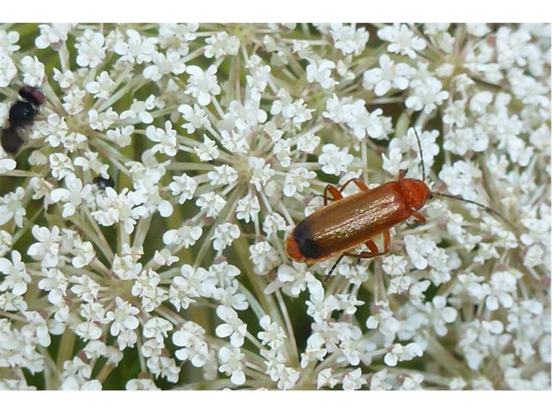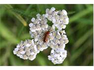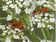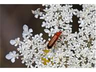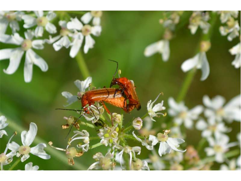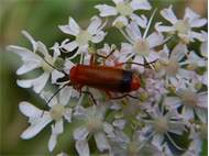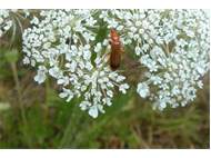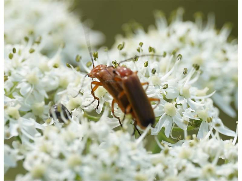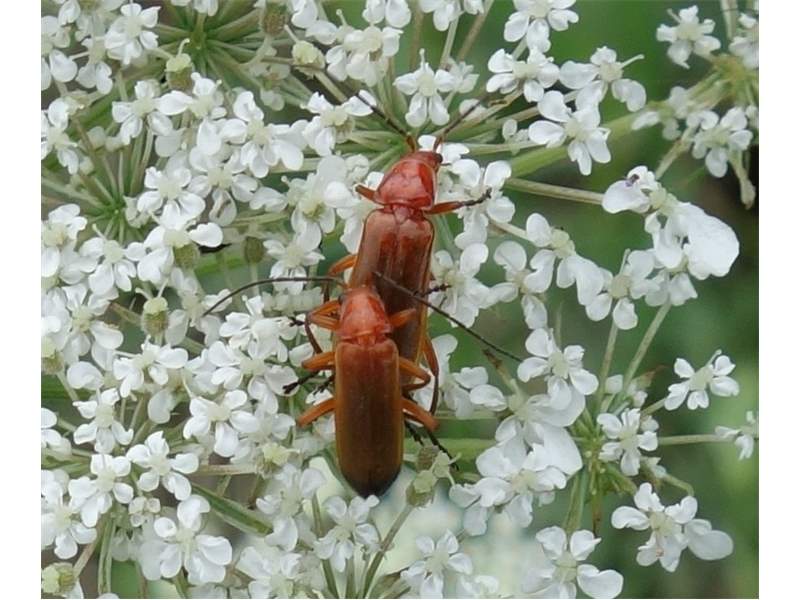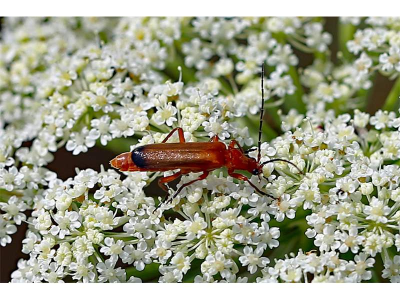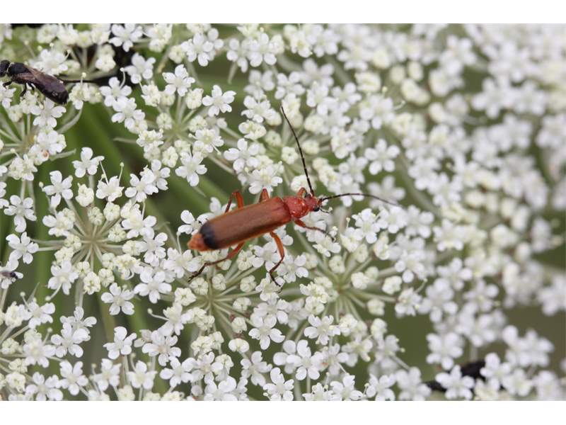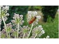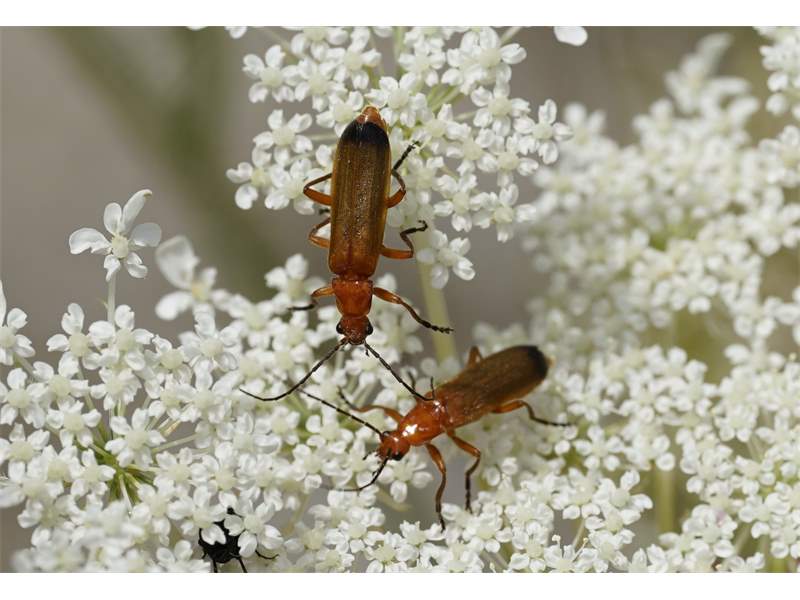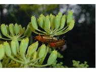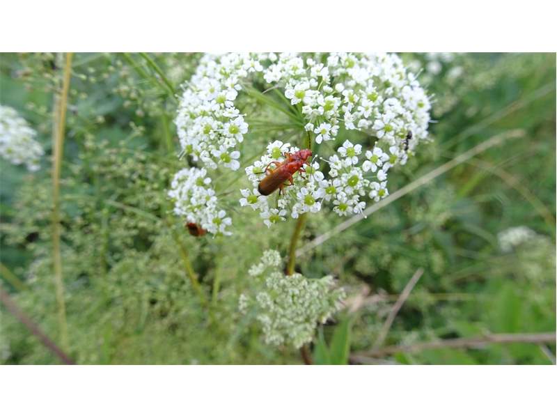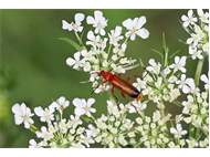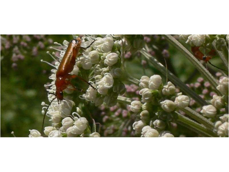 vier Exemplare mit Oxythyrea funesta (Poda, 1761) - Trauer-Rosenkäfer auf Wilder Möhre, Westlausitz, Nordhang Hutberg, Kamenz, 19.07.2020 (© Gert Schulze)( Bild vergrößern)