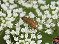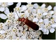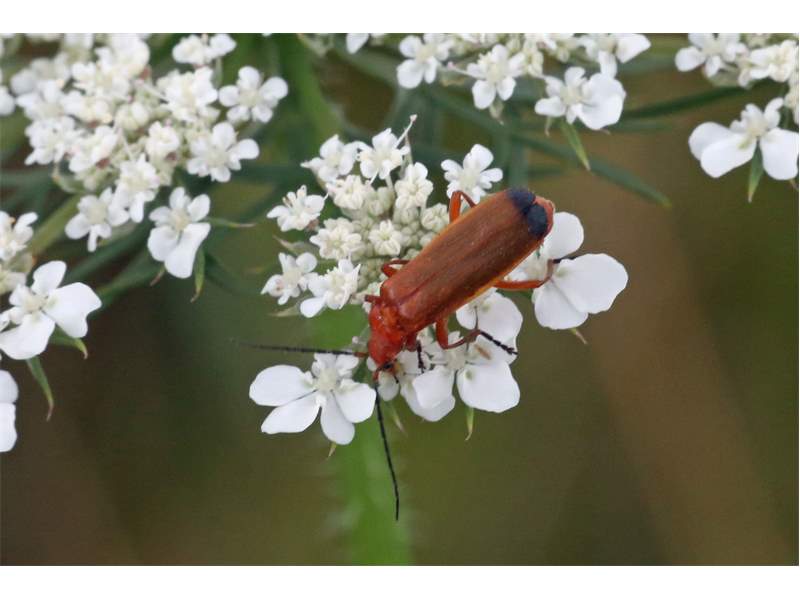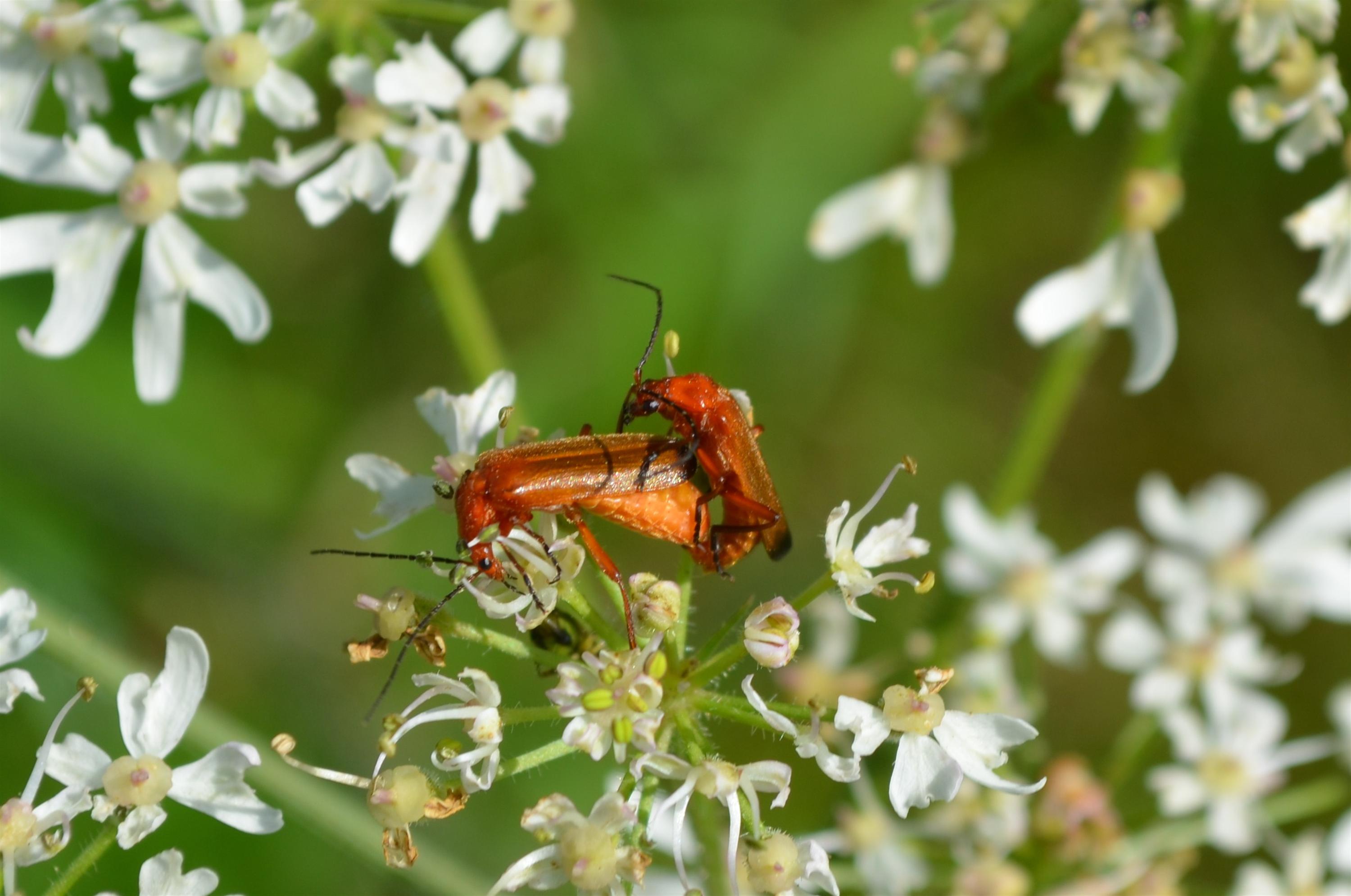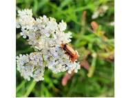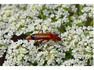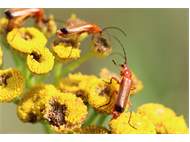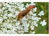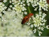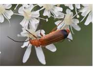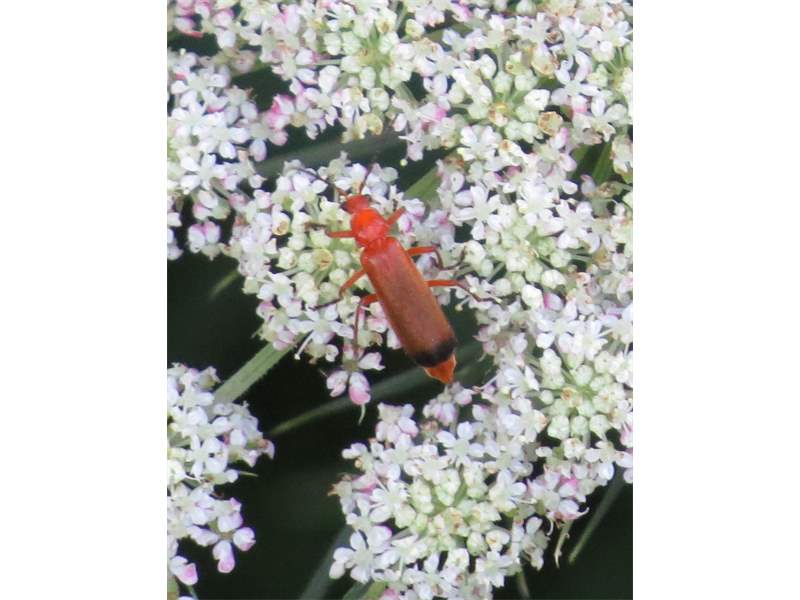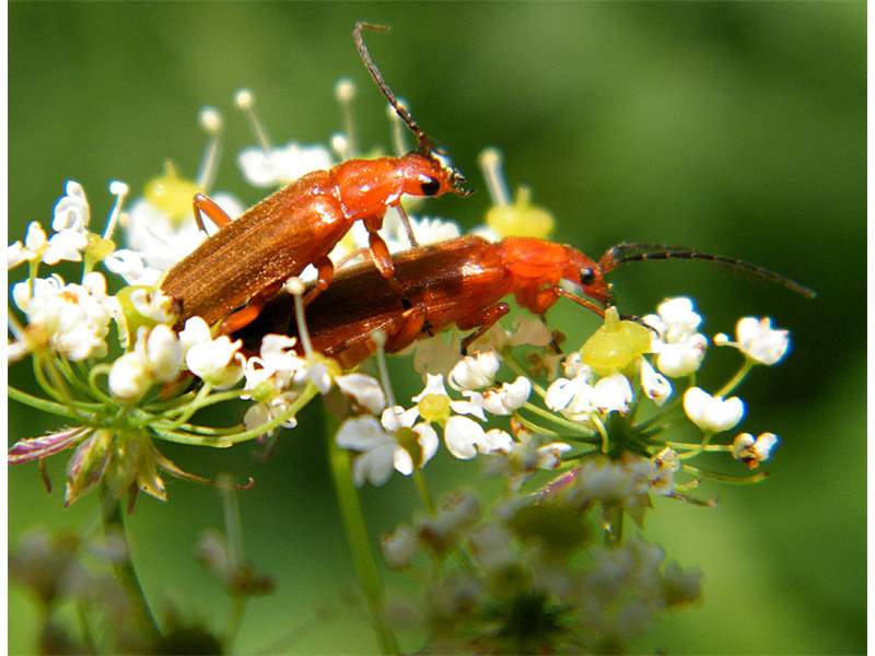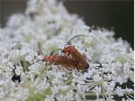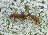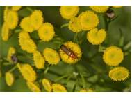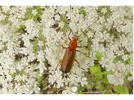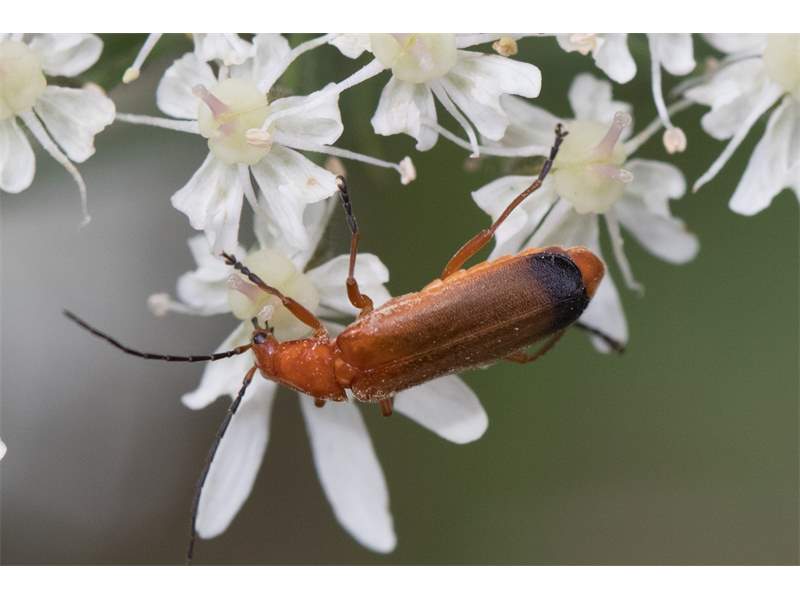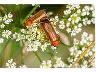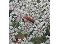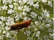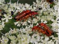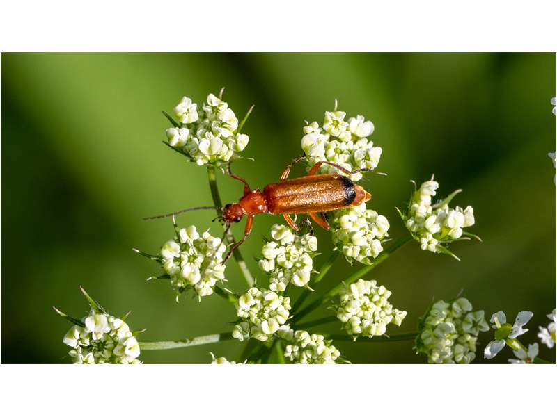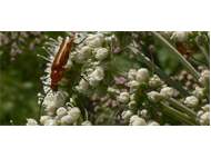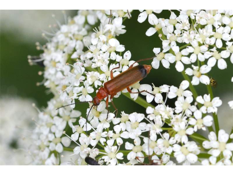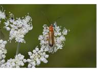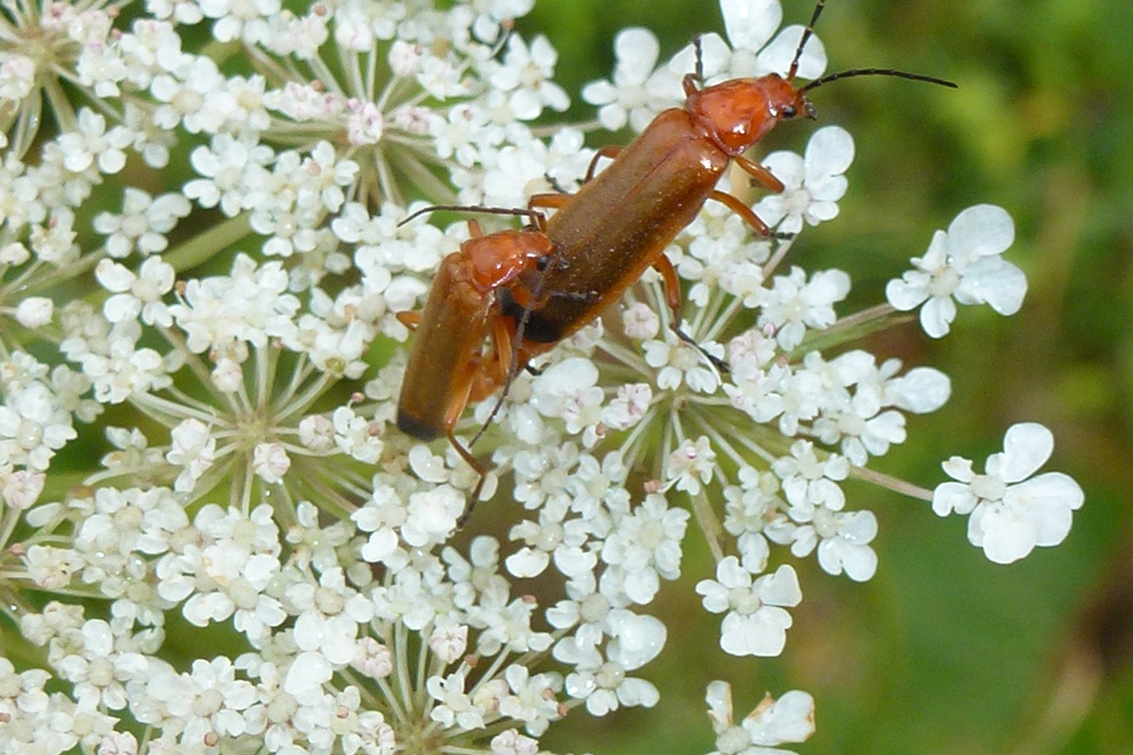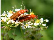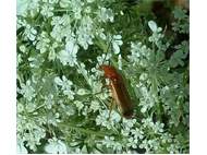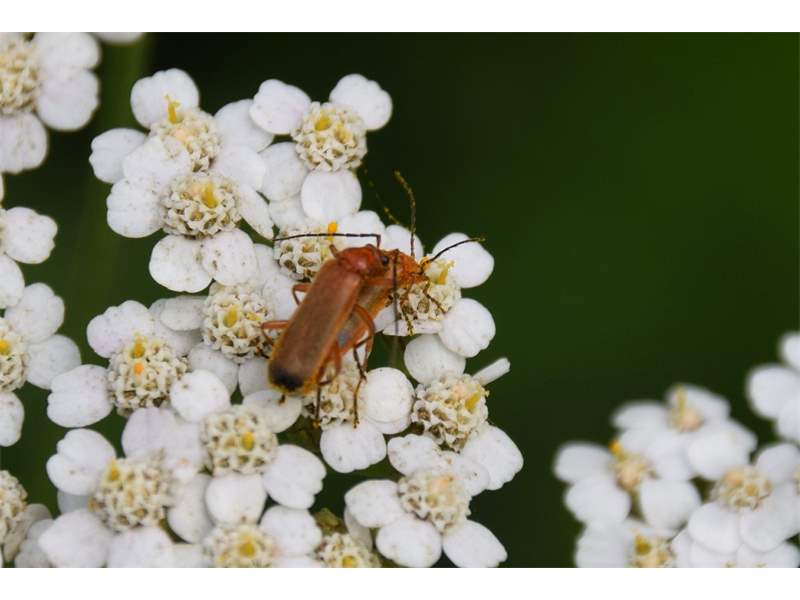 vier Exemplare mit Oxythyrea funesta (Poda, 1761) - Trauer-Rosenkäfer auf Wilder Möhre, Westlausitz, Nordhang Hutberg, Kamenz, 19.07.2020 (© Gert Schulze)( Bild vergrößern)