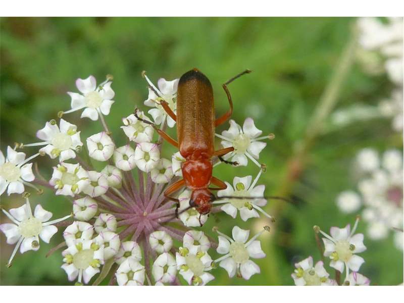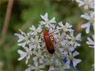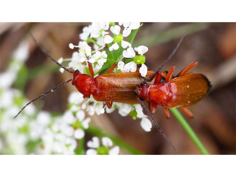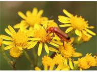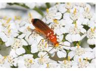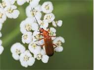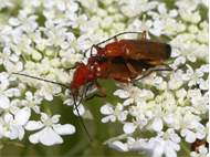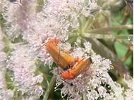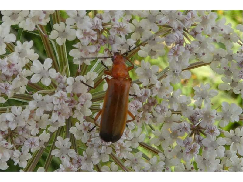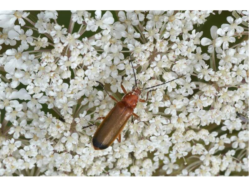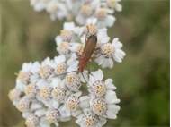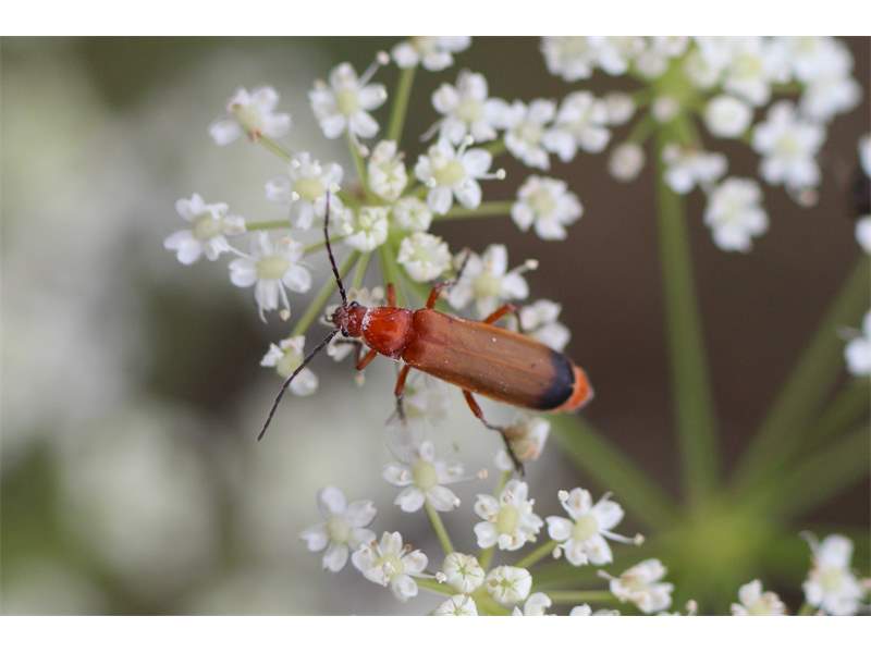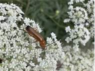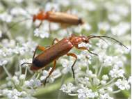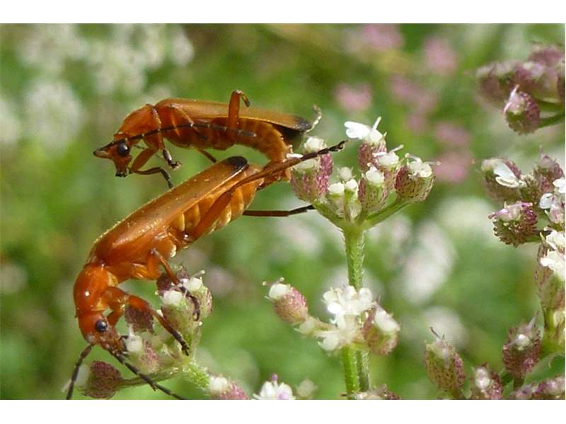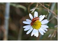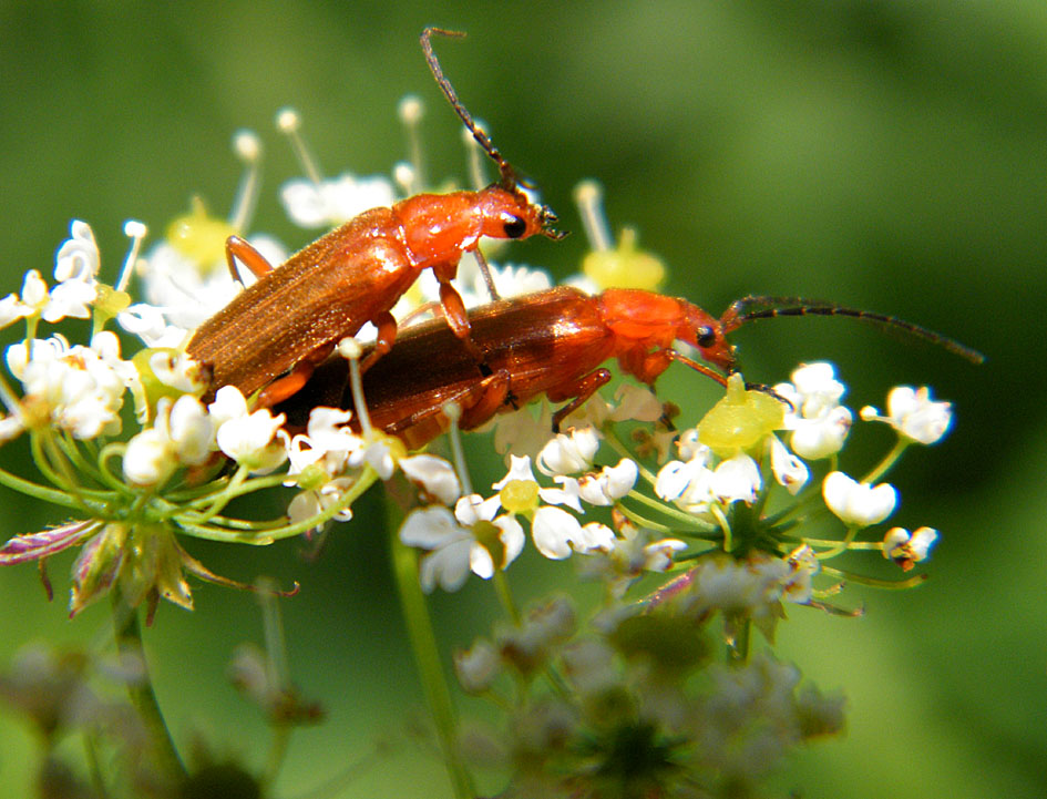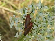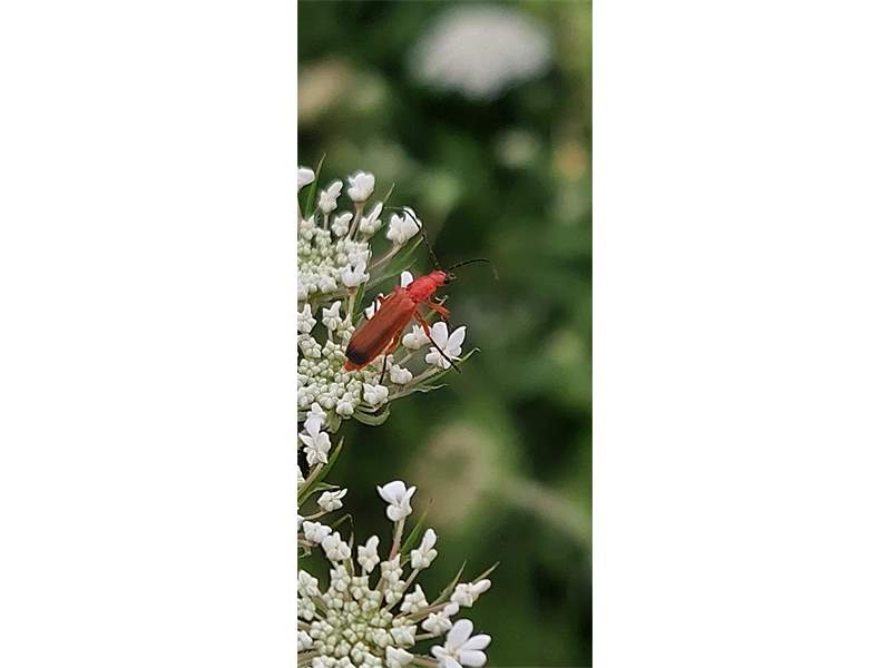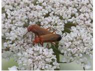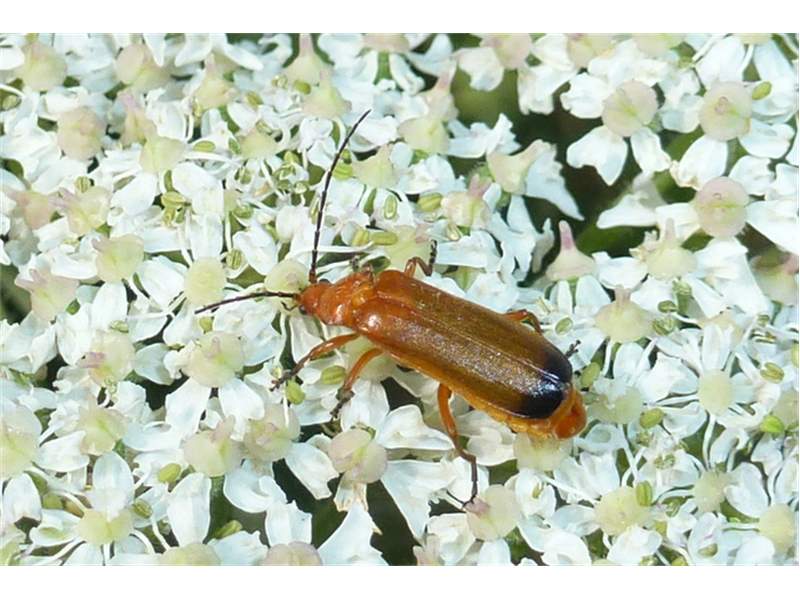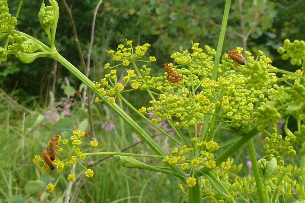 vier Exemplare mit Oxythyrea funesta (Poda, 1761) - Trauer-Rosenkäfer auf Wilder Möhre, Westlausitz, Nordhang Hutberg, Kamenz, 19.07.2020 (© Gert Schulze)( Bild vergrößern)